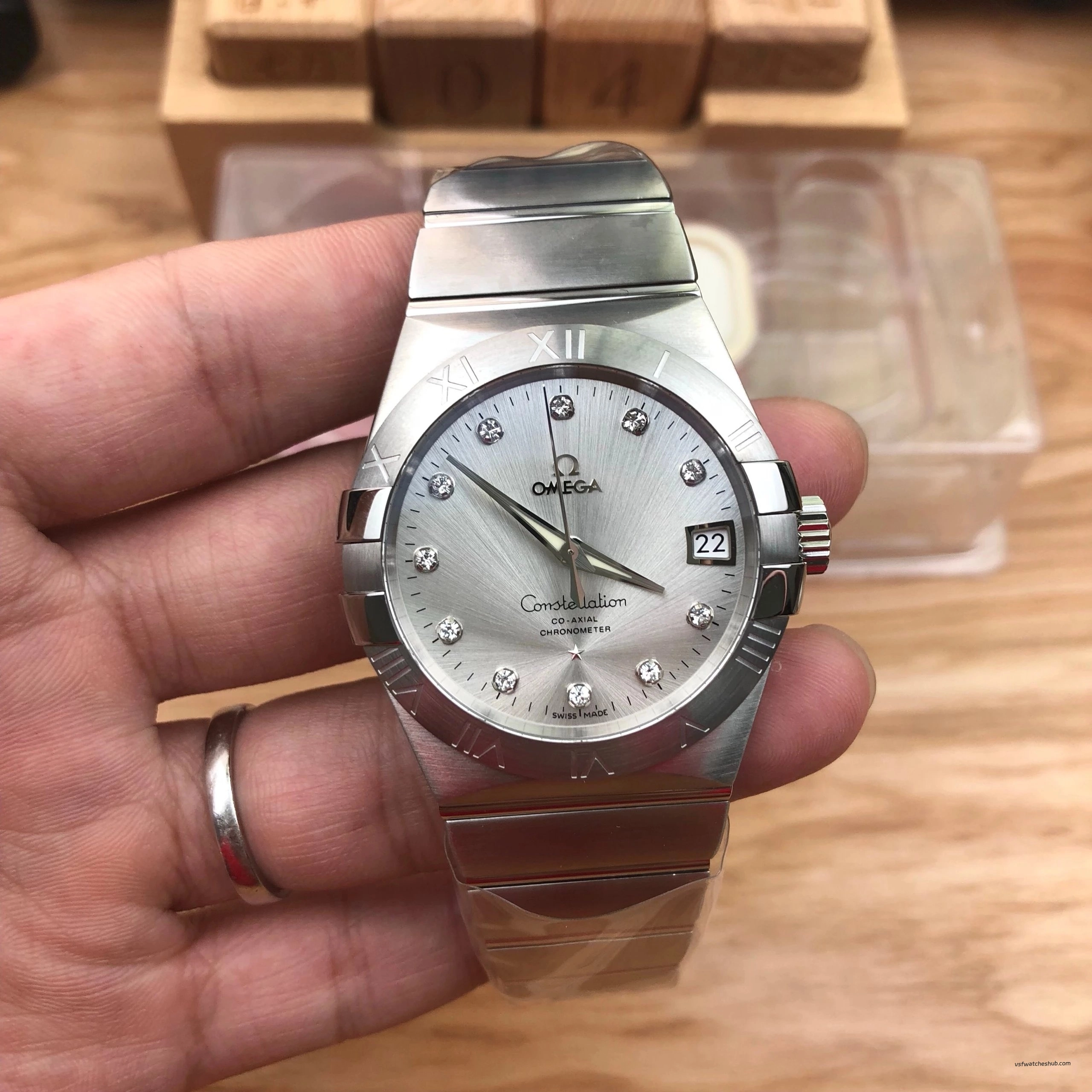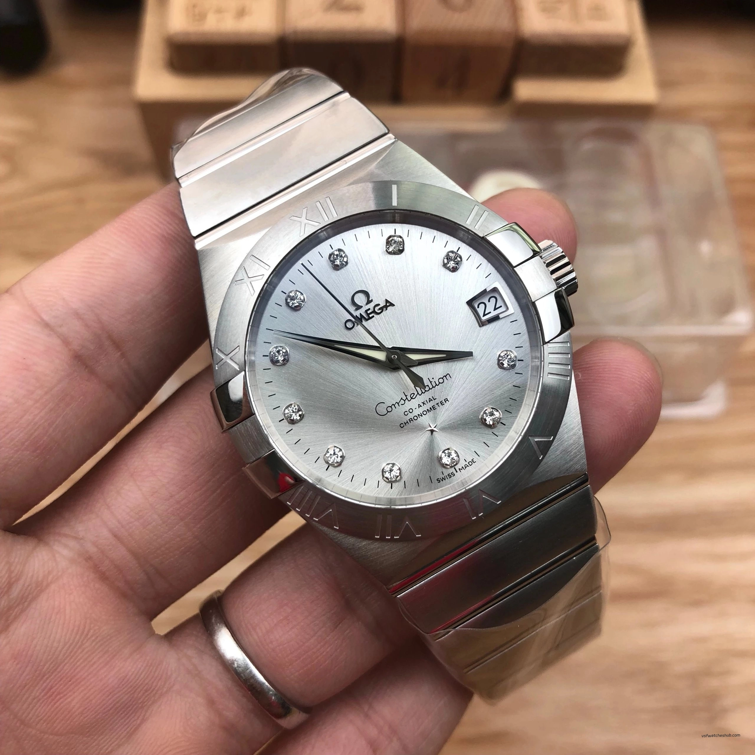 VSF Omega Constellation 38mm Silver Diamond Dial Steel Bracelet Super Clone