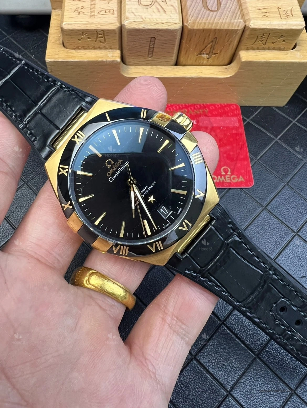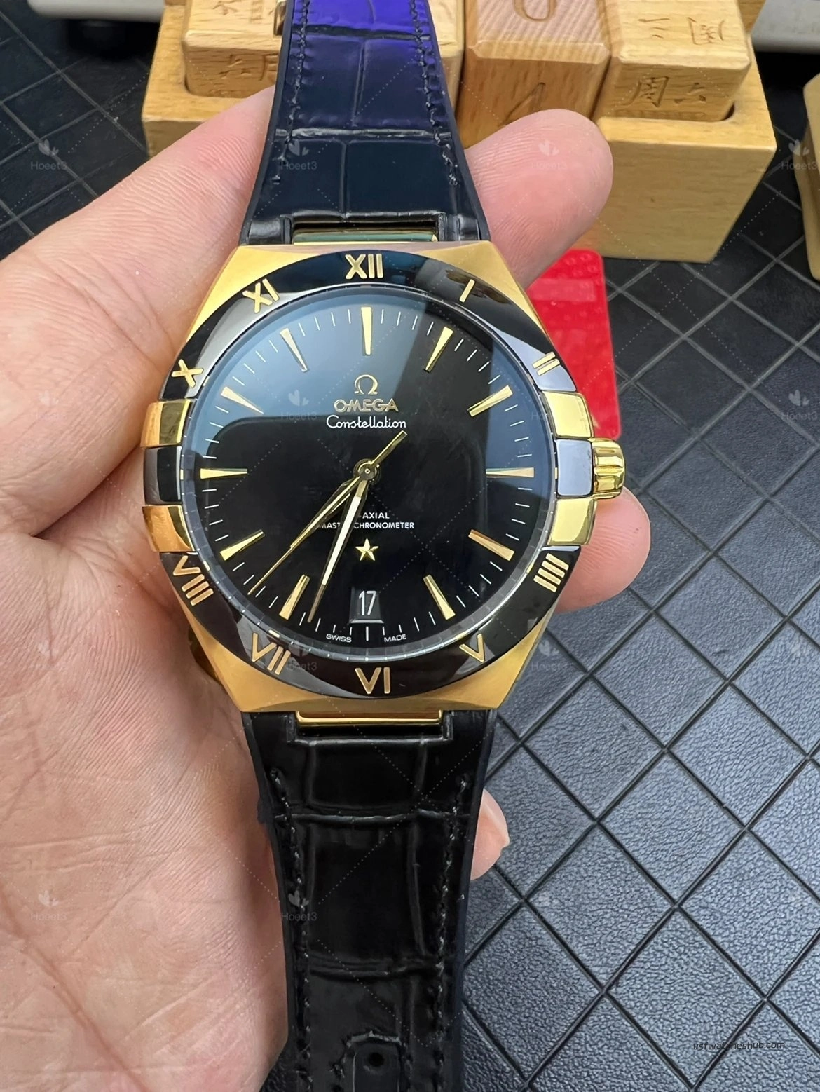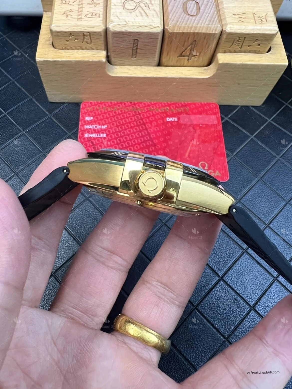 VSF Omega Constellation 41mm Sedna Gold Black Dial Leather Strap Super Clone
