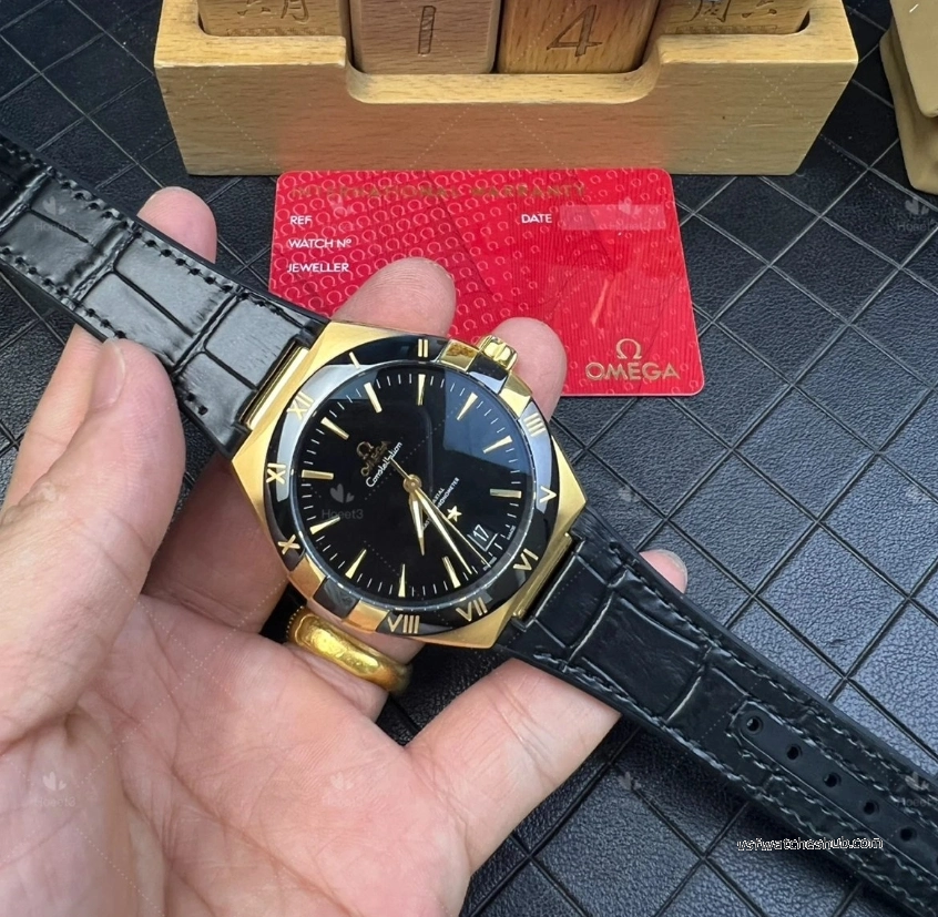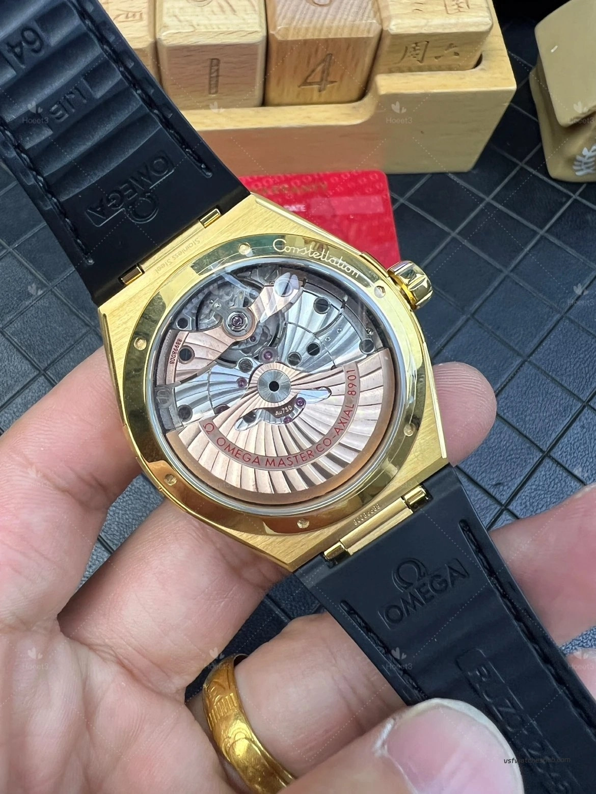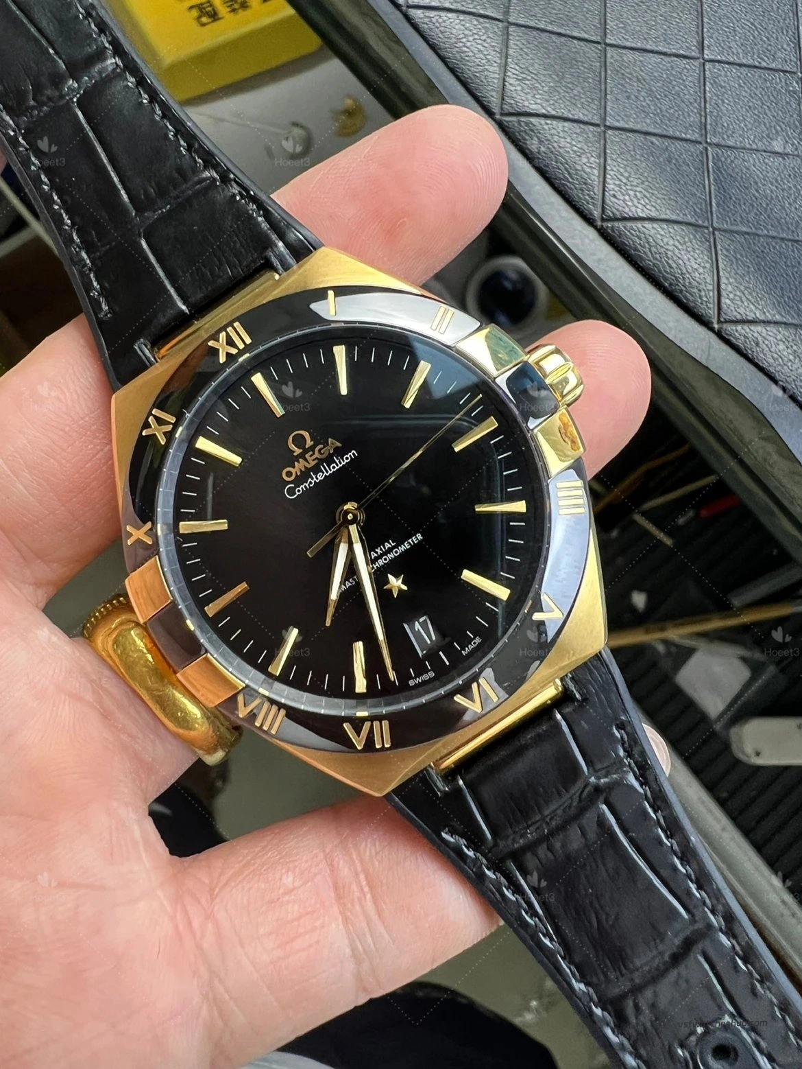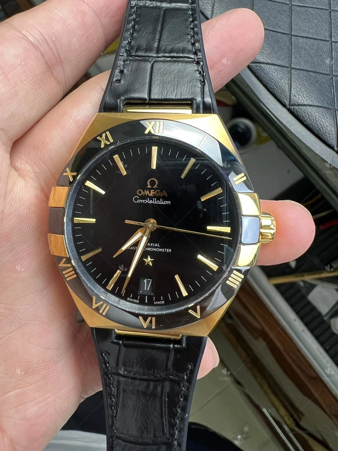 VSF Omega Constellation 41mm Sedna Gold Black Dial Leather Strap Super Clone