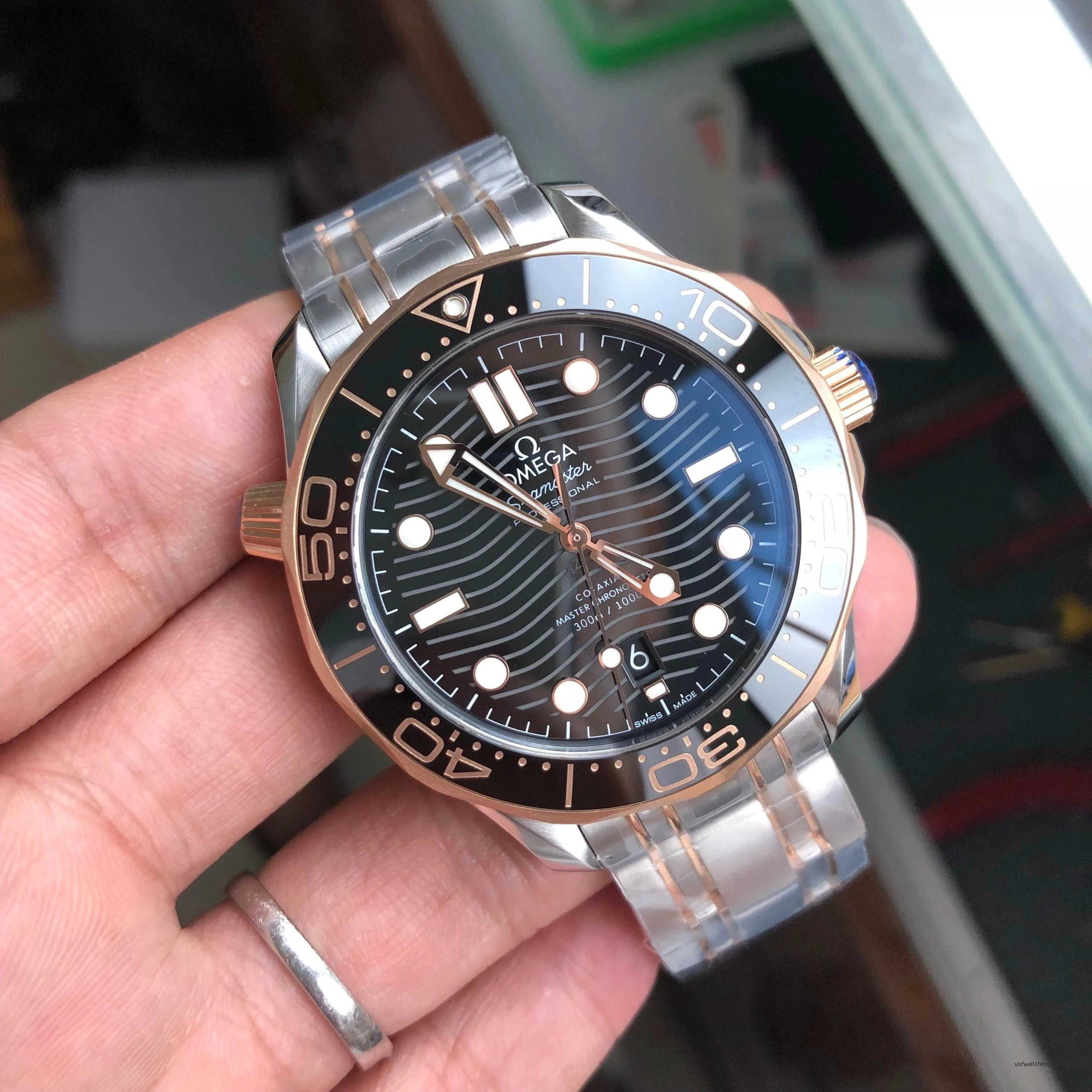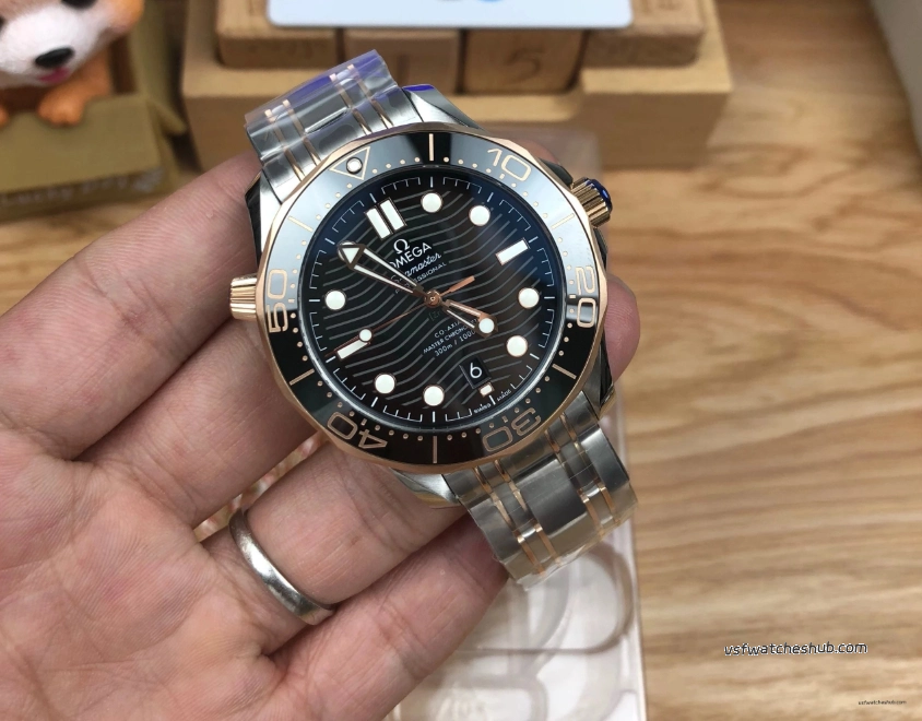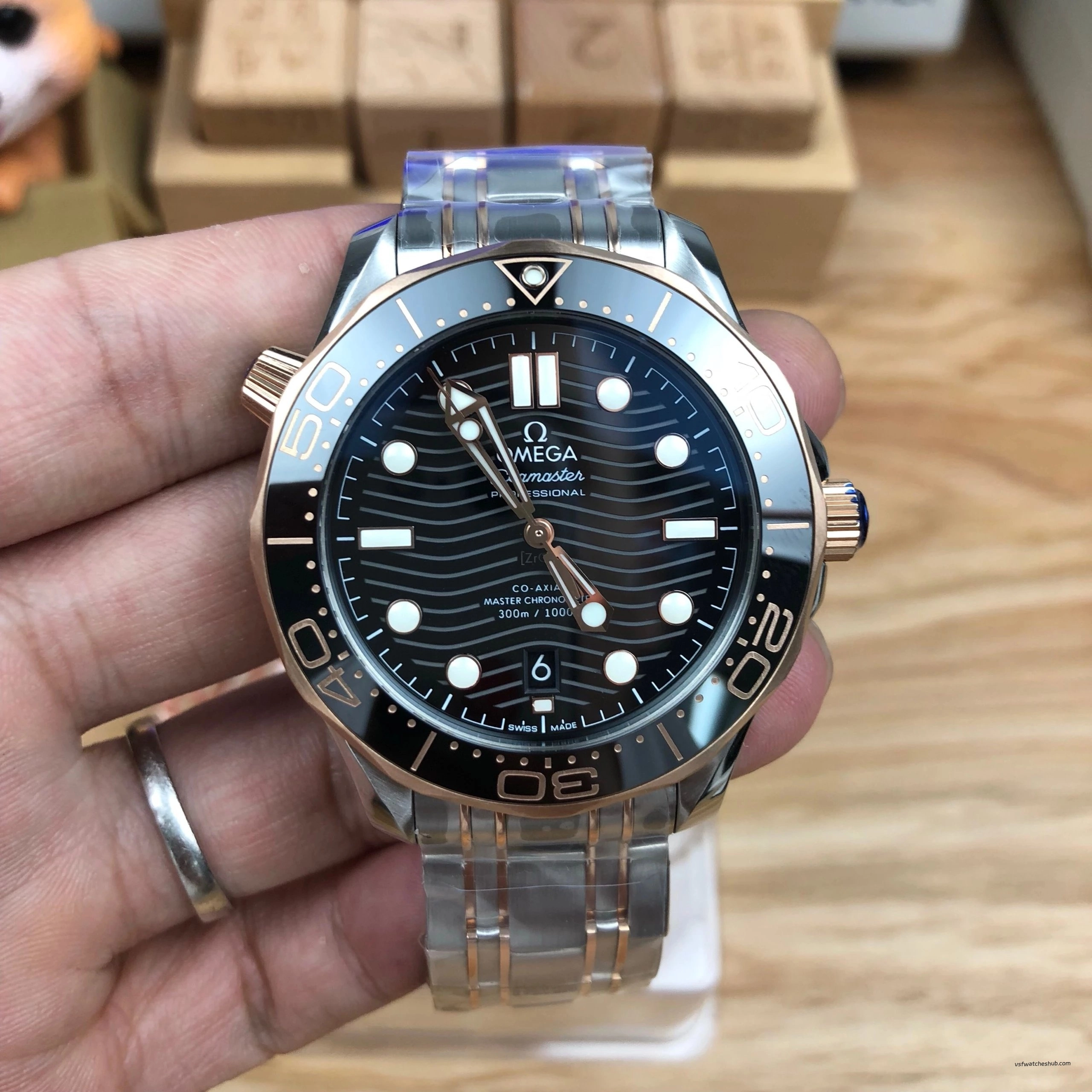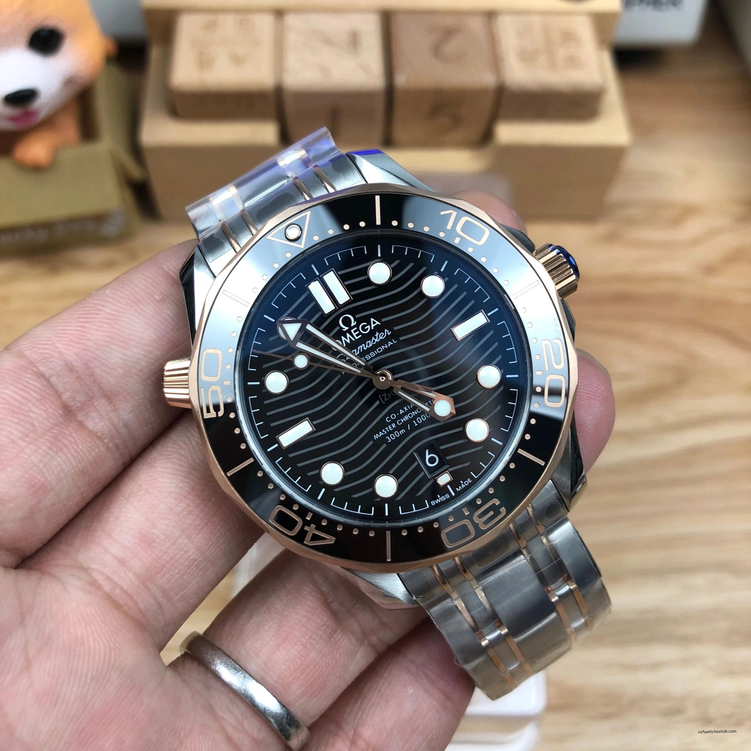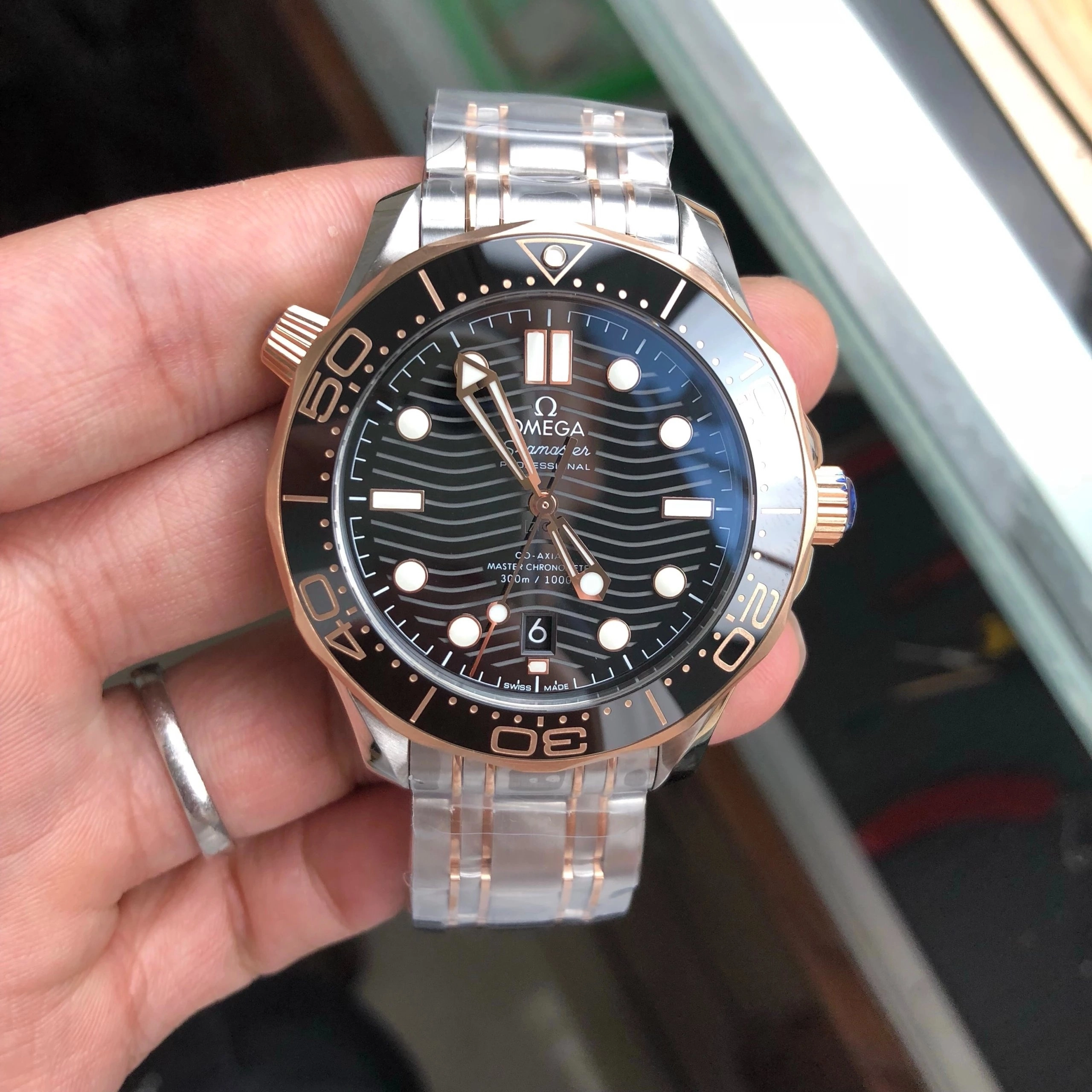 VS Factory Omega Seamaster Diver 300M Ref.210.20.42.20.01.001 Black Dial Rose Gold Steel Bracelet Super Clone