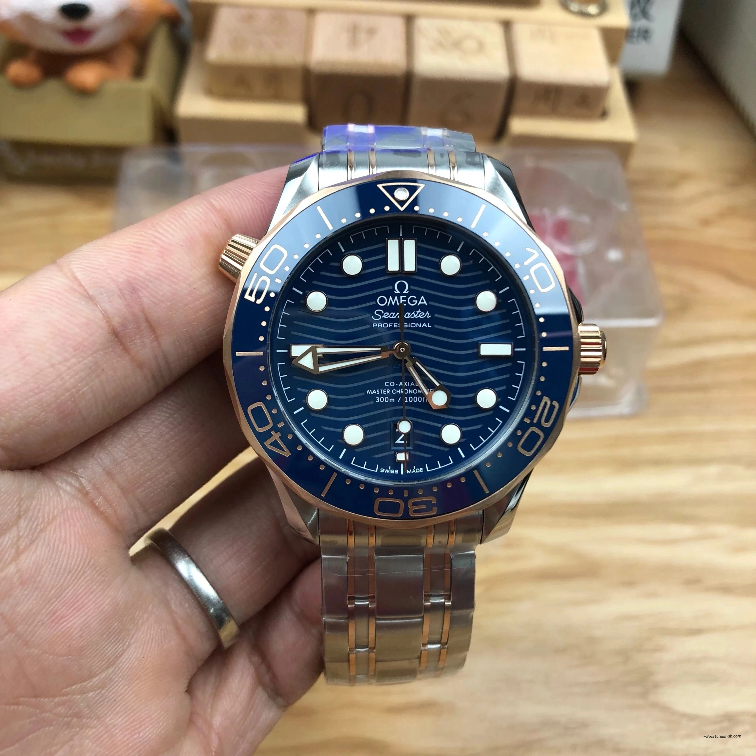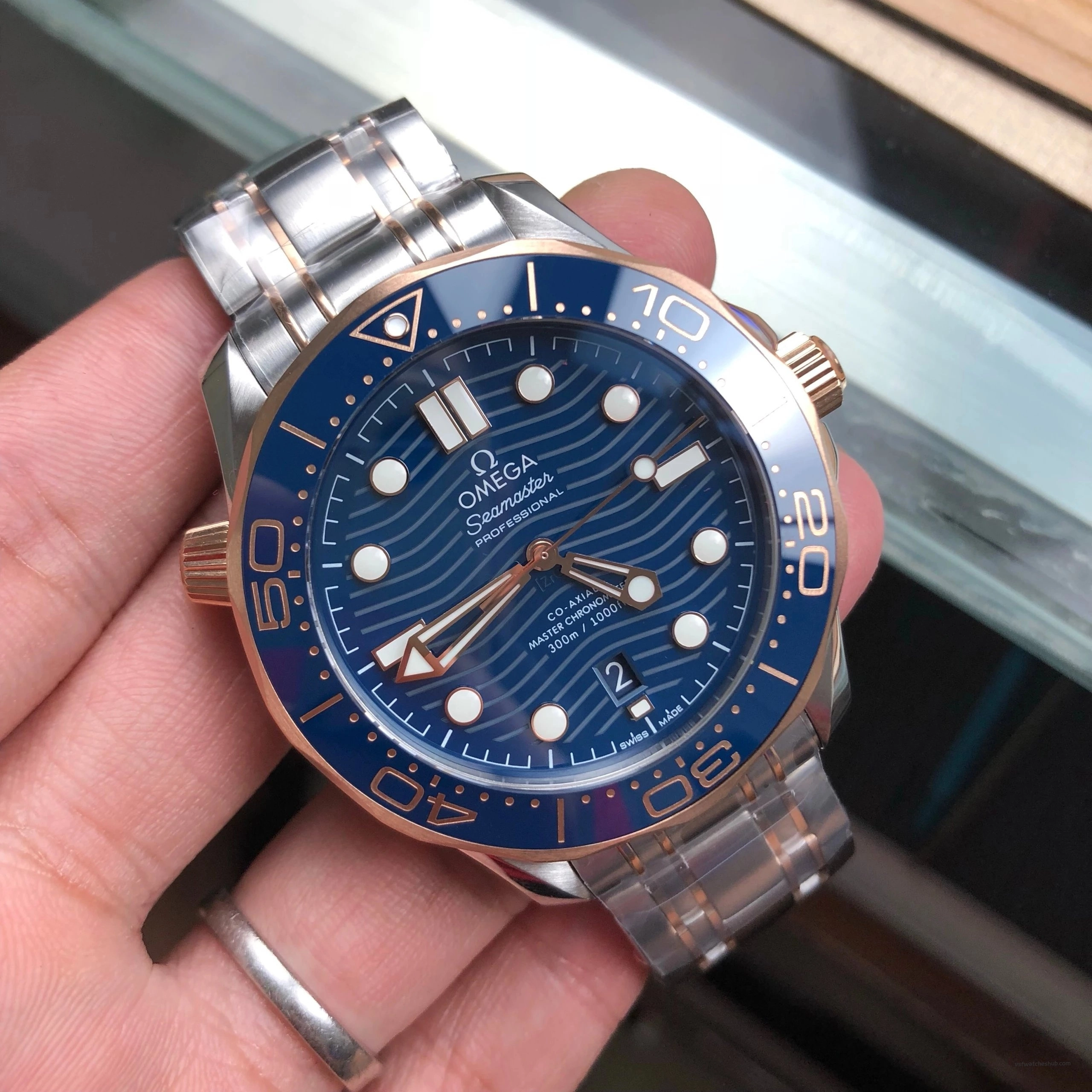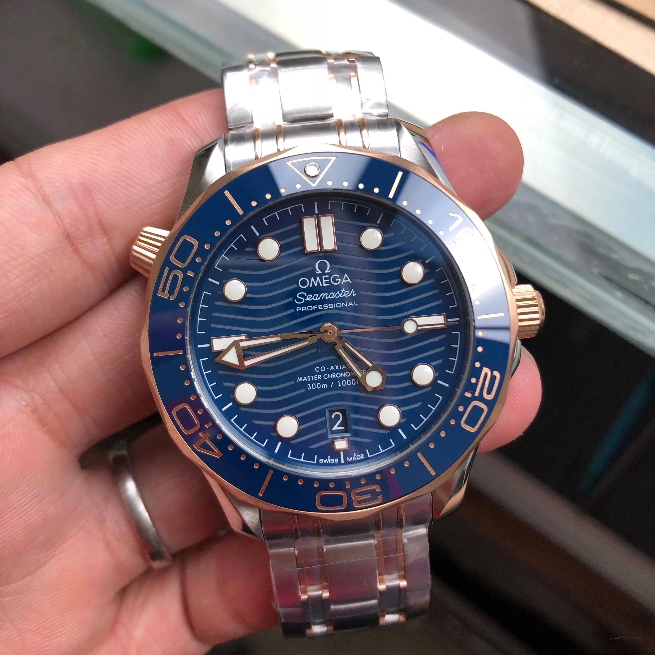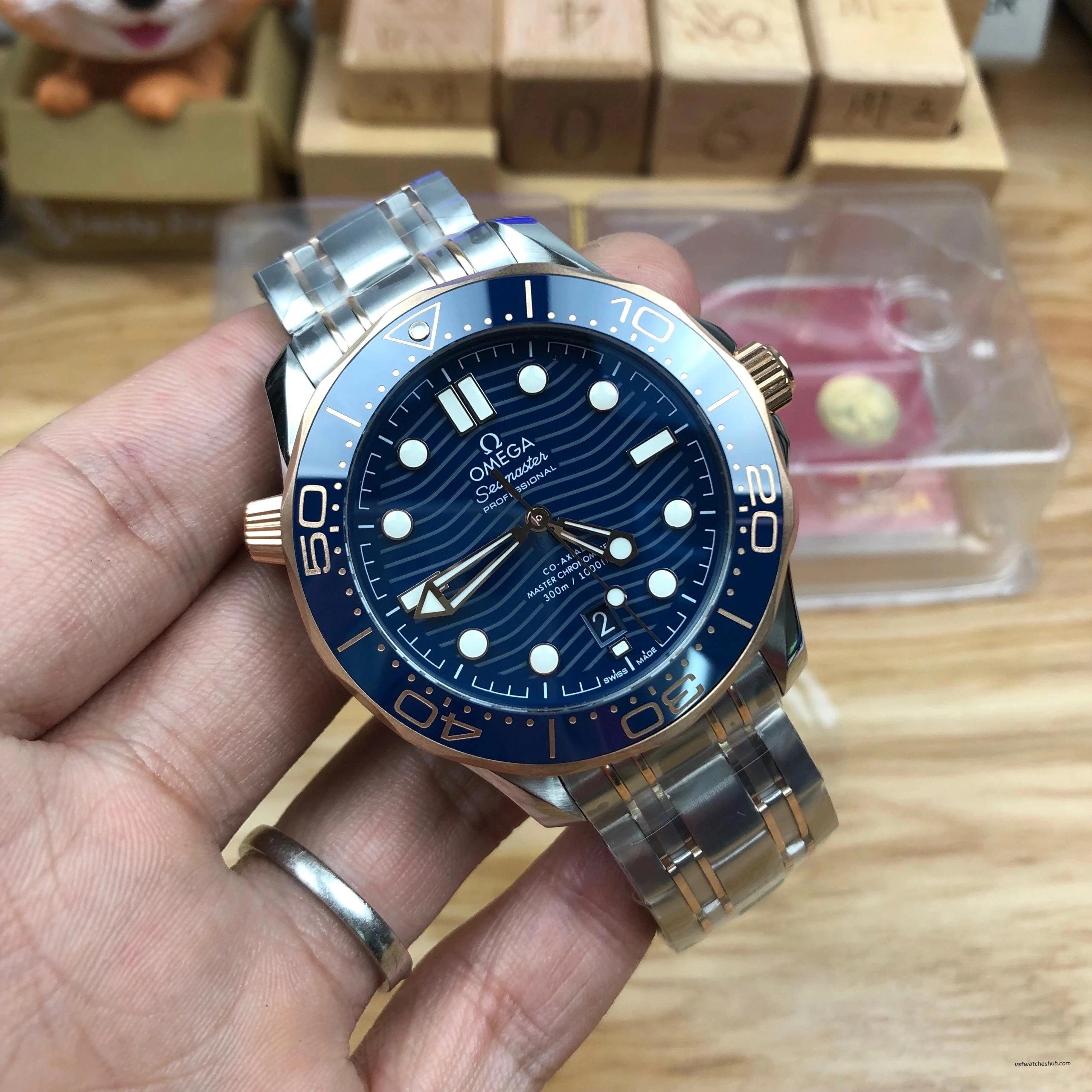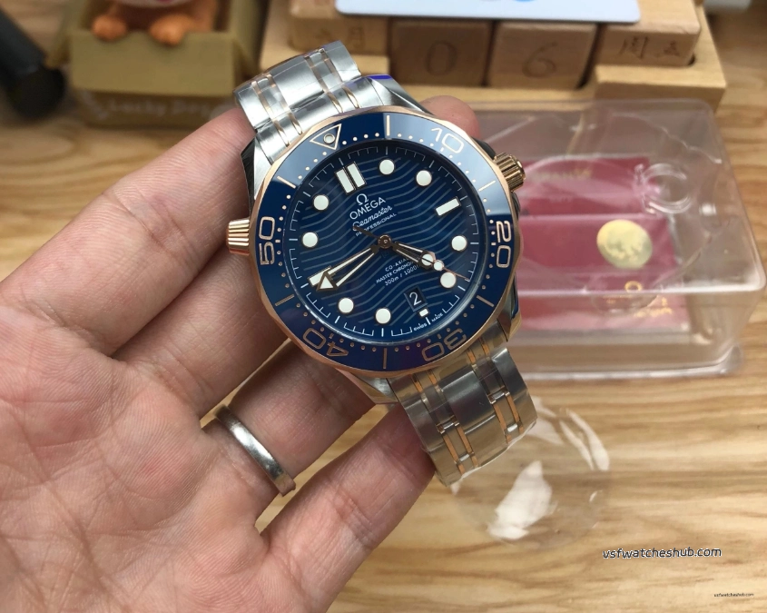 VS Factory Omega Seamaster Diver 300M Ref 210.20.42.20.03.002 Blue Dial Two-Tone Rose Gold Bracelet Super Clone
