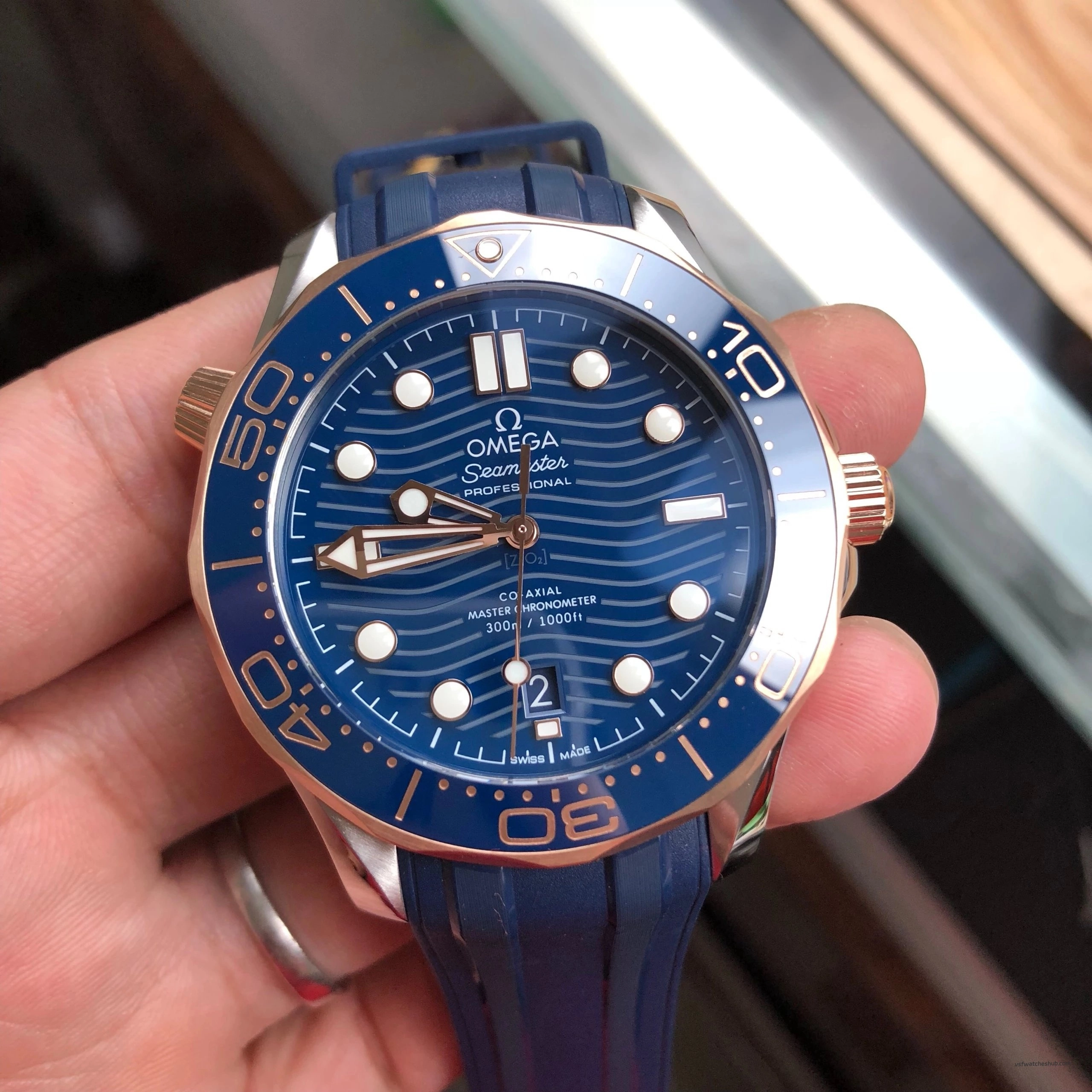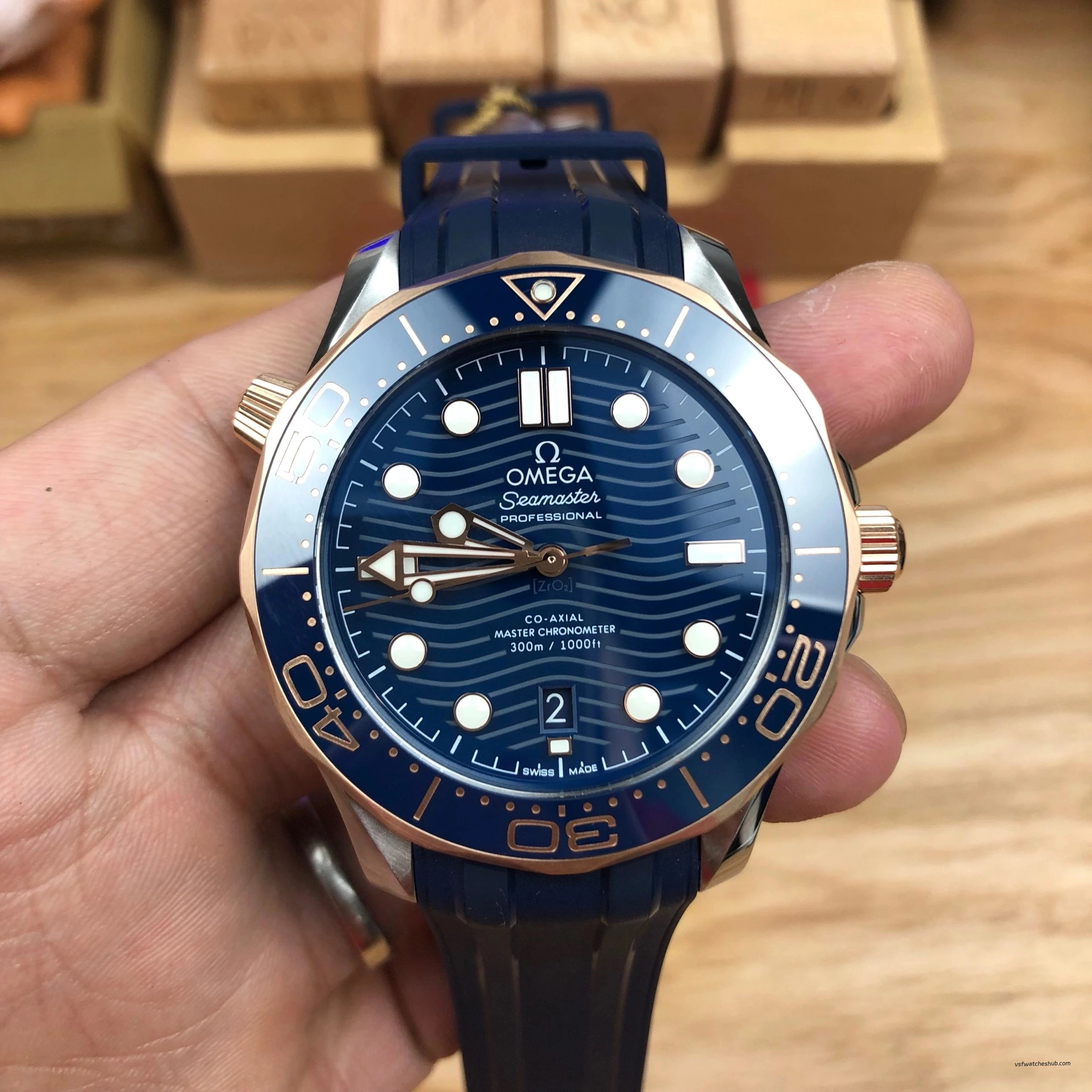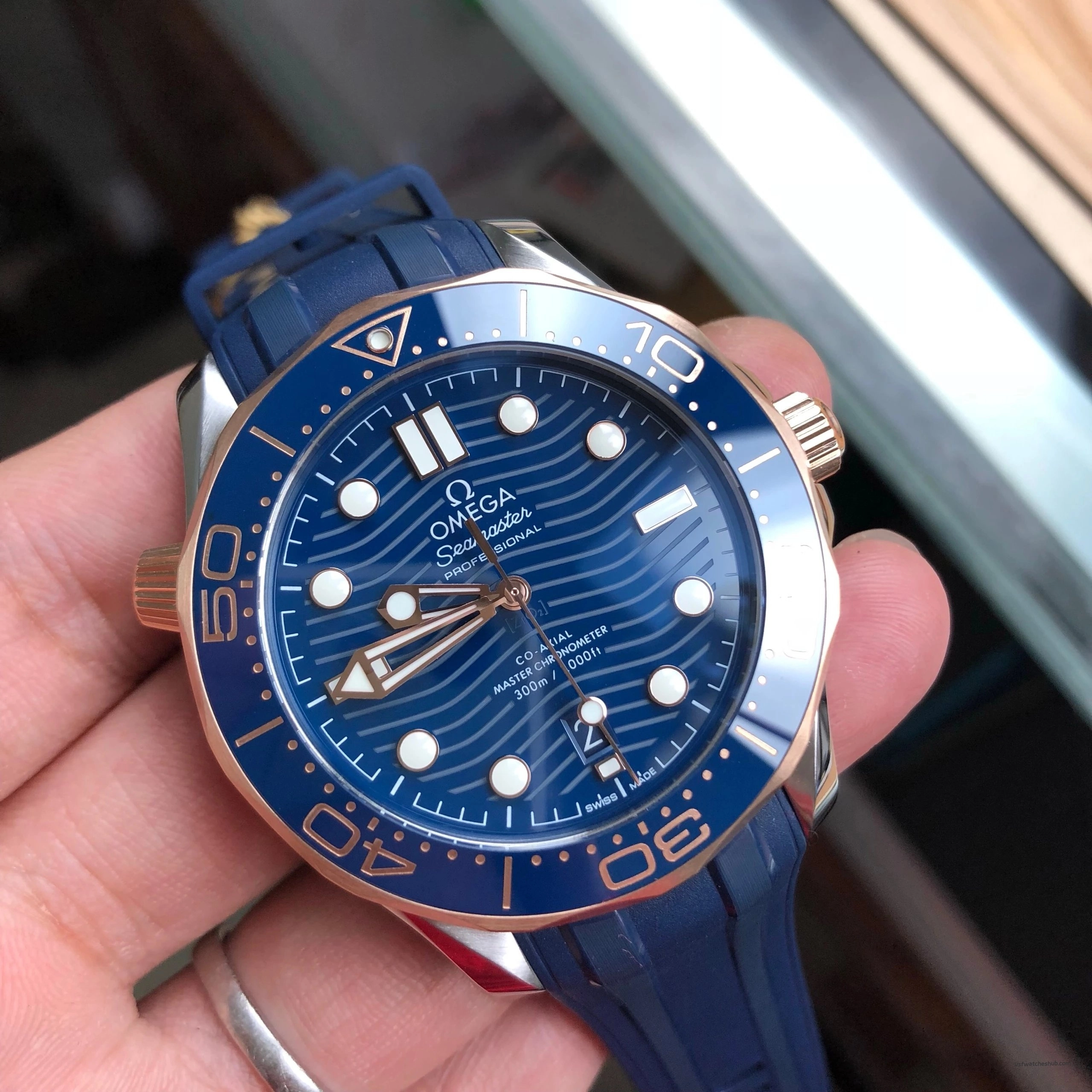VSF Omega Seamaster Diver 300M Ref 210.22.42.20.03.002 Blue Dial Rose Gold Rubber Strap Super Clone
