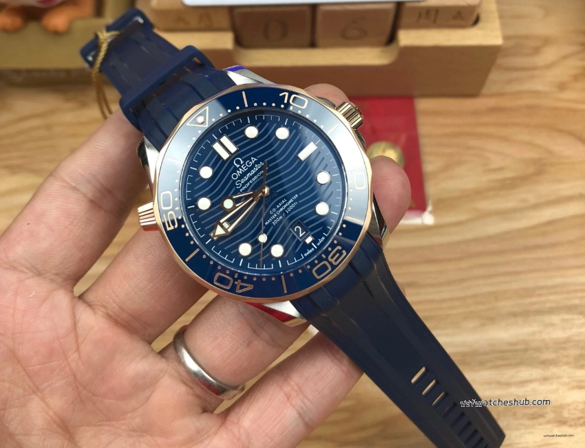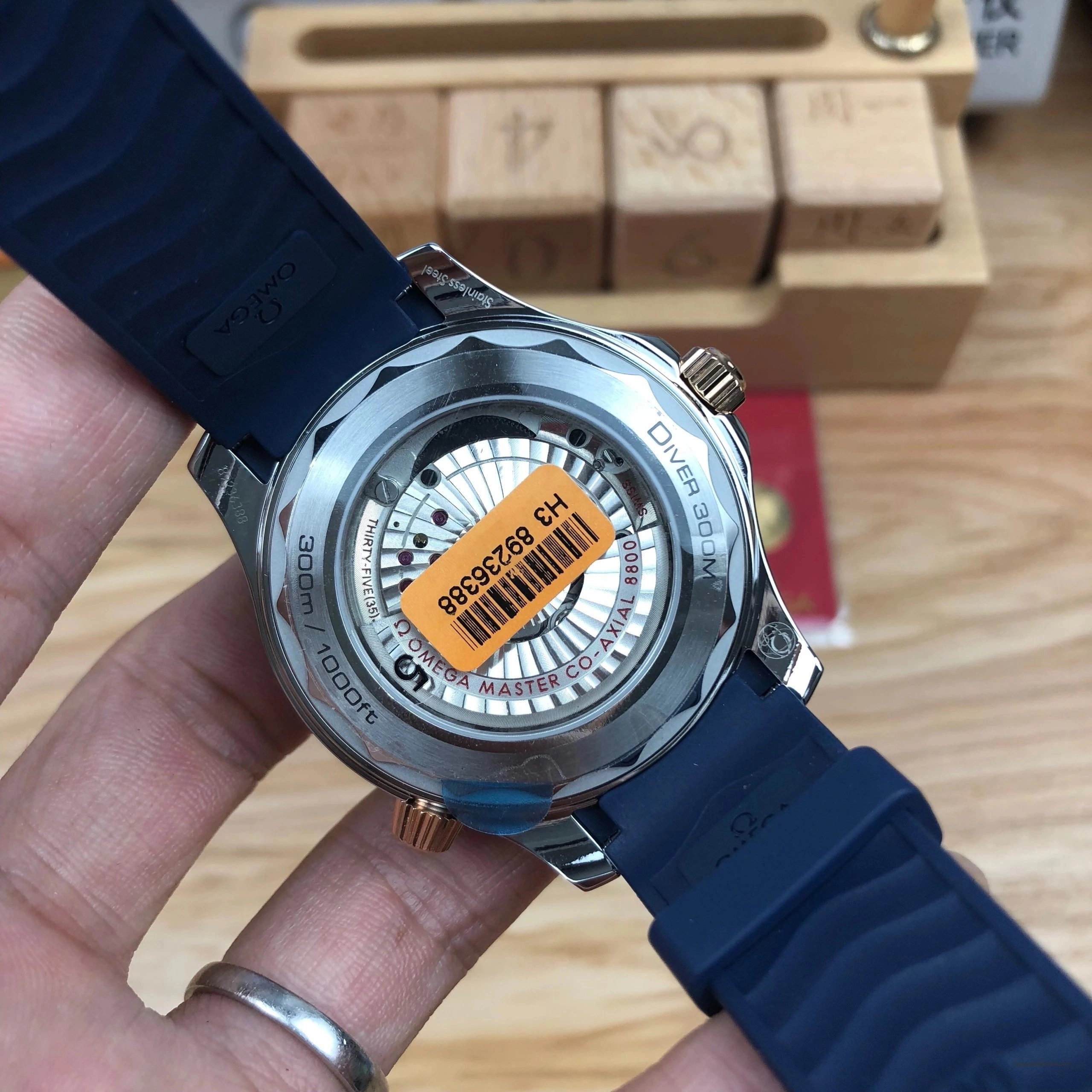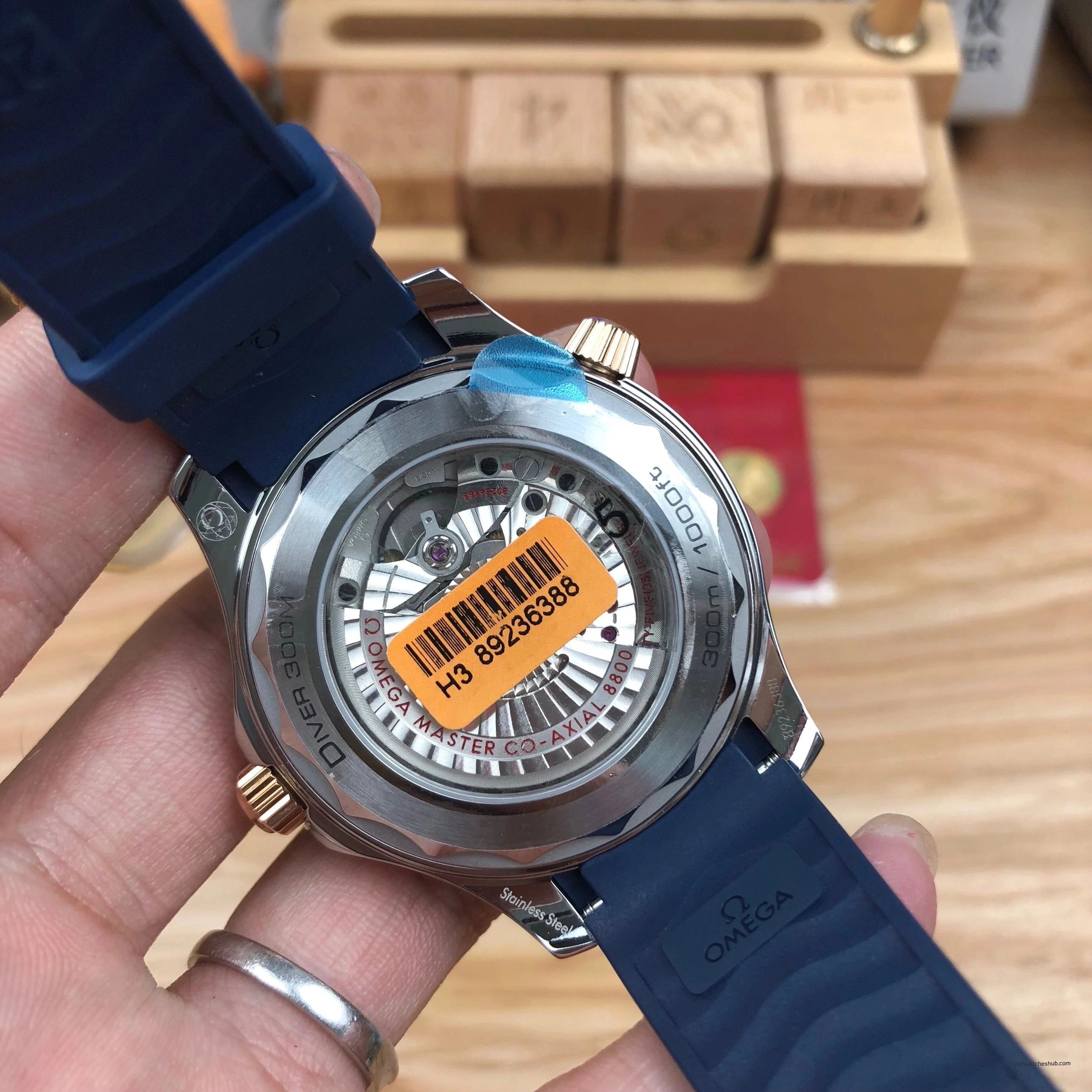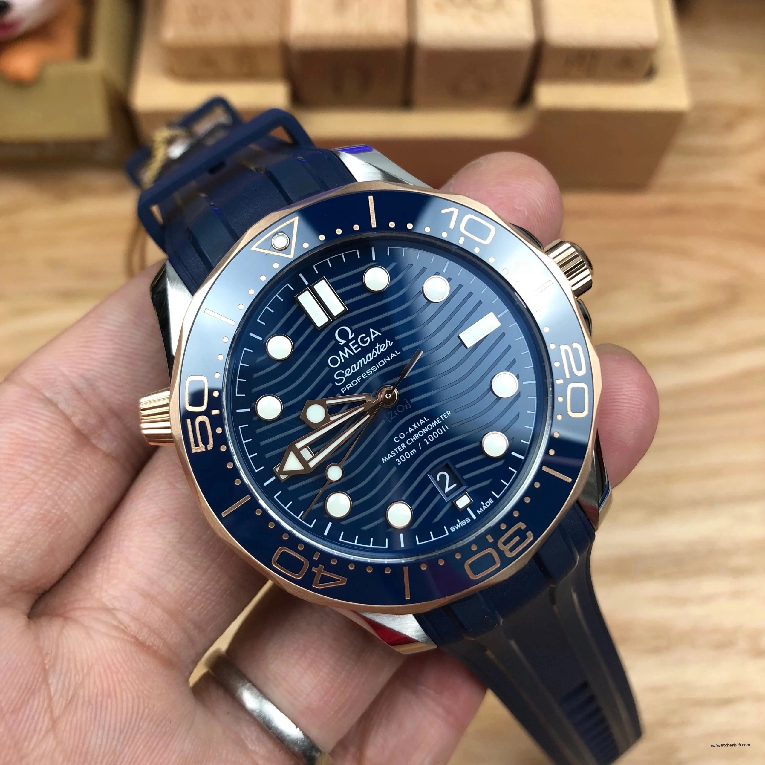 VSF Omega Seamaster Diver 300M Ref 210.22.42.20.03.002 Blue Dial Rose Gold Rubber Strap Super Clone
