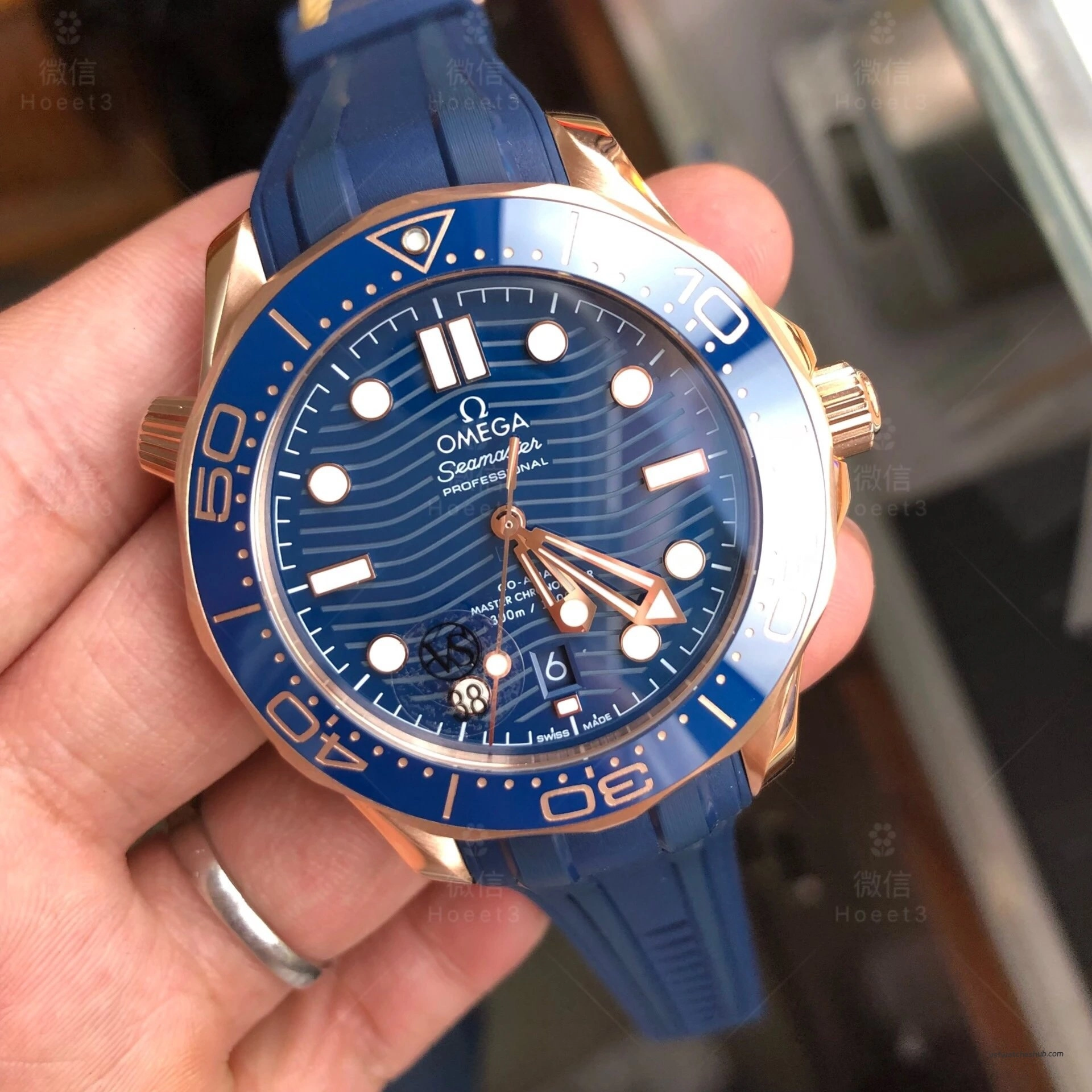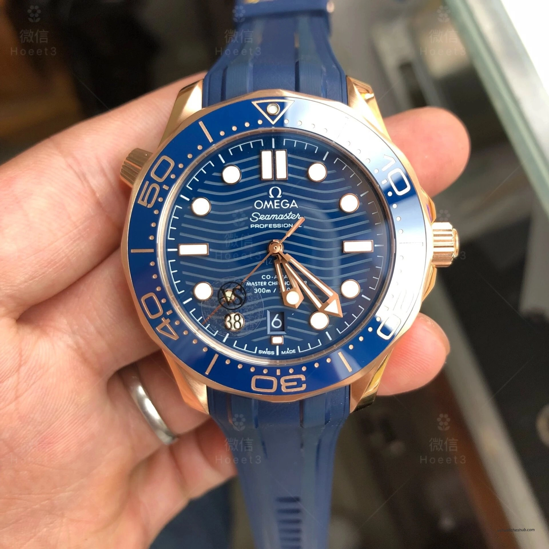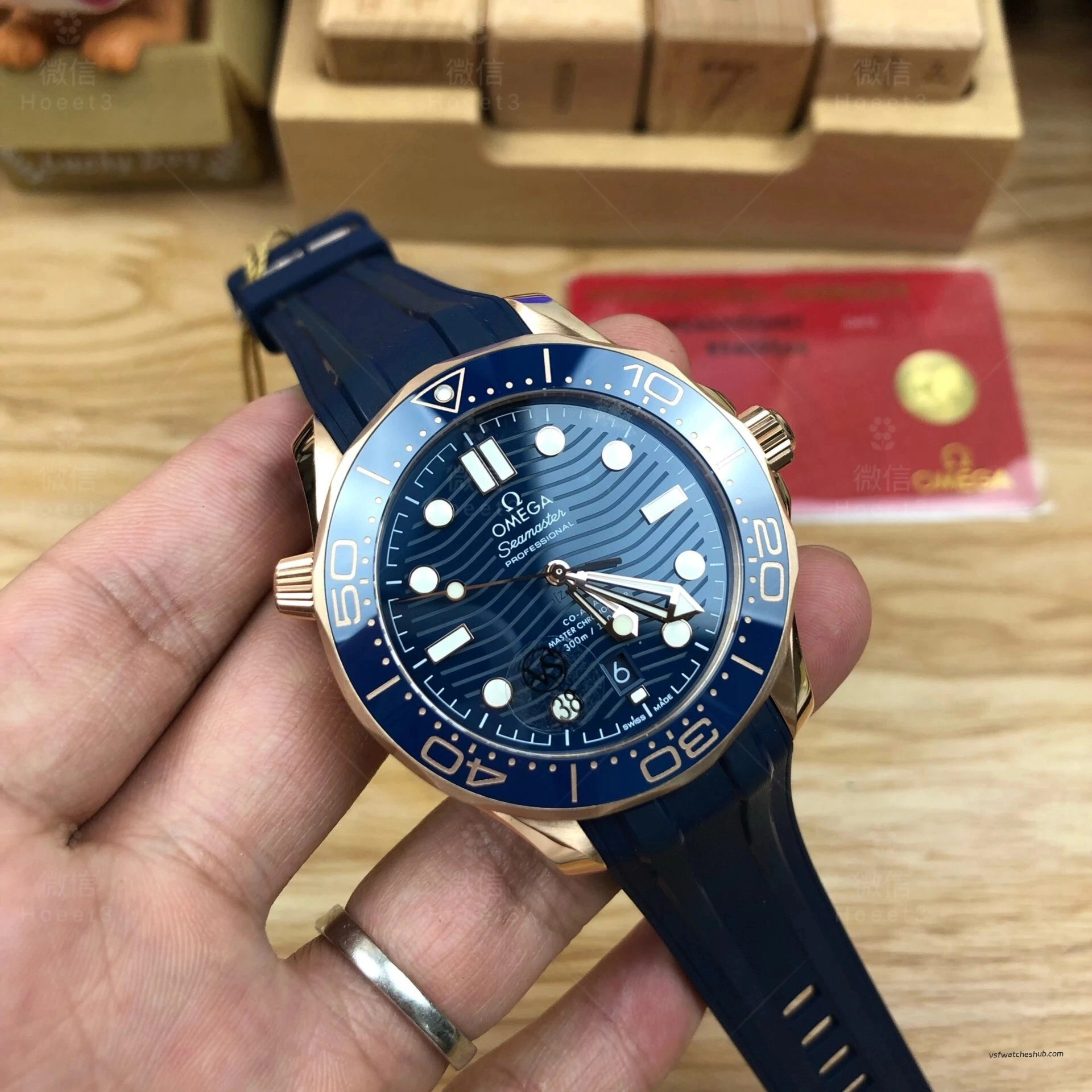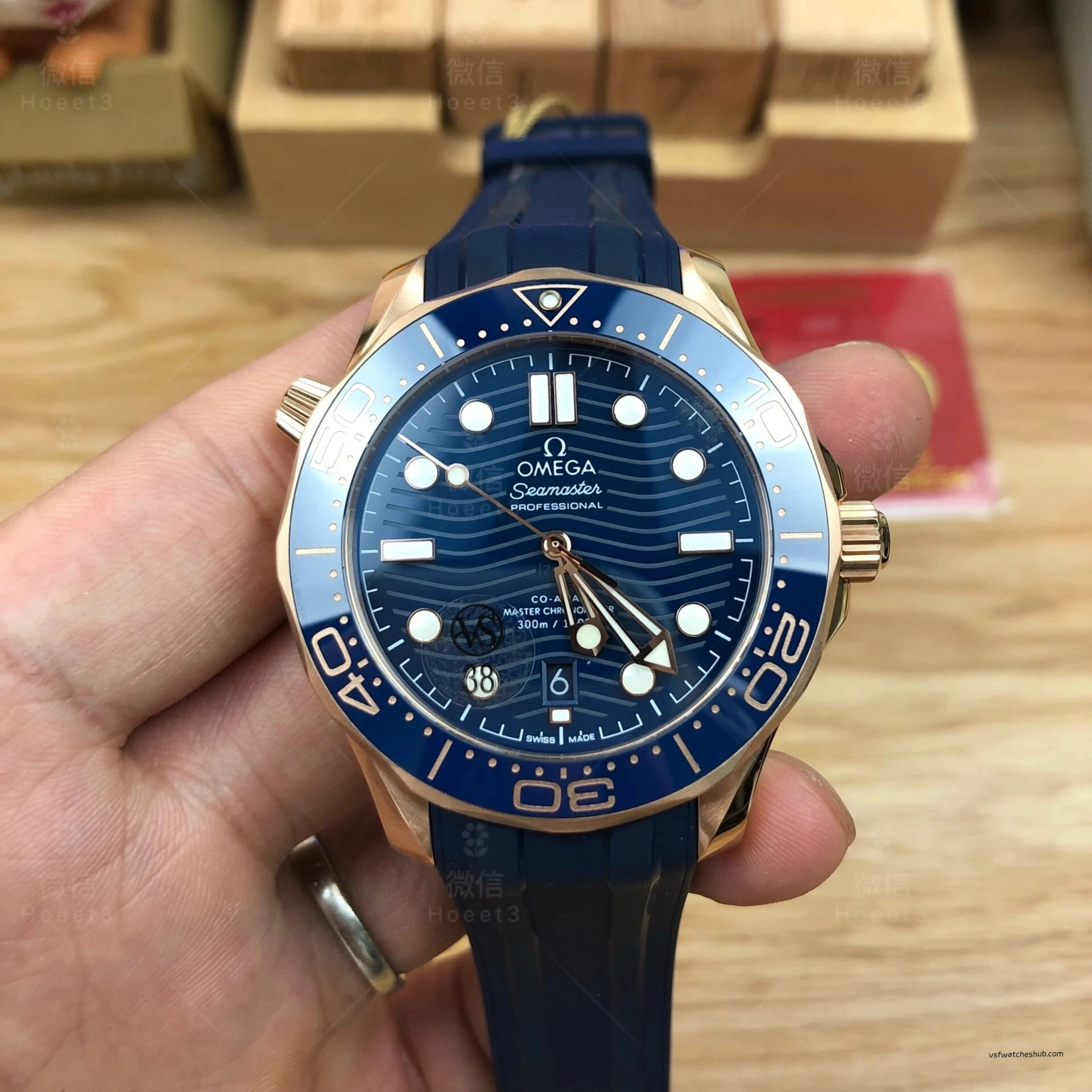VSF Omega Seamaster Diver 300M 210.62.42.20.03.001 Rose Gold Blue Dial Rubber Strap Super Clone