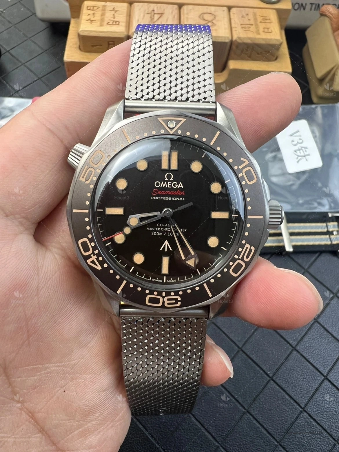 VS Factory Omega Seamaster Diver 300M 007 Edition Titanium Mesh Bracelet Black Dial Super Clone
