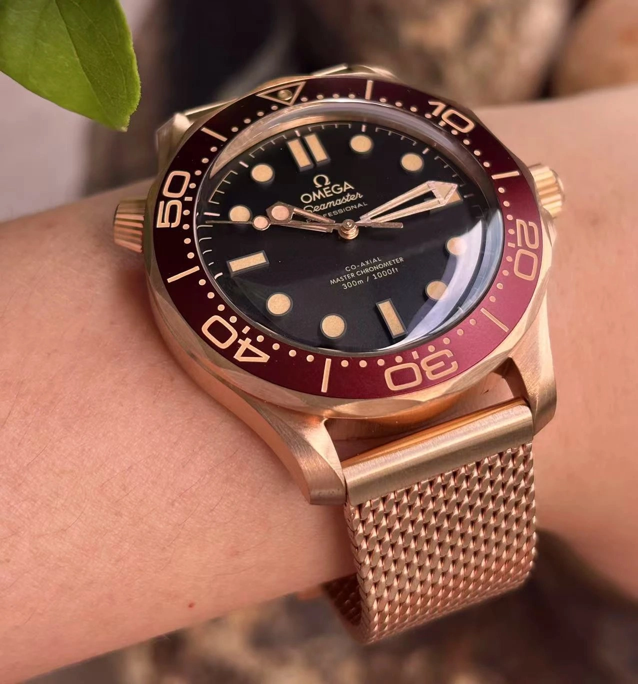 VS Factory Omega Seamaster Diver 300M 210.90.42.20.01.003 Bronze Gold Mesh Black Dial Super Clone
