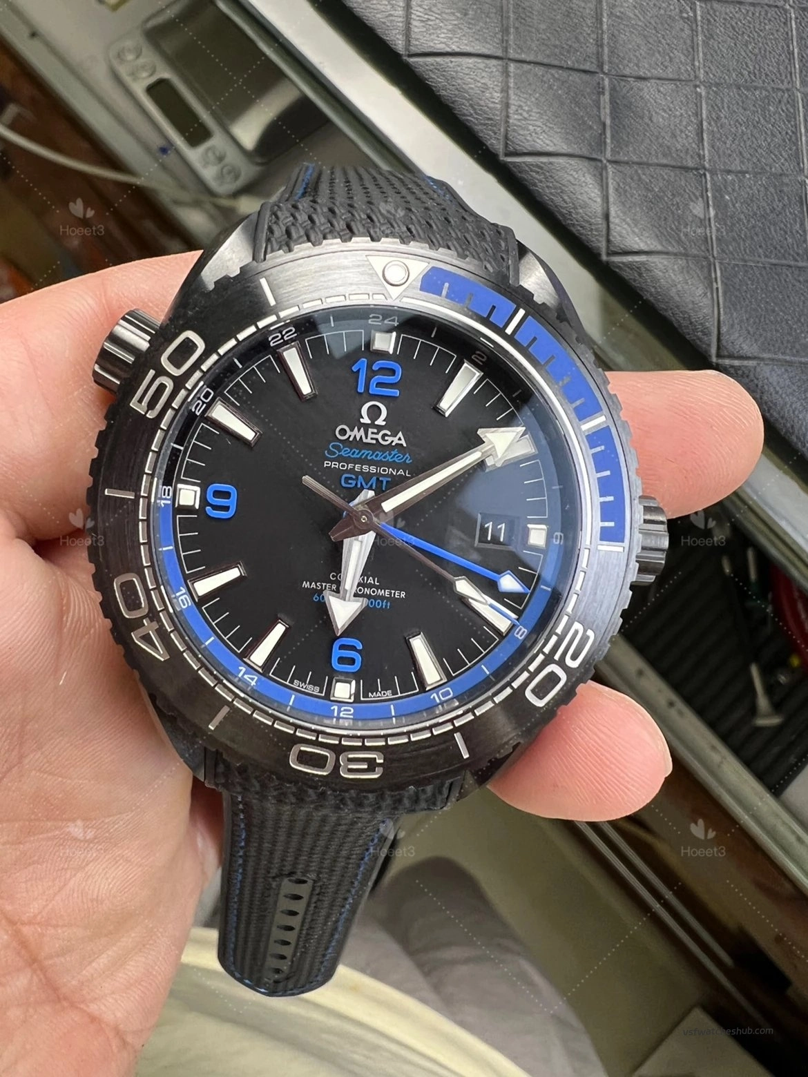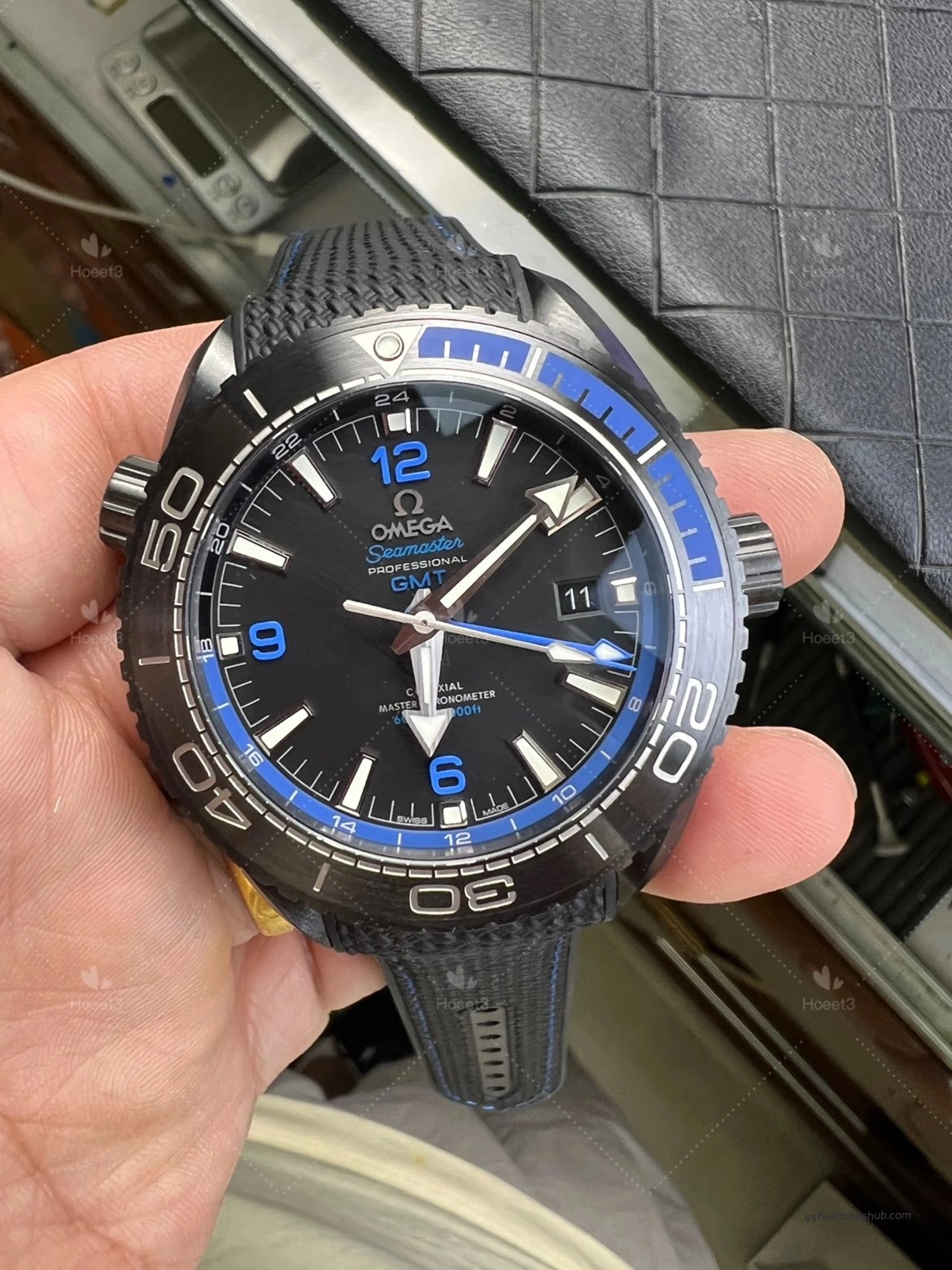 VSF Omega Seamaster Planet Ocean Deep Black GMT 600M Black Ceramic Blue Accent (Super Clone)