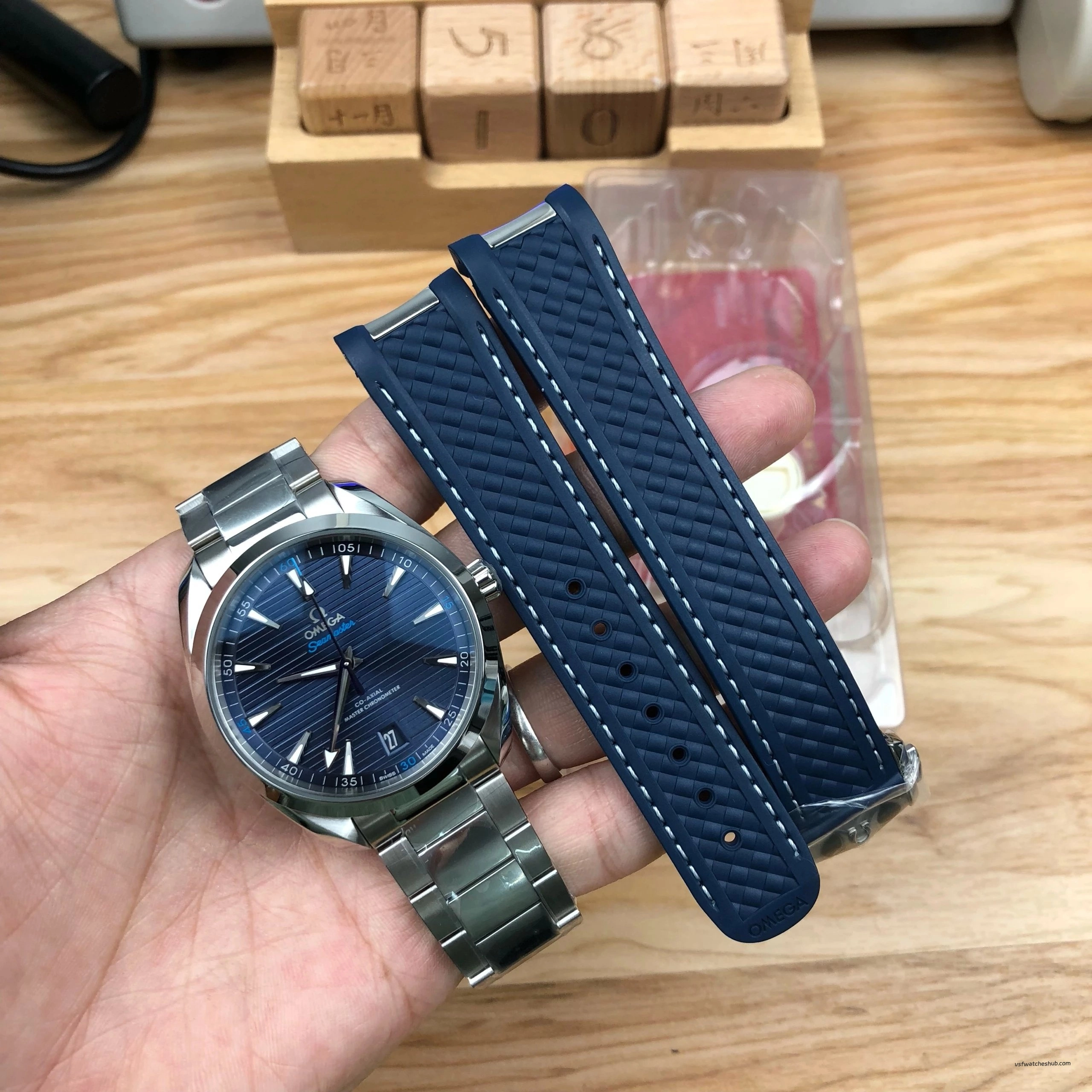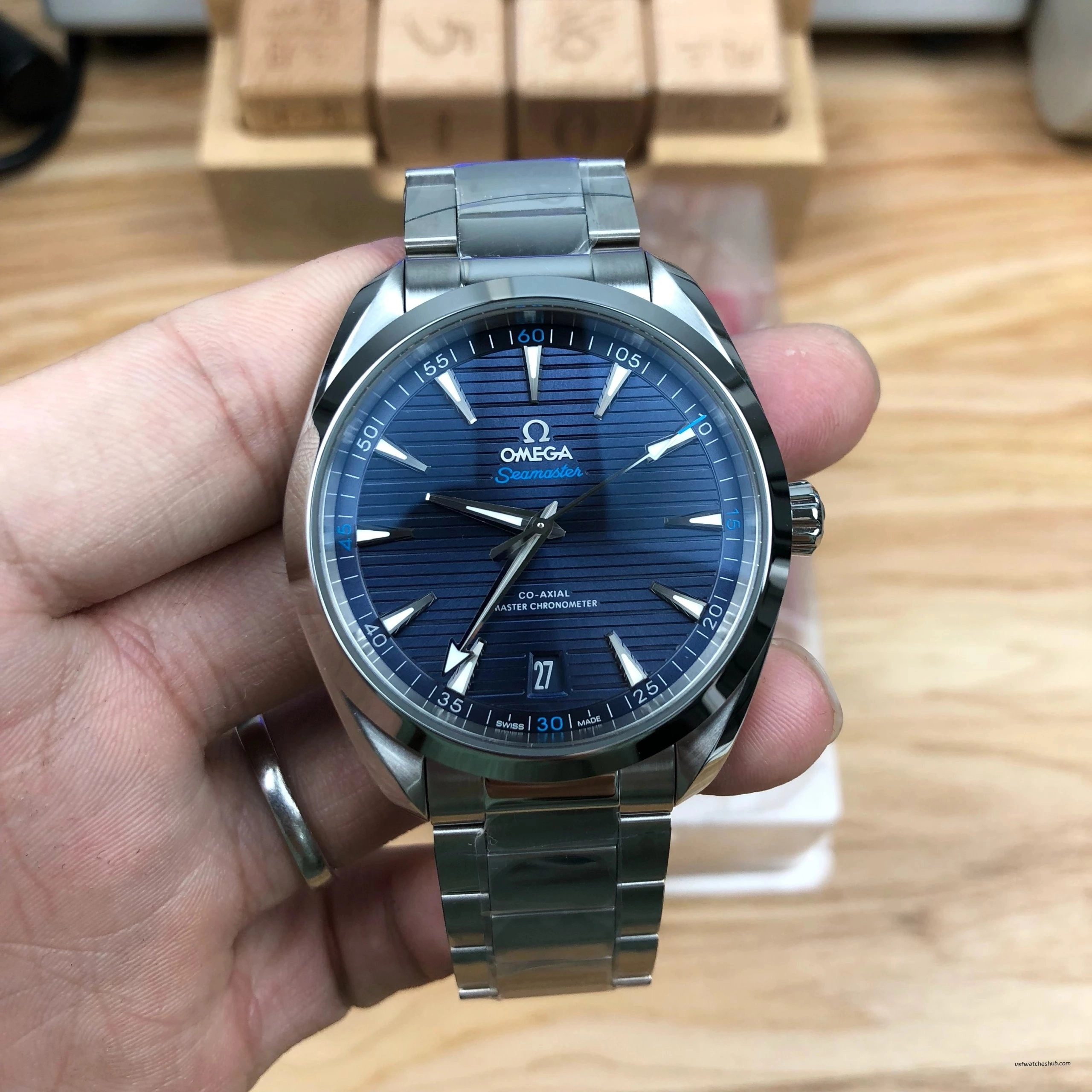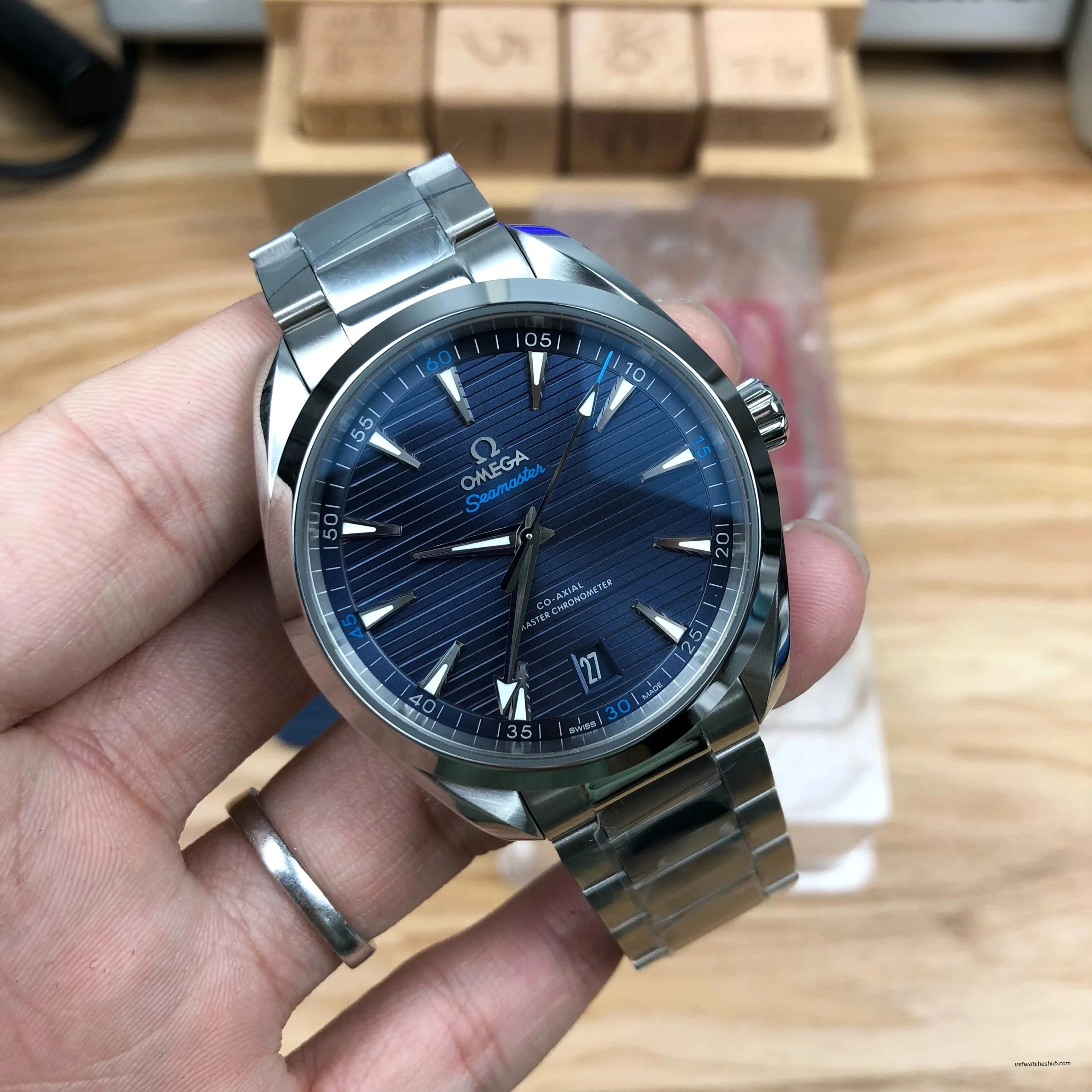 VSF Omega Seamaster Aqua Terra 150M 220.10.41.21.03.001 Blue Dial Steel Bracelet & Rubber Strap Super Clone