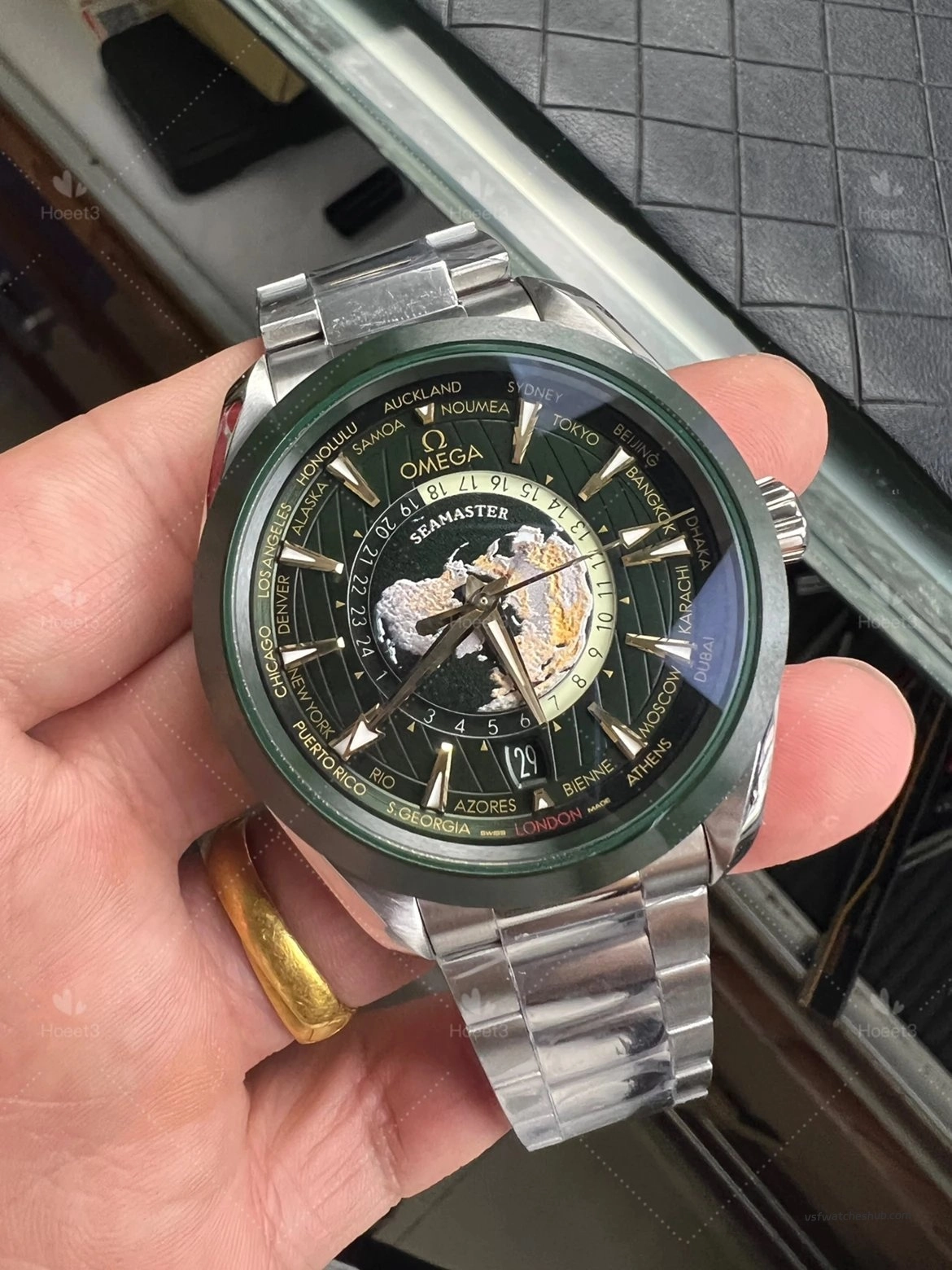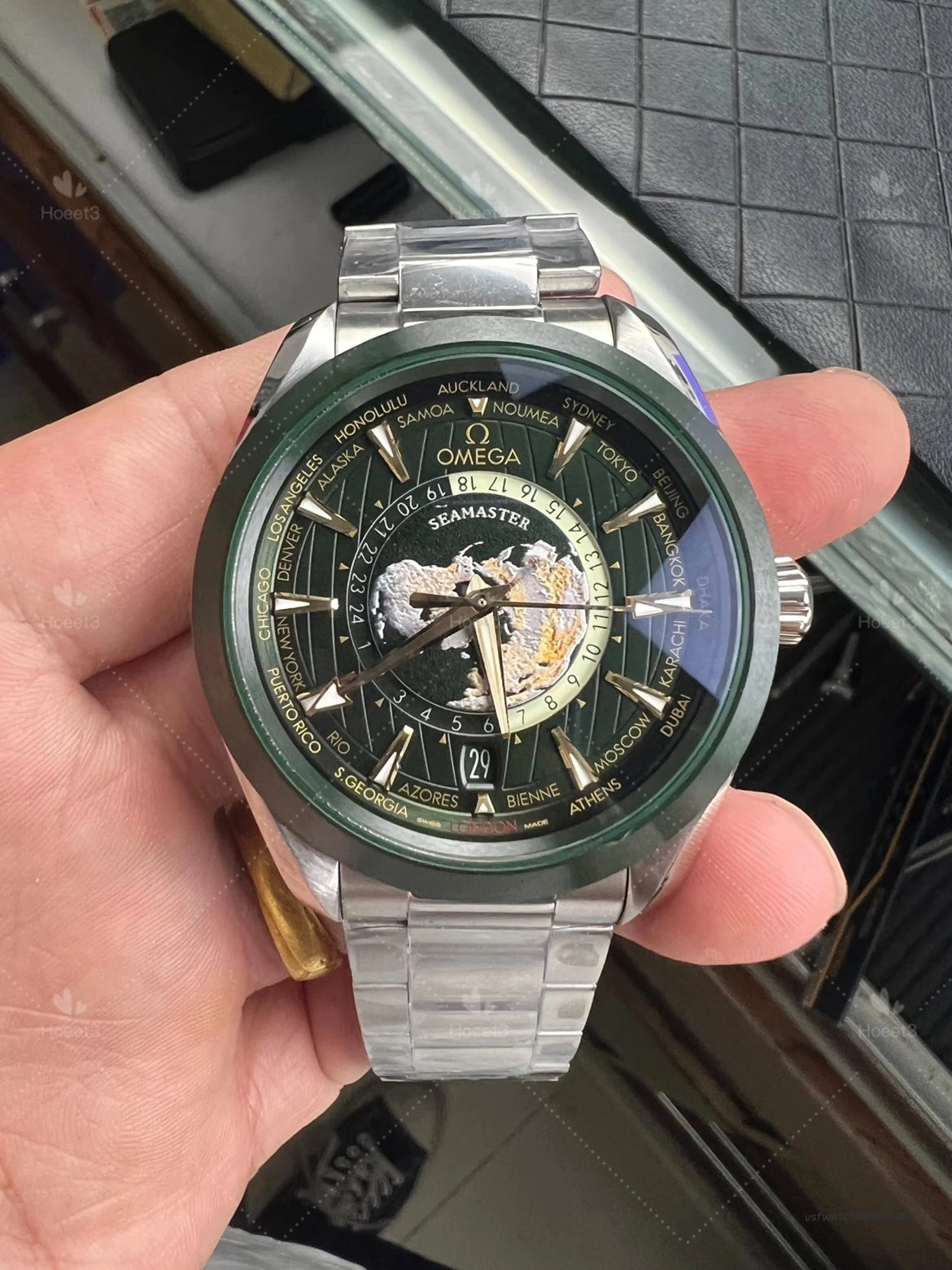 VS Factory Omega Seamaster Aqua Terra Worldtimer Green Ceramic Dial Super Clone