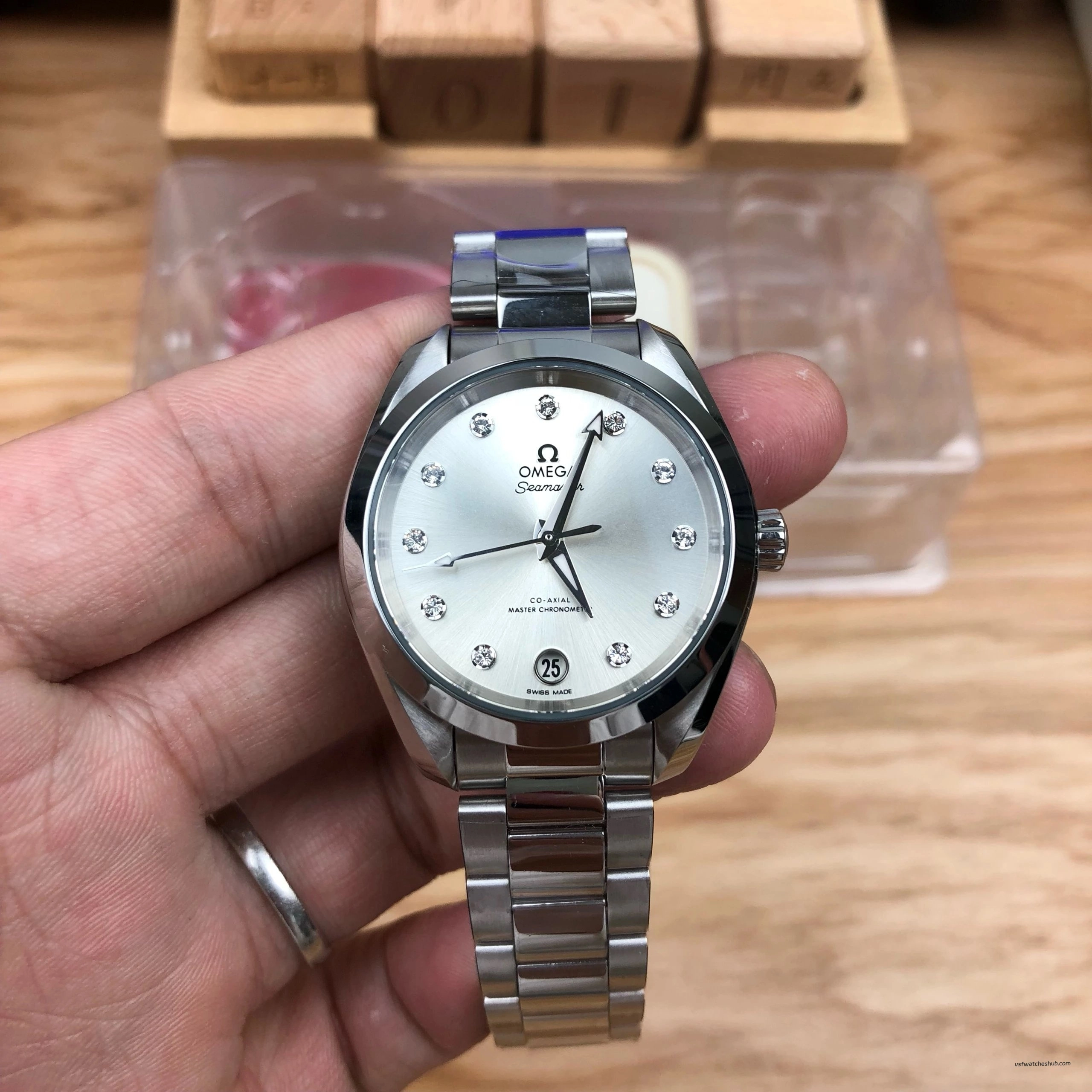 VS Factory Omega Seamaster Aqua Terra 150M 34mm White Dial Diamond Markers Ladies Super Clone