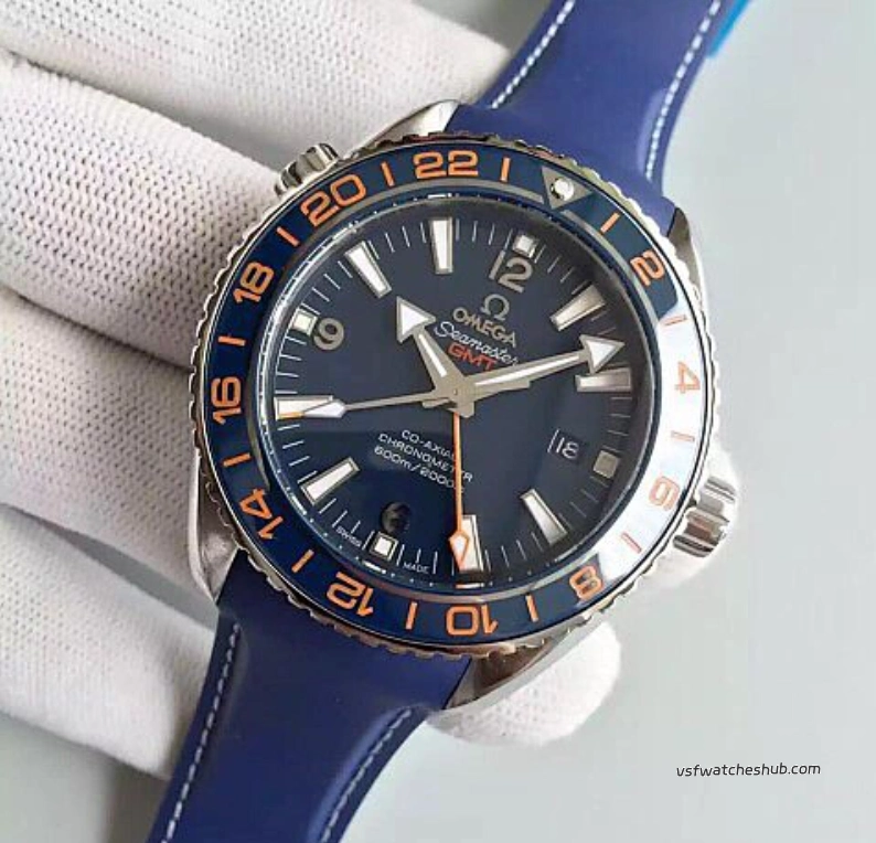 VS Factory Omega Seamaster Planet Ocean 600M GMT Ref 232.32.44.22.03.001 Blue Dial Rubber Strap Super Clone