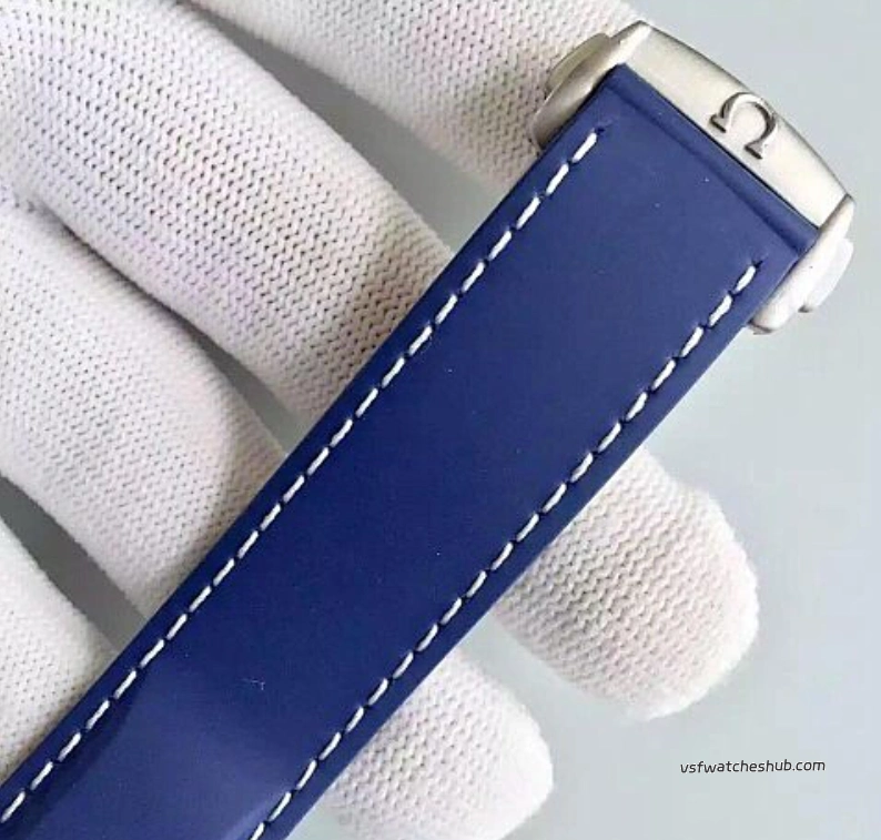 •Rubber strap integration and clasp structure replicated from original Omega design.