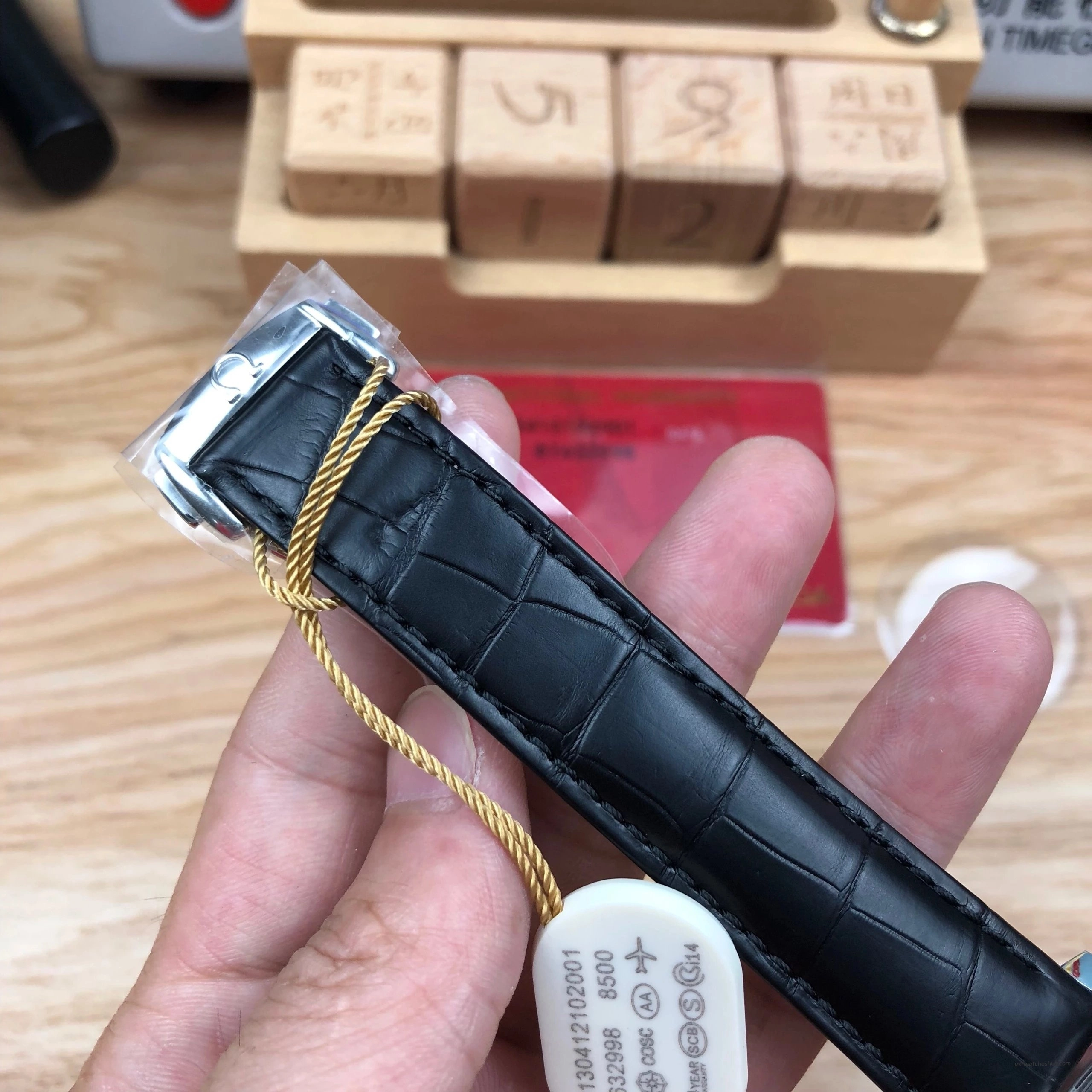 Strap / Bracelet:Black Crocodile Pattern Leather Strap