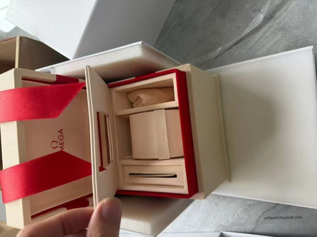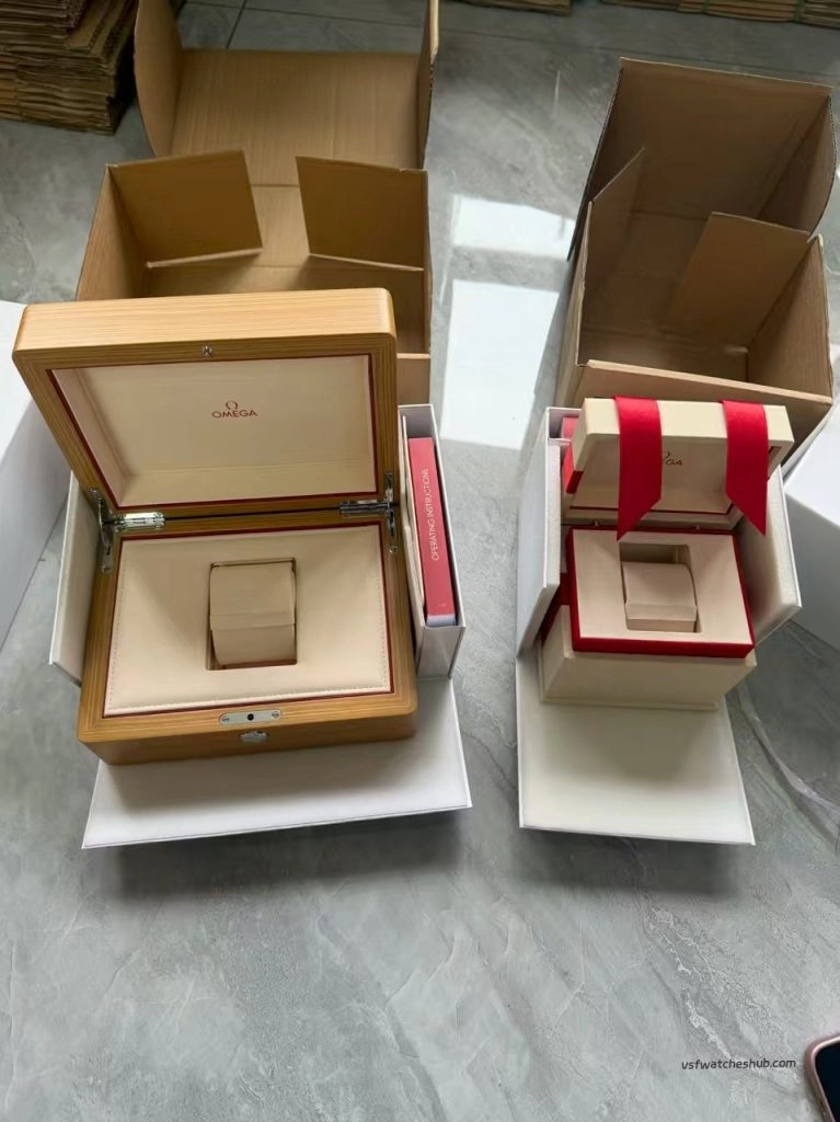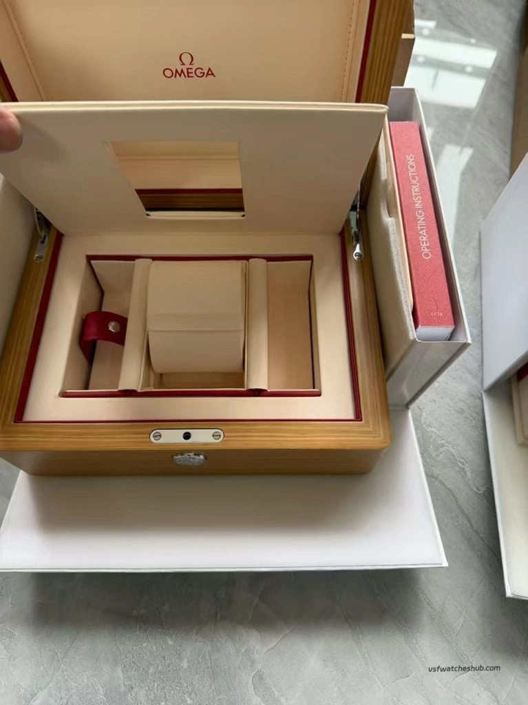 Omega Original Style Watch Box Wood Grain Full Set Packaging Storage Display Case Replacement Box