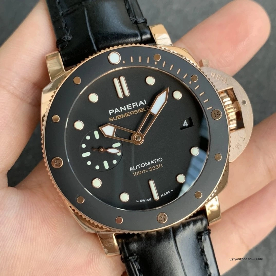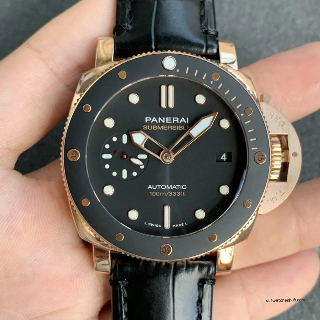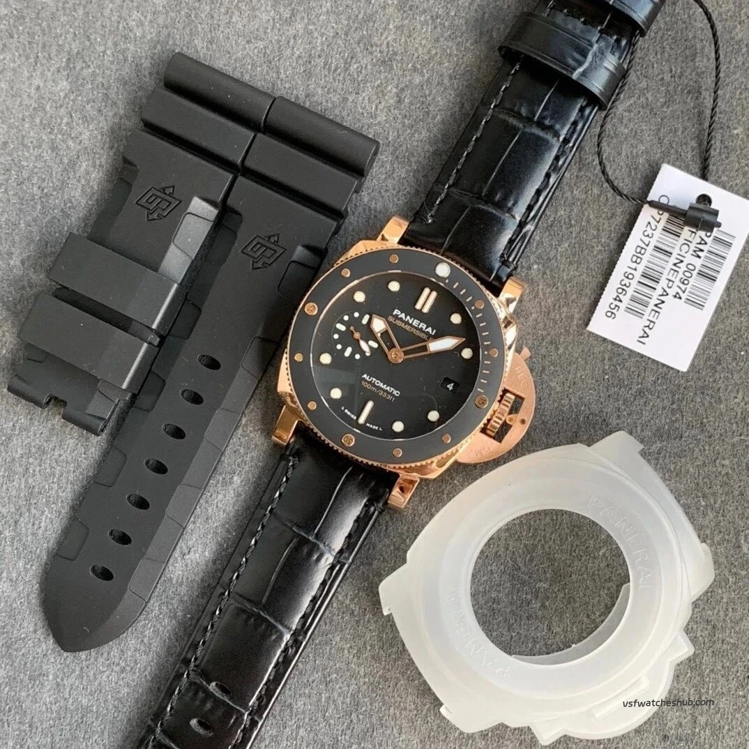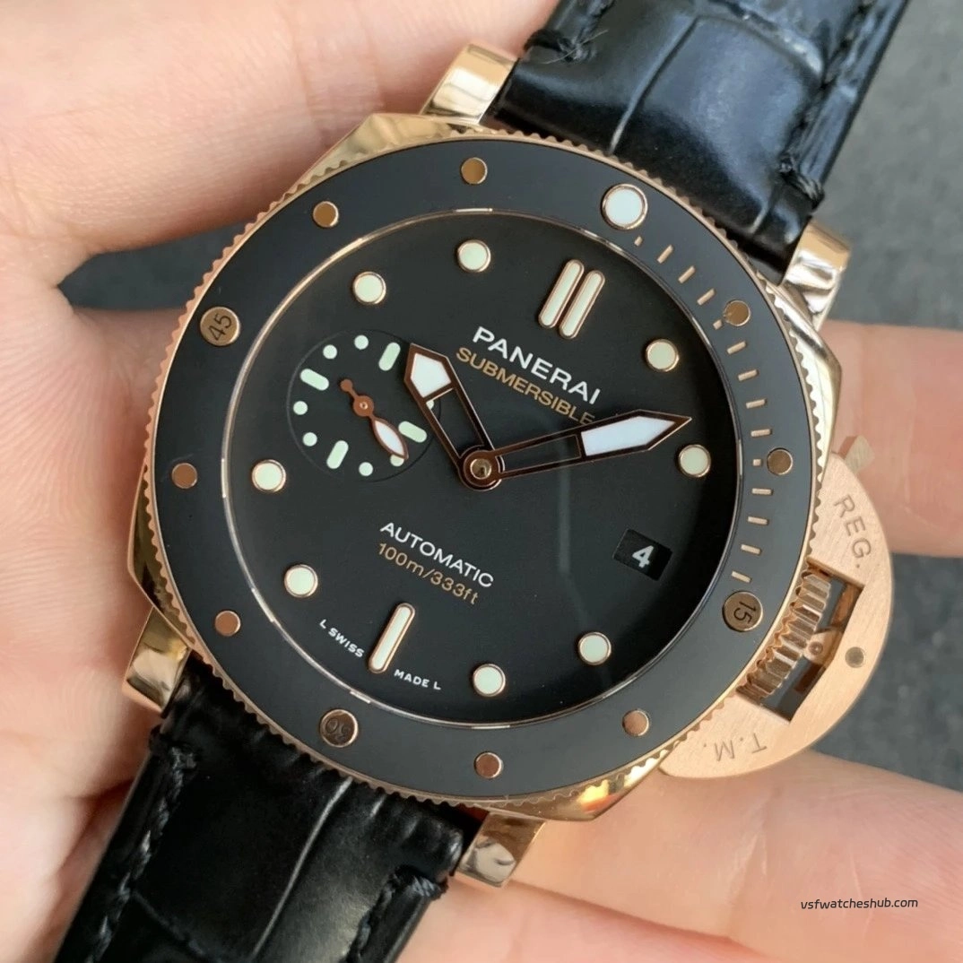 VS Panerai Submersible PAM00974 42MM Rose Gold Black Bezel Super Clone
