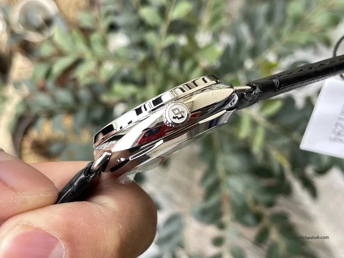 Here's the deal with the movement. VS uses a modified P.9010 base with the rotor and engravings redone to read P.900, matching what the gen carries. The balance wheel position doesn't perfectly mirror the genuine P.900 layout — that's just how it is with this caliber across the rep market right now.