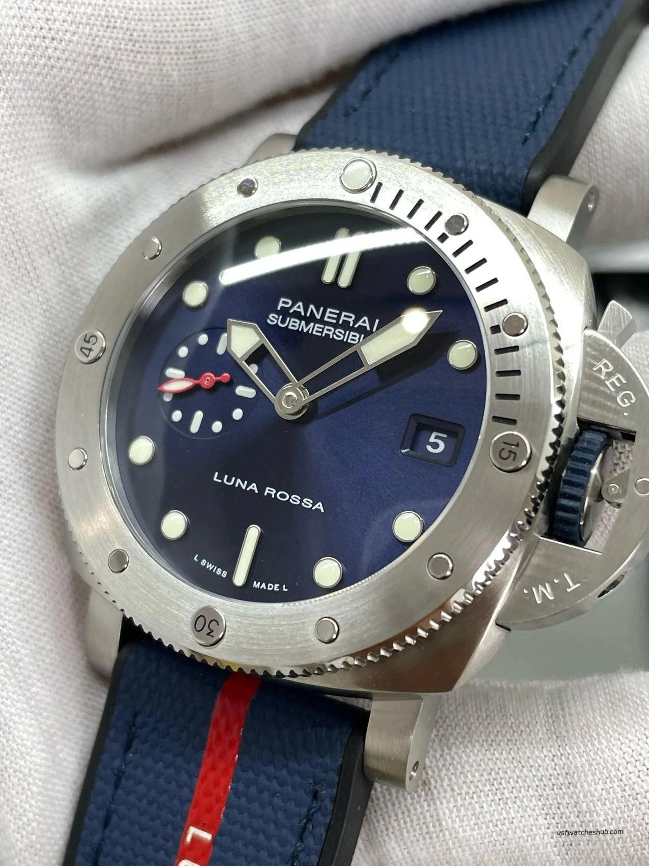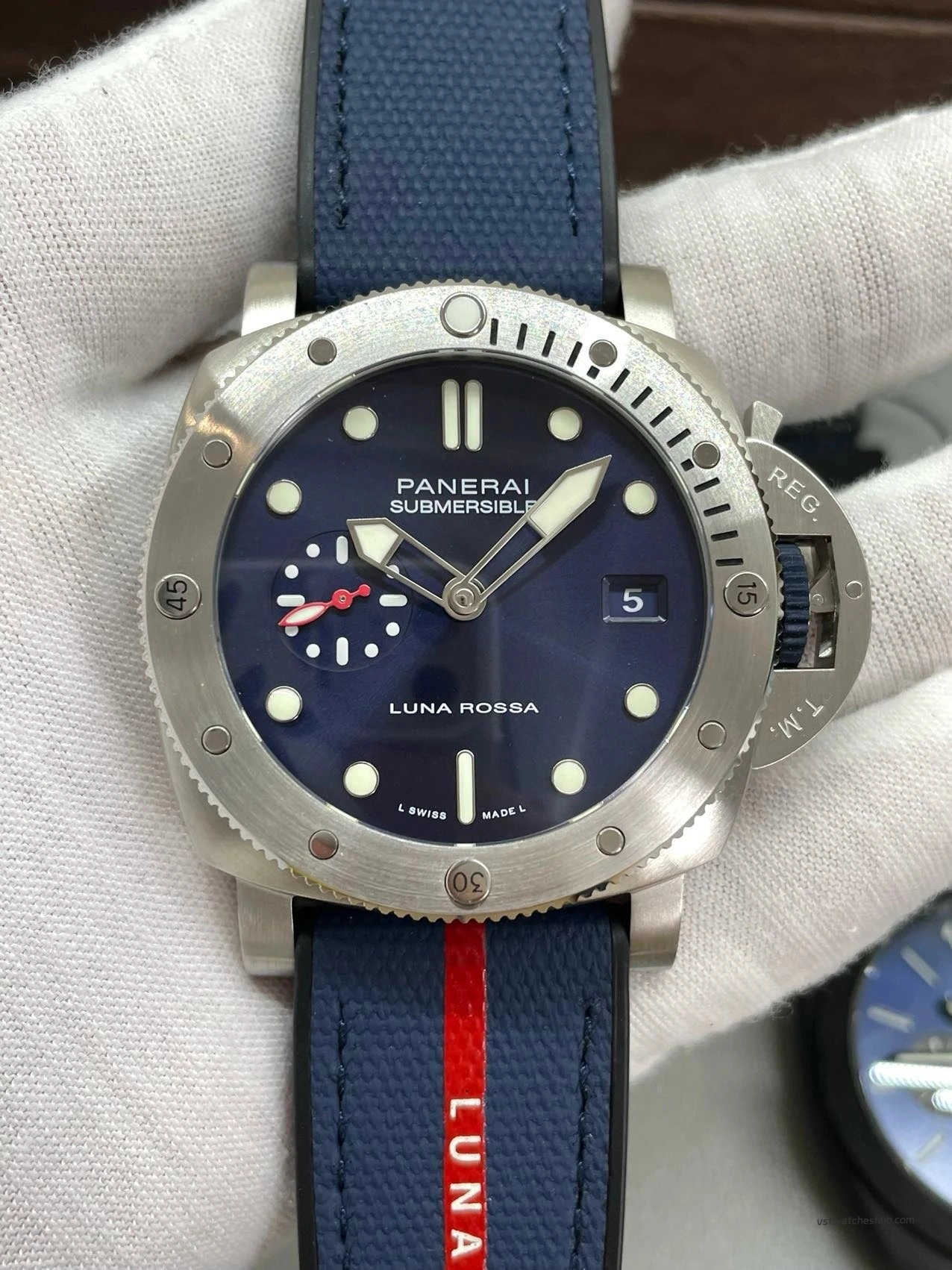 •Dial printing, Luna Rossa text placement and date window alignment match the genuine reference closely.