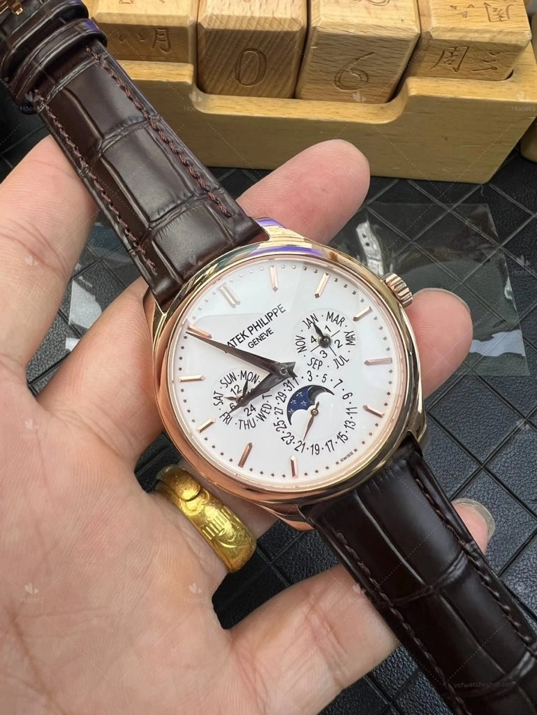 PPF Patek Philippe Annual Calendar 5396R Rose Gold White Dial Leather Strap Super Clone