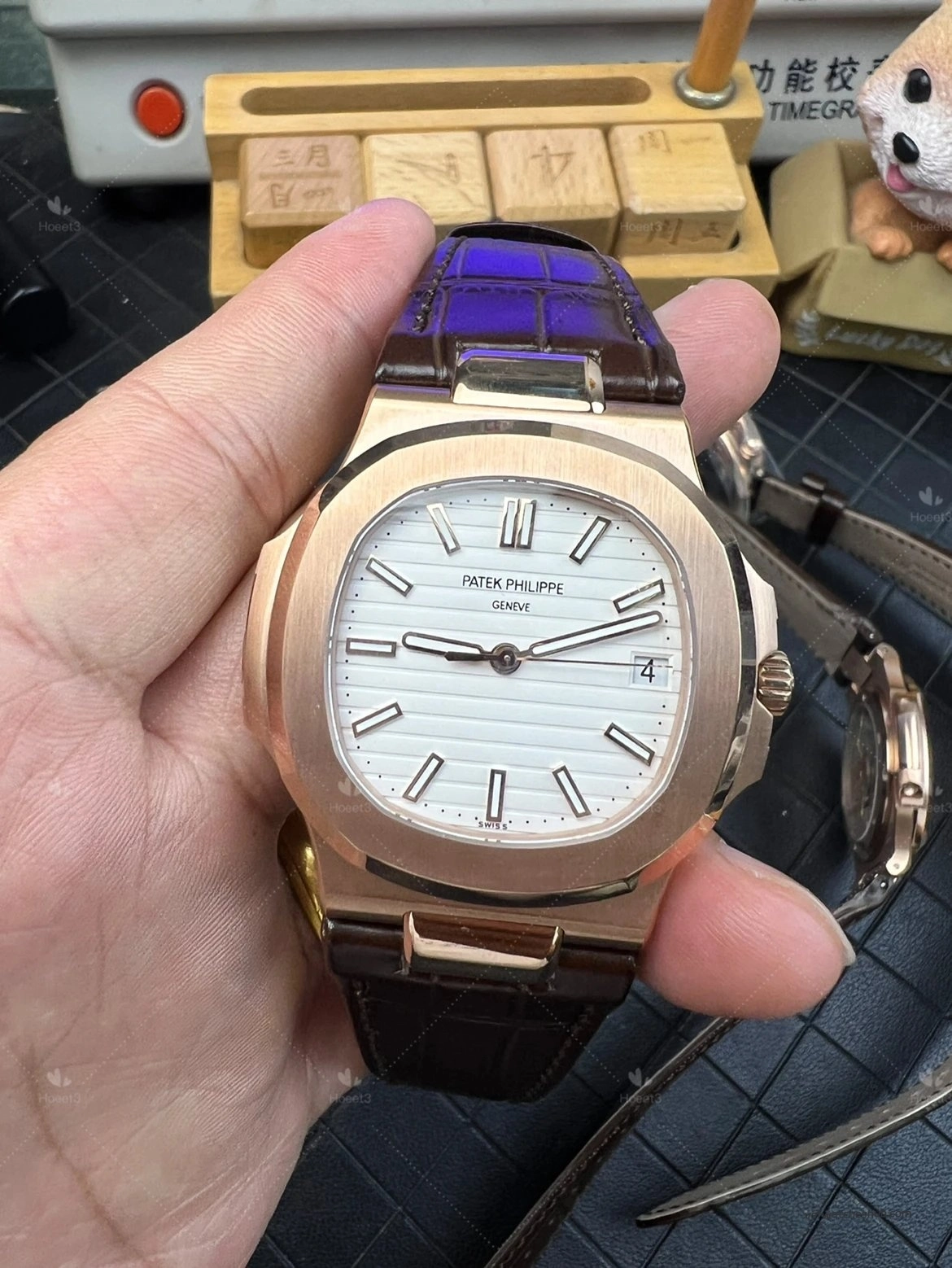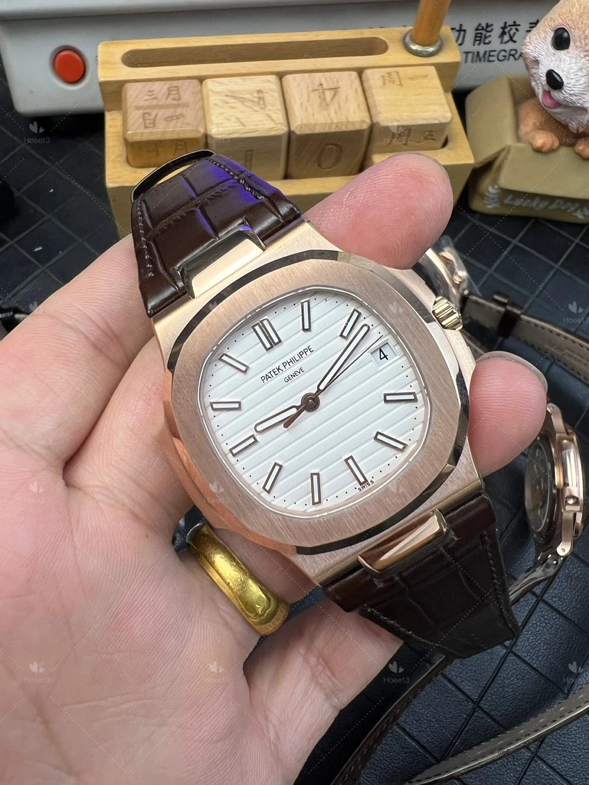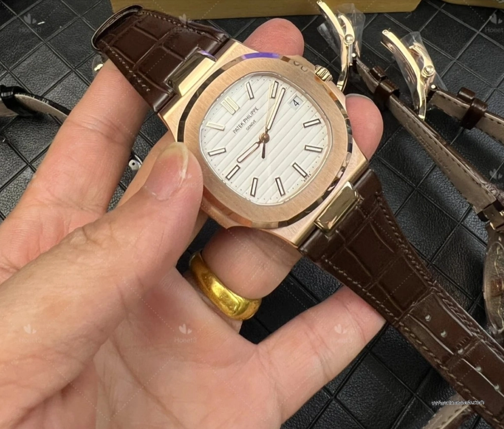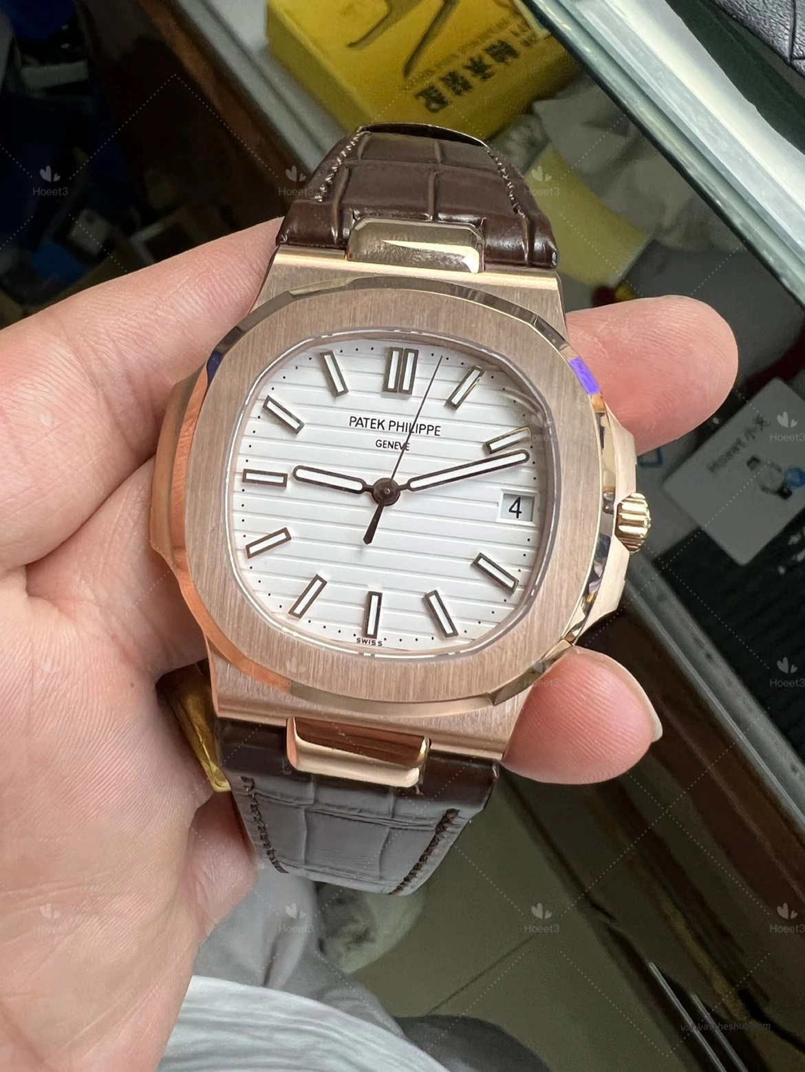 DDF Patek Philippe Nautilus 5711 Rose Gold White Dial Leather Strap Super Clone