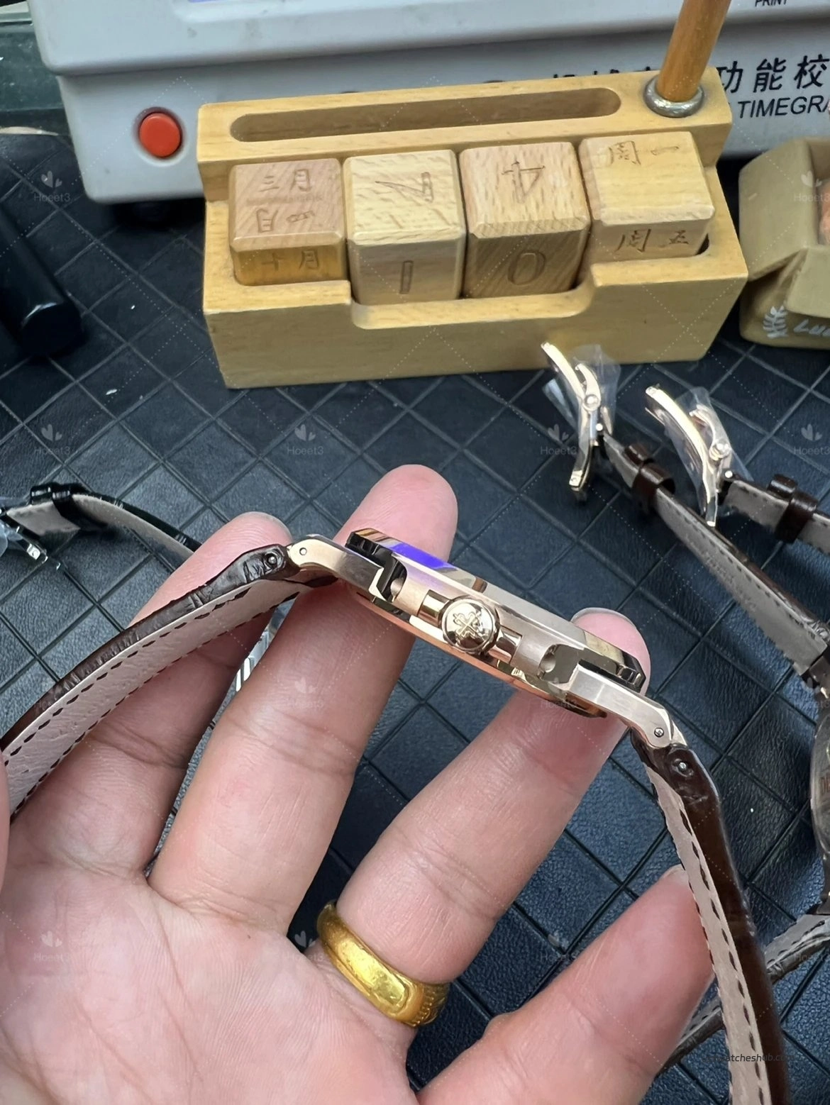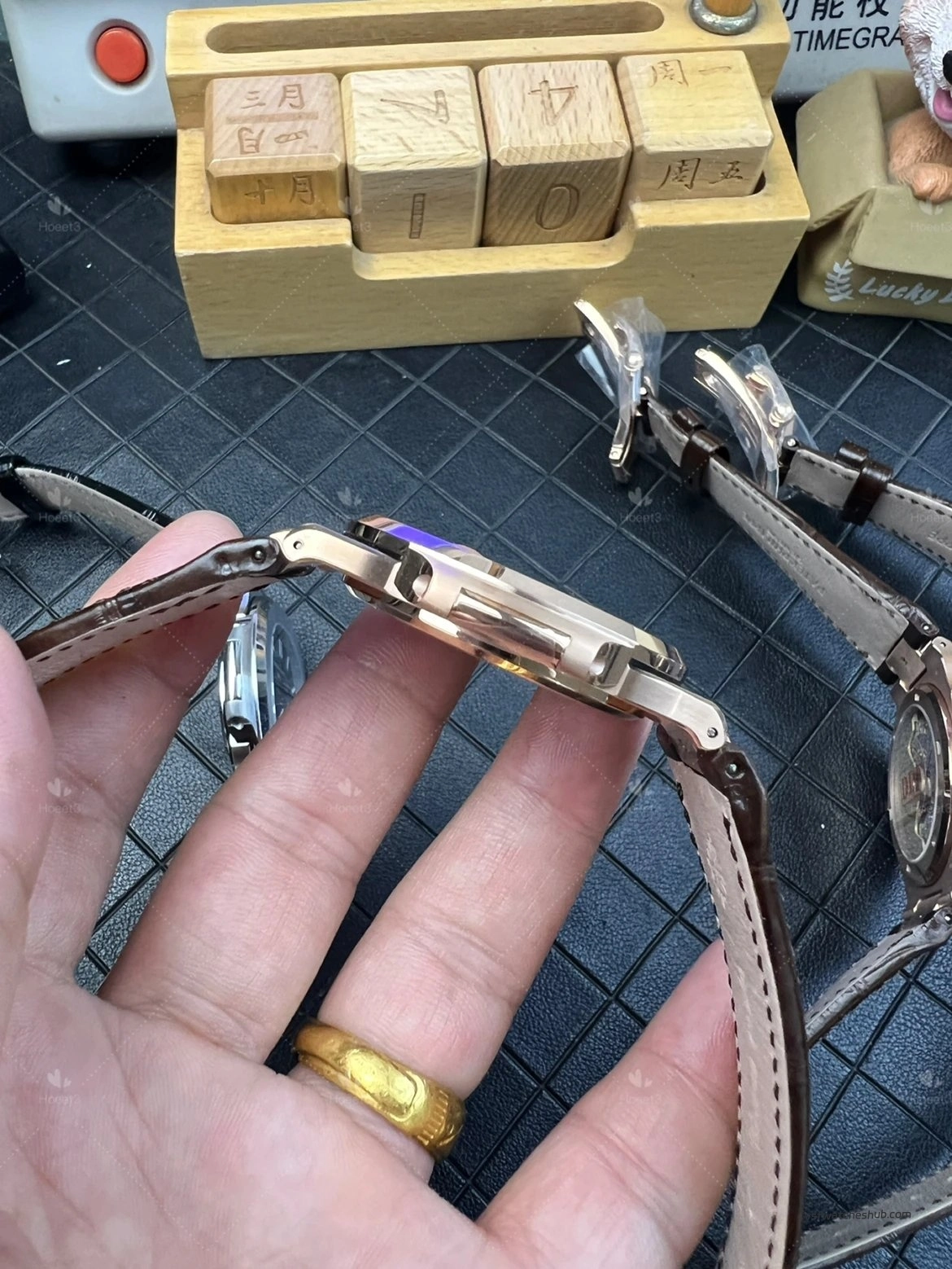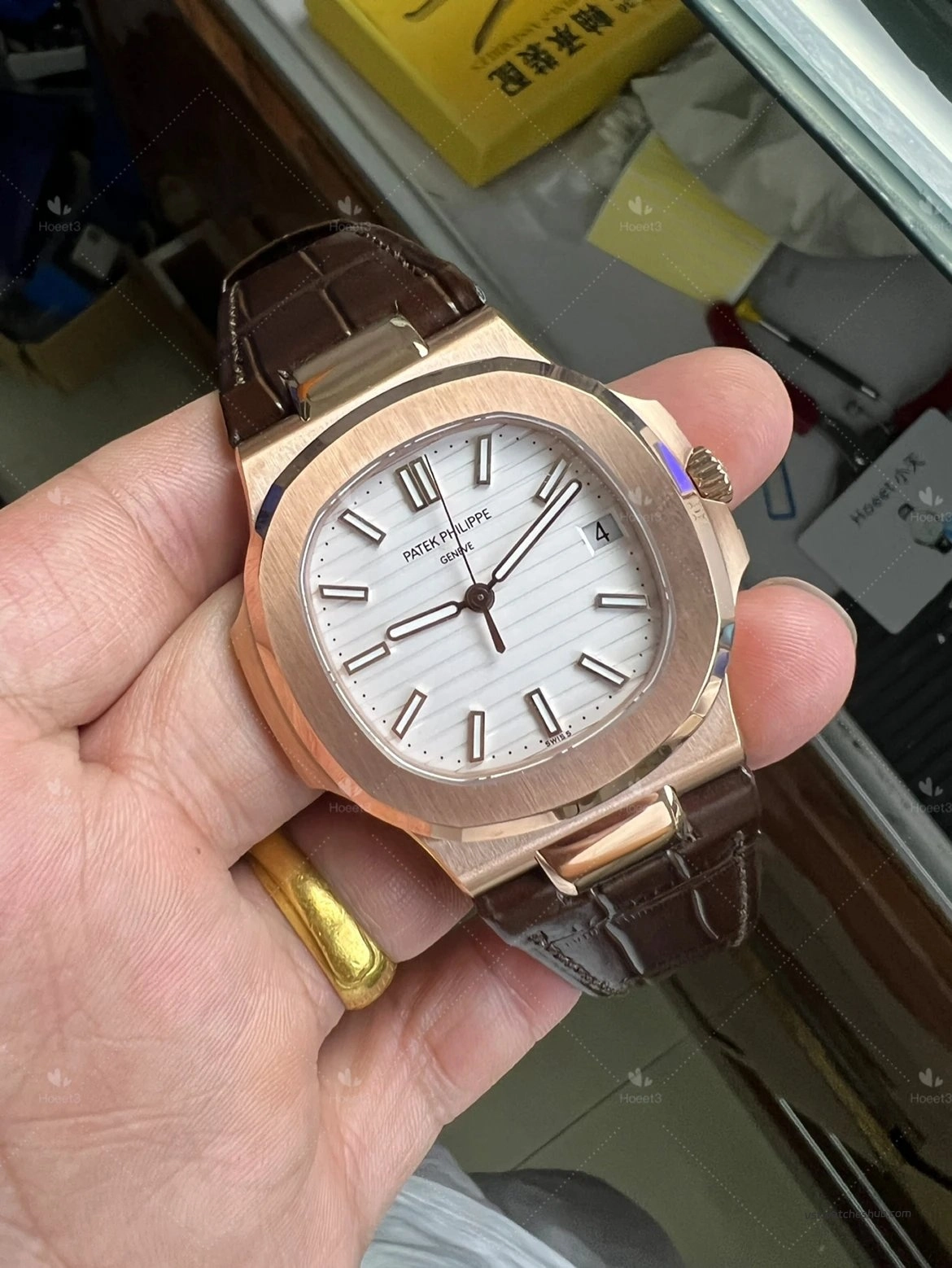 DDF Patek Philippe Nautilus 5711 Rose Gold White Dial Leather Strap Super Clone