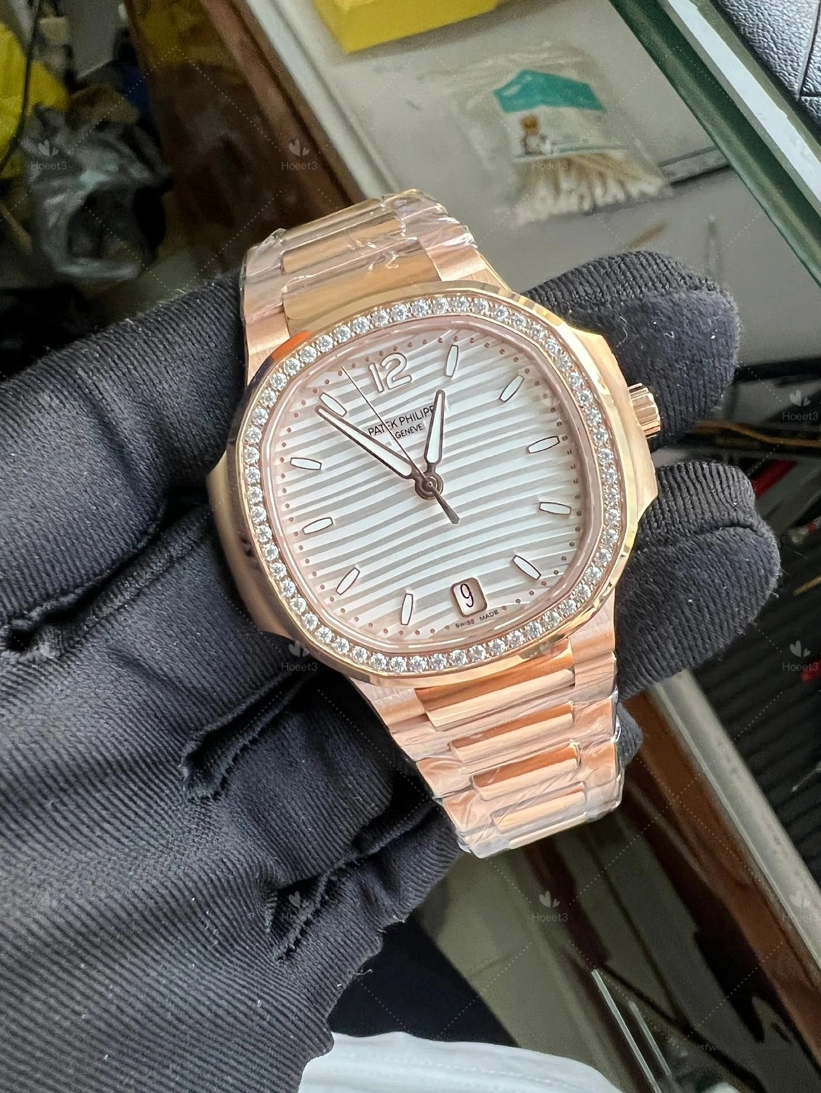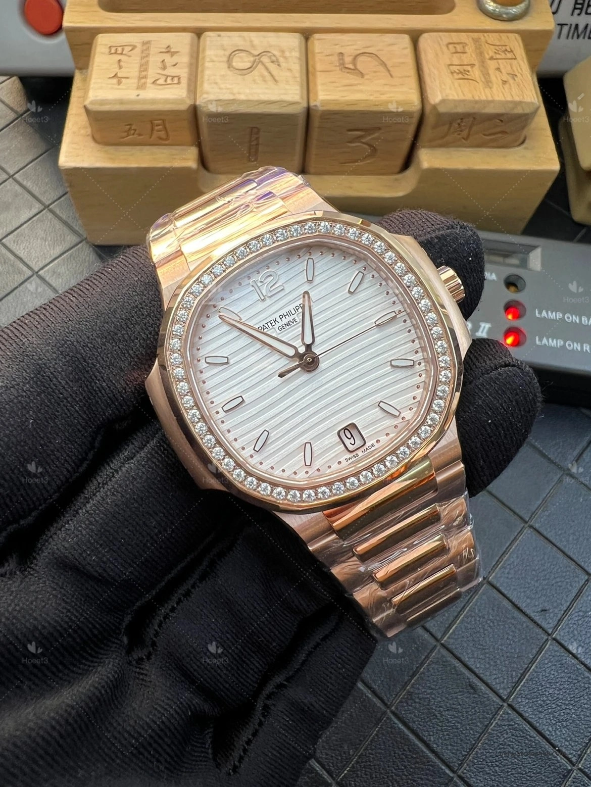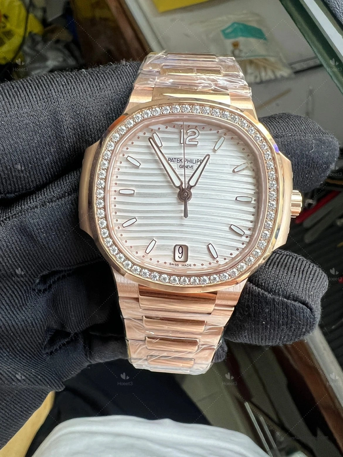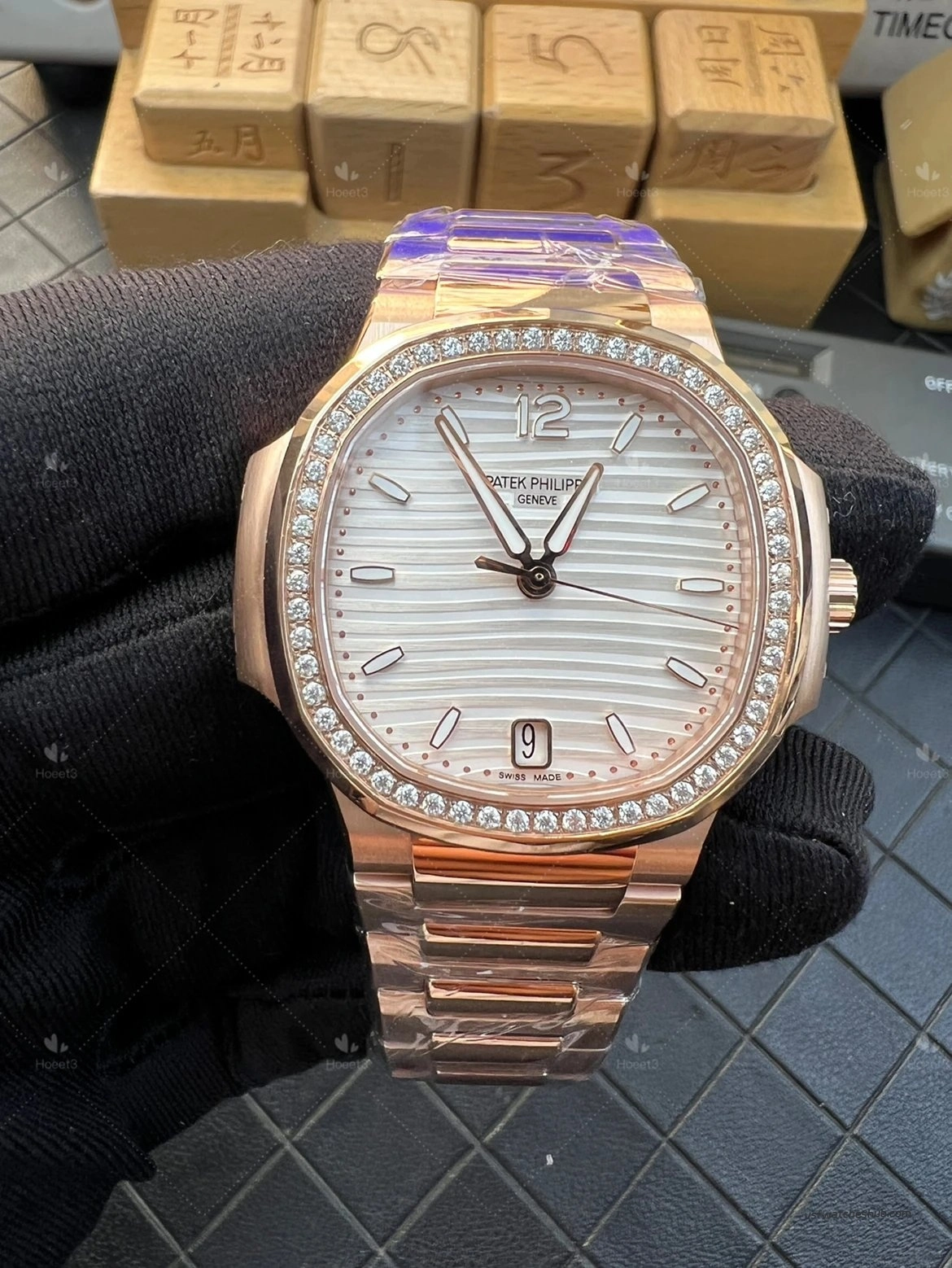 Shorts 3K Factory Patek Philippe Nautilus 7118/1200R-001 Rose Gold White Dial Diamond Bezel Super Clone Shorts