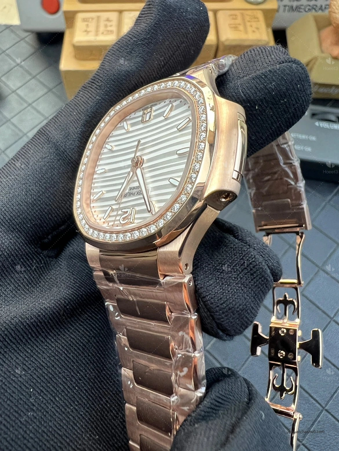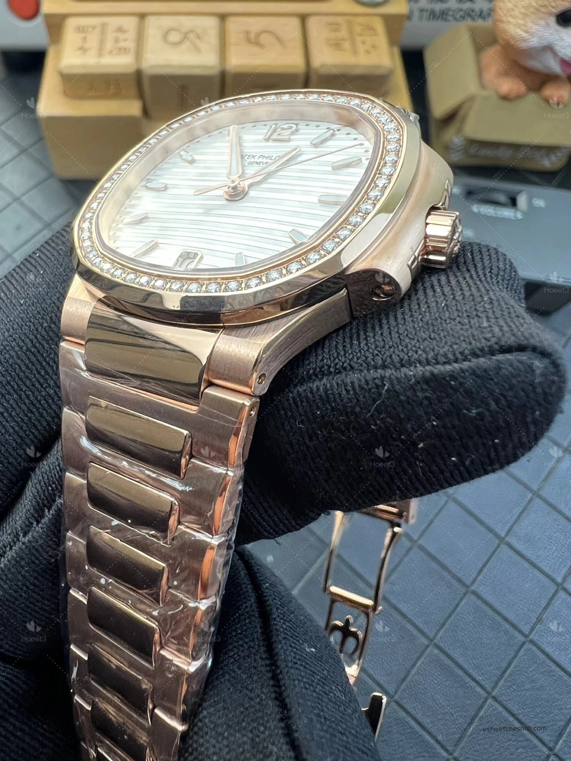 3K Factory Patek Philippe Nautilus 7118/1200R-001 Rose Gold White Dial Diamond Bezel Super Clone