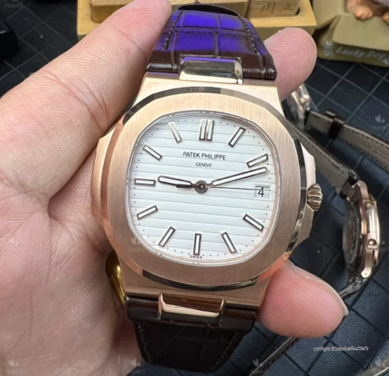 DDF Patek Philippe Nautilus 5711 Rose Gold White Dial Leather Strap Super Clone$1,131