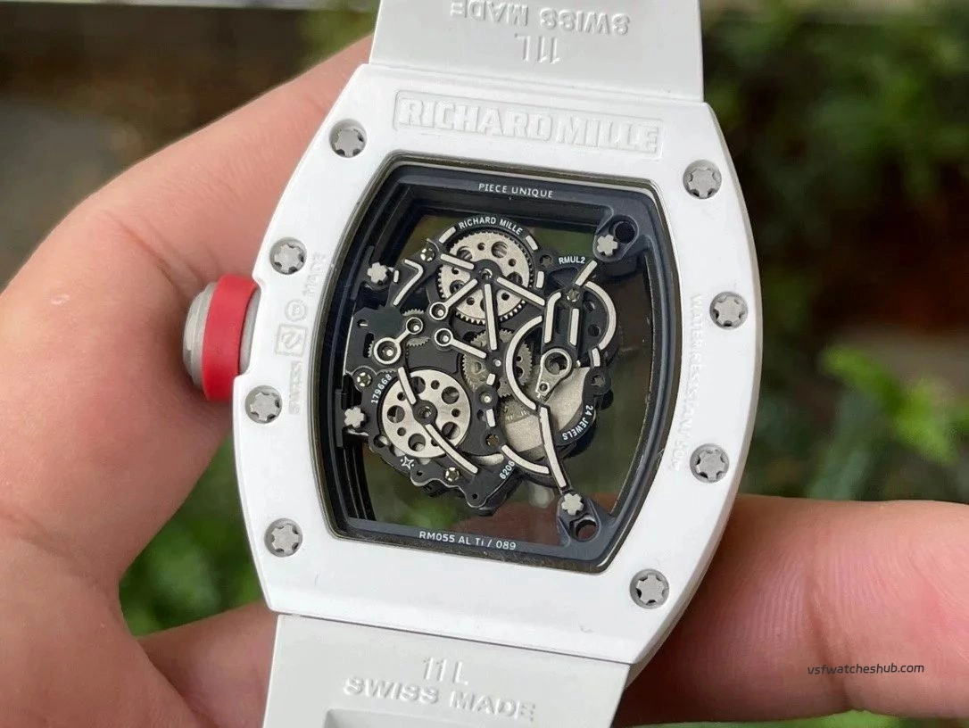 Richard Mille RM055 White Ceramic RMUL2 Skeleton Velcro Strap D Factory Super Clone