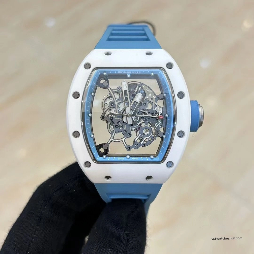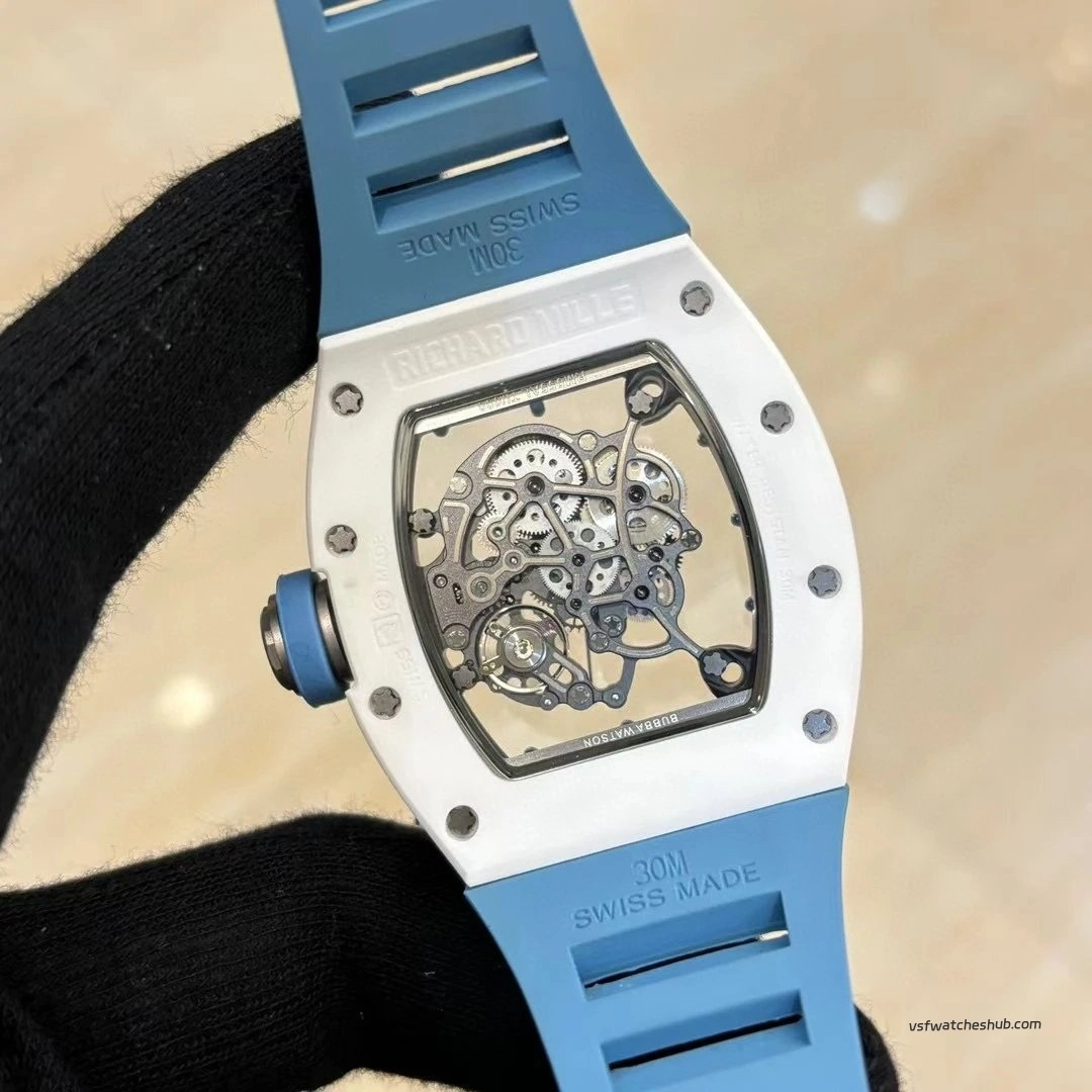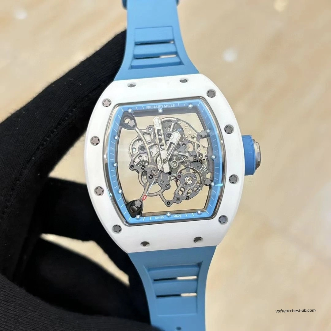 Richard Mille RM055 Bubba Watson White Ceramic Blue Strap RM Factory Super Clone