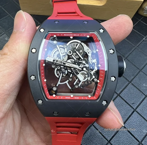 D Factory Richard Mille RM055 Black Ceramic Skeleton Dial Red Strap Super Clone$964