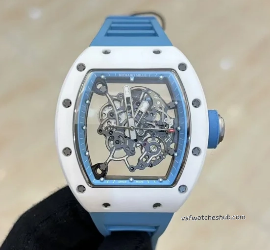 Richard Mille RM055 Bubba Watson White Ceramic Blue Strap RM Factory Super Clone$964