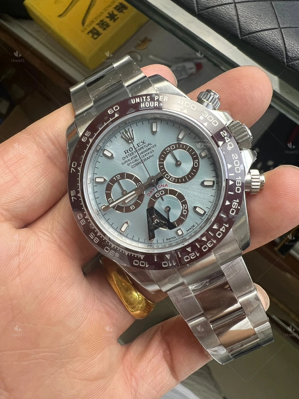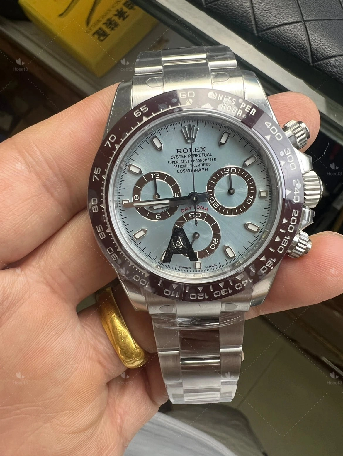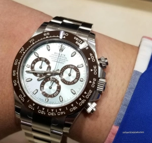 The ice blue dial is the highlight for me. Under daylight it looks very close to what I expected from pictures of the original platinum Daytona.