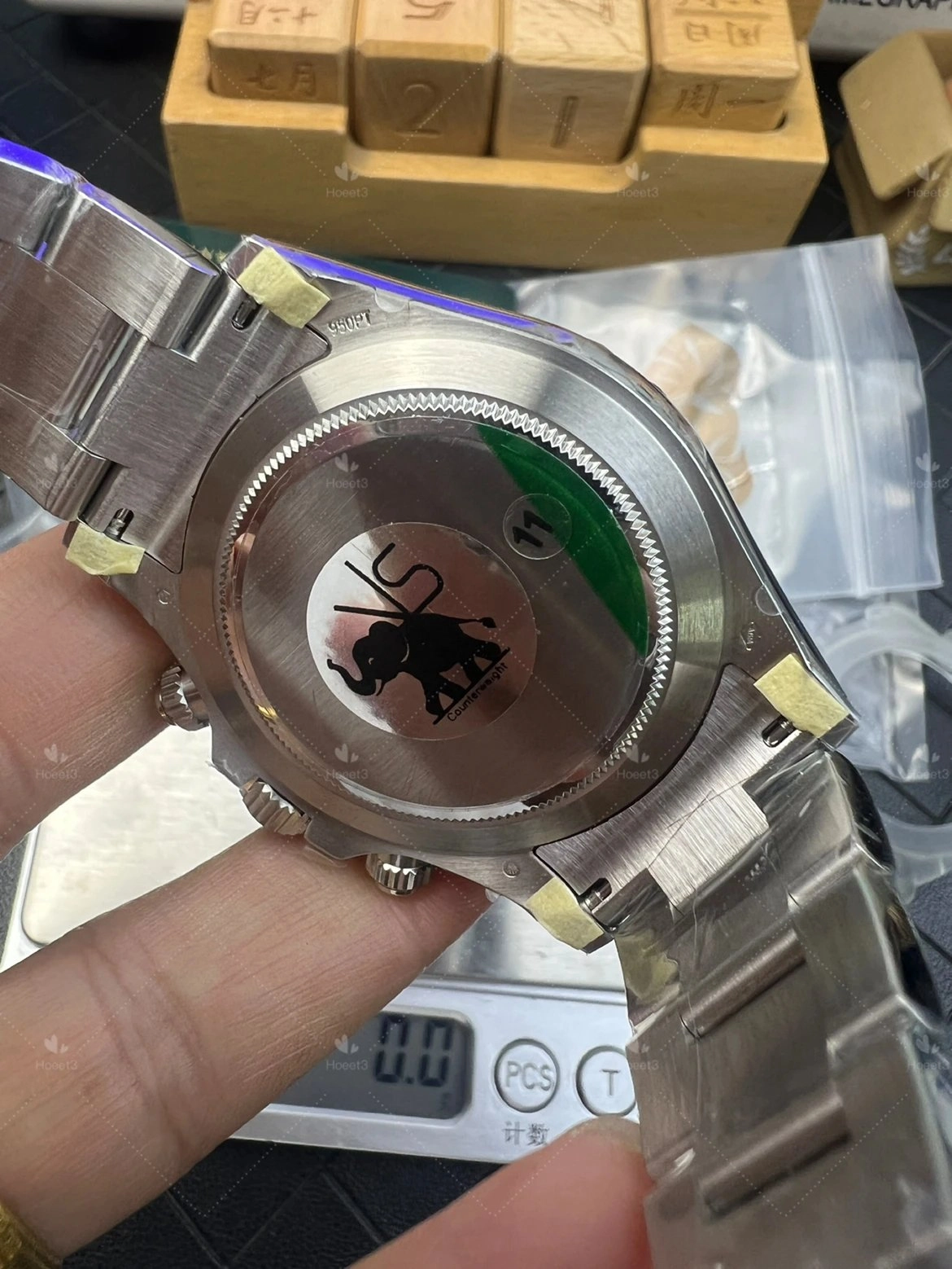 Now — one thing to be upfront about. Gen 116506 is platinum. This rep is stainless steel. You're going to feel the weight difference if you've ever handled a gen platinum Daytona. That said, visually? Very hard to spot.