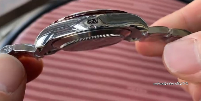 Longer version — the main hands have crisp edges with no burrs, no tiny fibers hanging off them, which honestly used to be a common issue on older batches. The center pinion is probably the closest any rep has gotten to gen on this ref. Side profile shows good thickness too, not paper-thin like some of the budget alternatives out there.