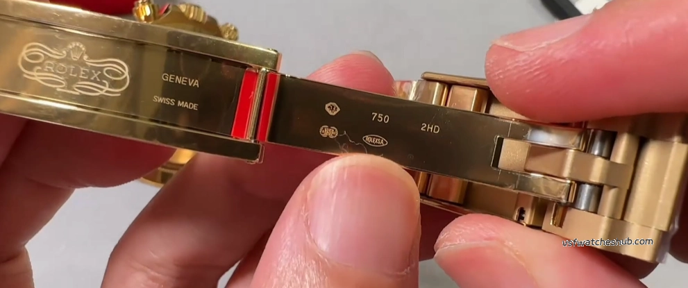 Clasp opens and closes with a satisfying snap. Inside you'll find the engraved code, the Hallmark stamps (dog head, scales, 750), and the anti-counterfeit micro dots. All present.
