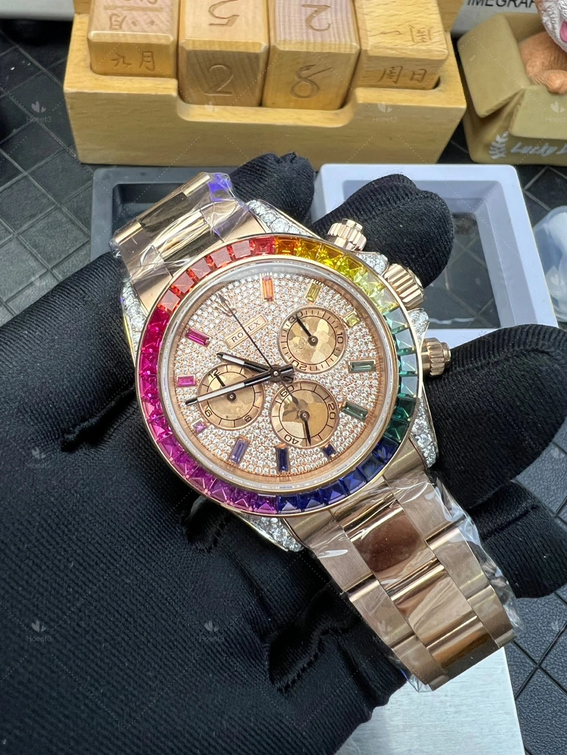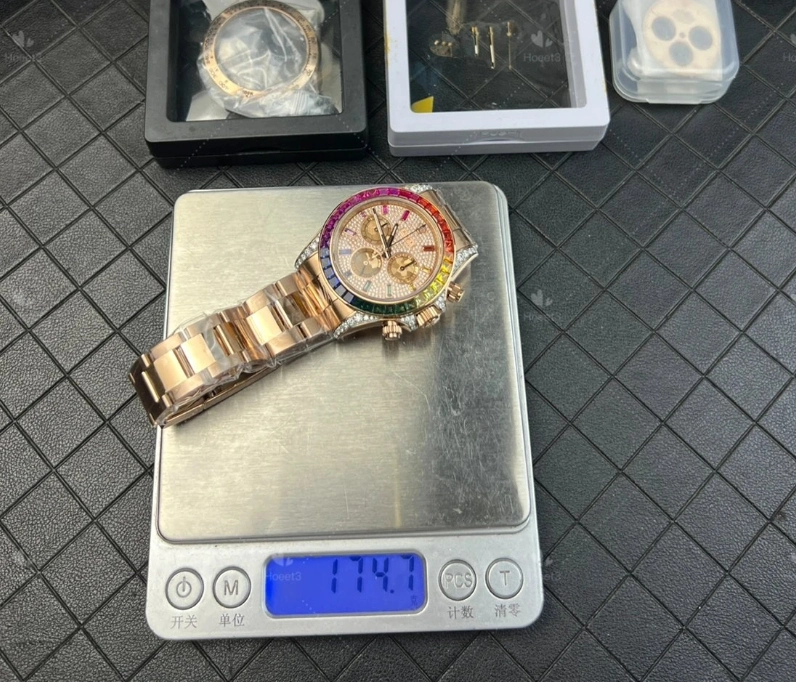 • Based on genuine Rolex Daytona 116595RBOW, full weighted rose gold case improves wrist feel accuracy.