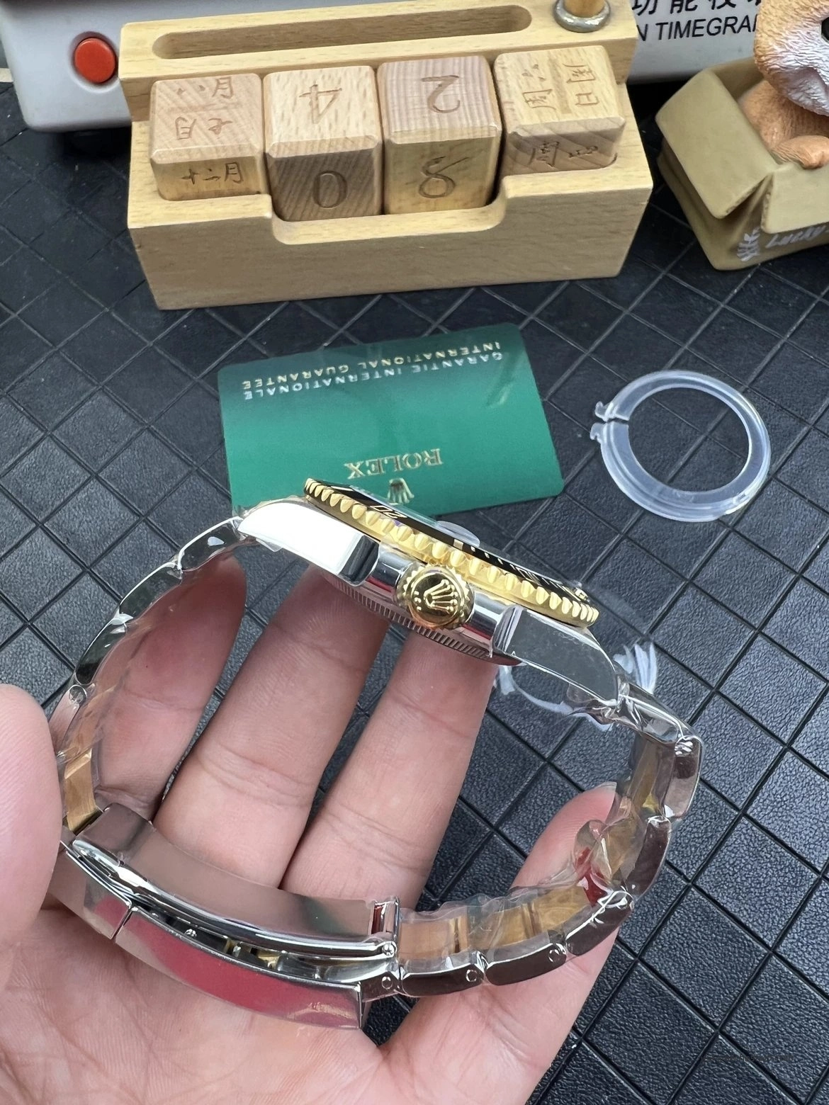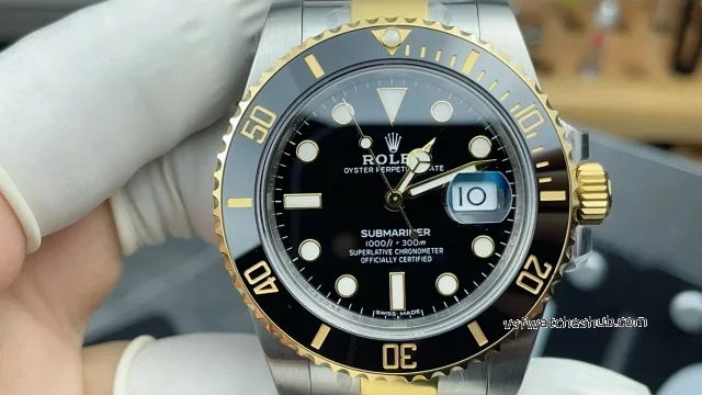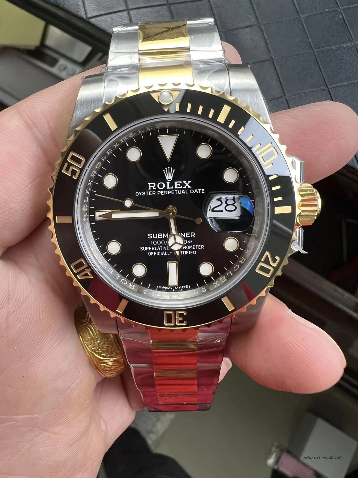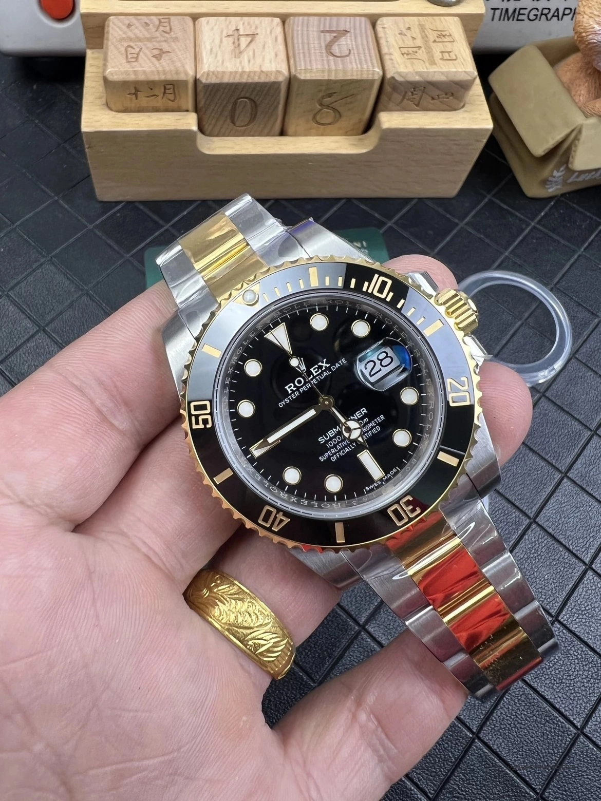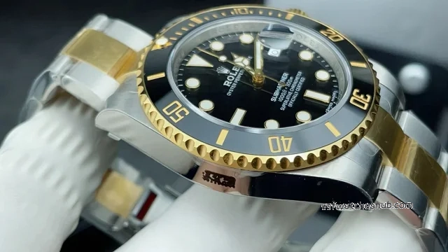 This model remains one of the most balanced two-tone Submariner replicas currently available.