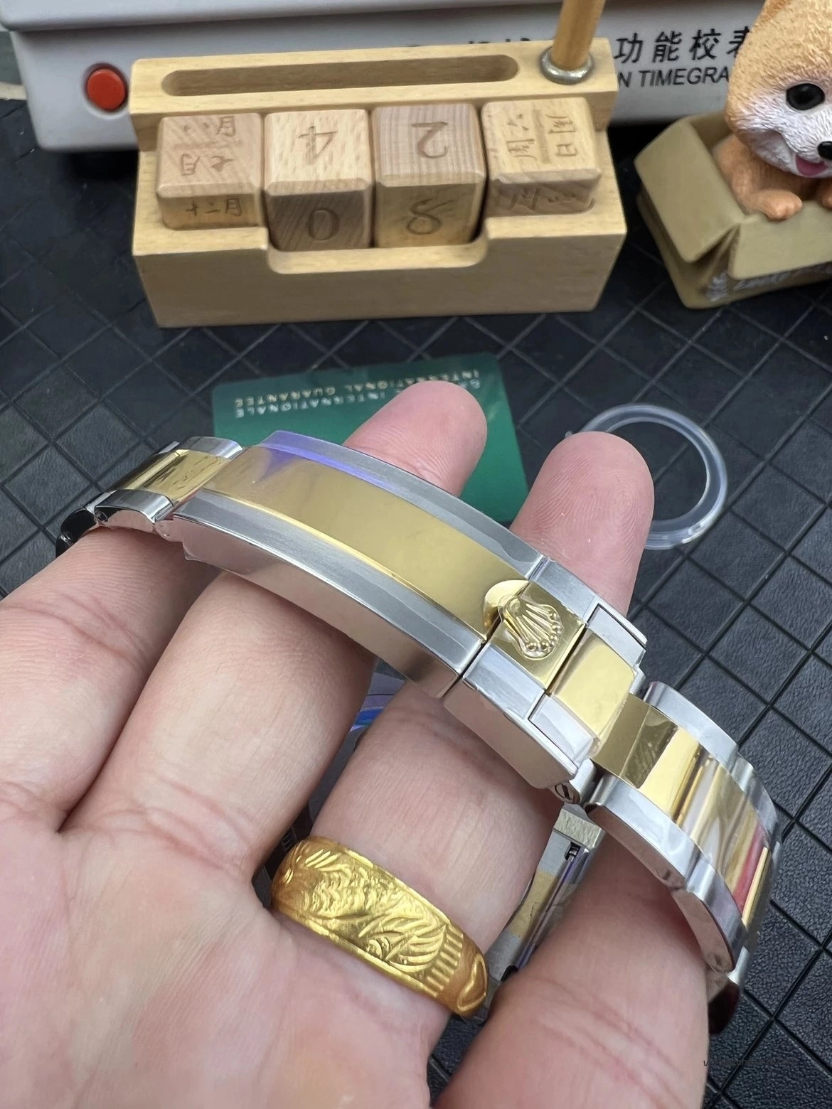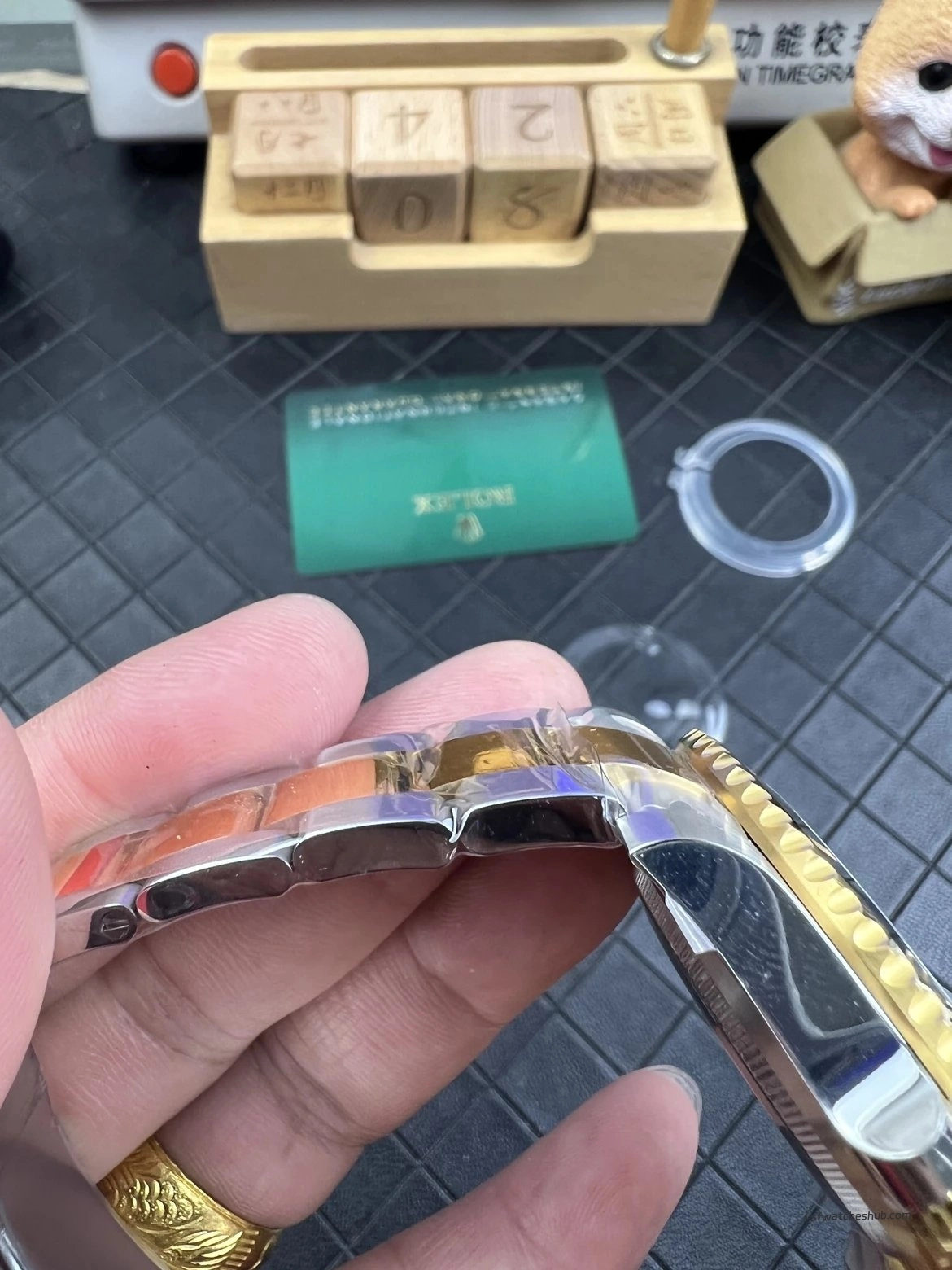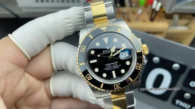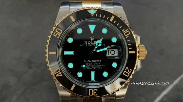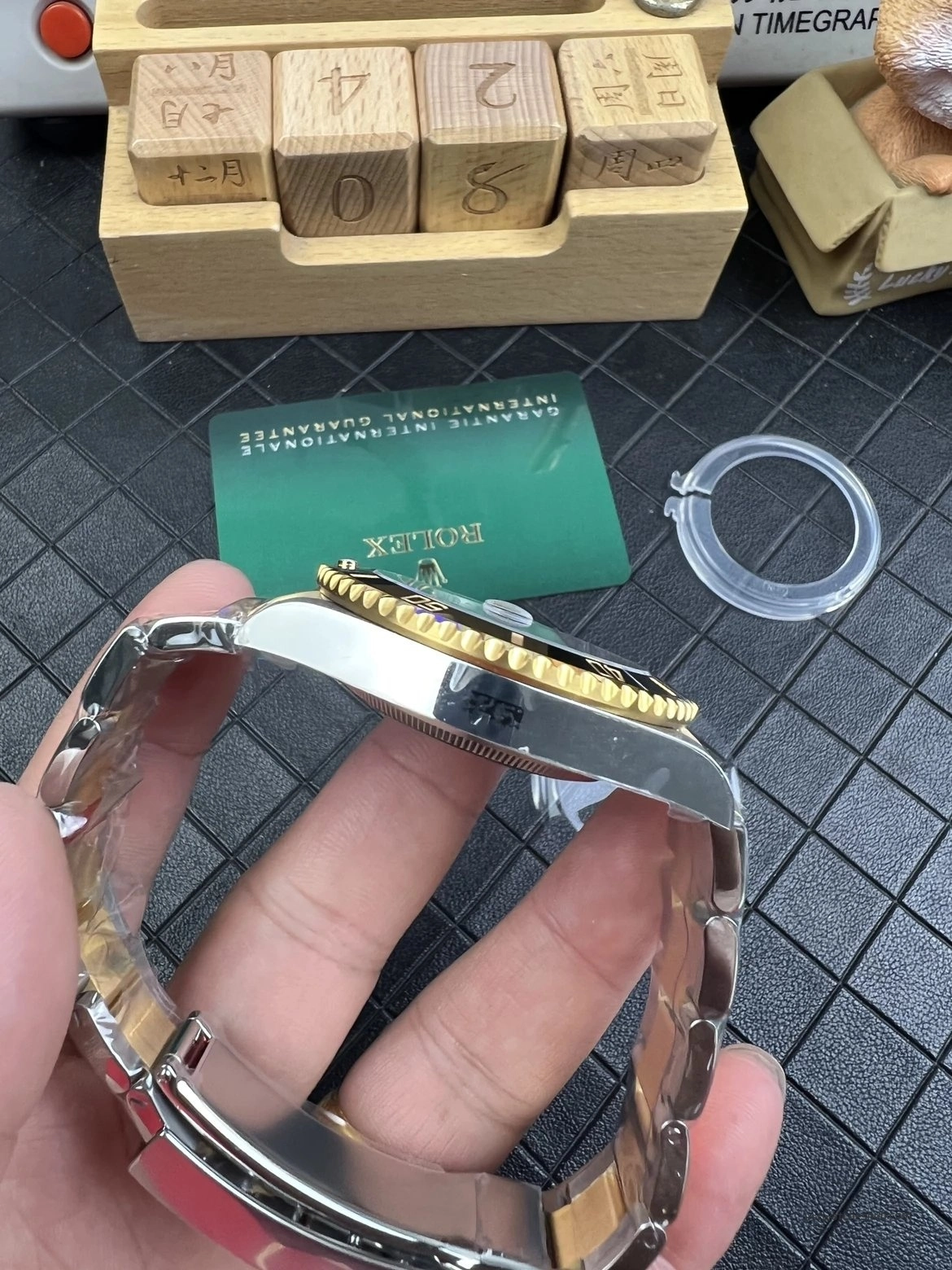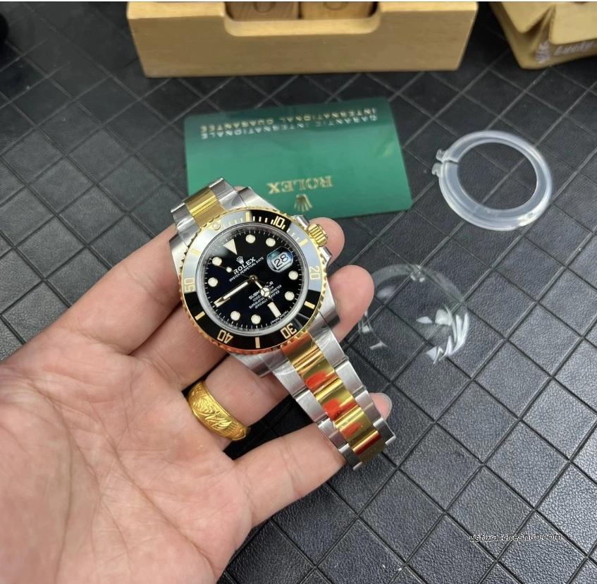 This model remains one of the most balanced two-tone Submariner replicas currently available.