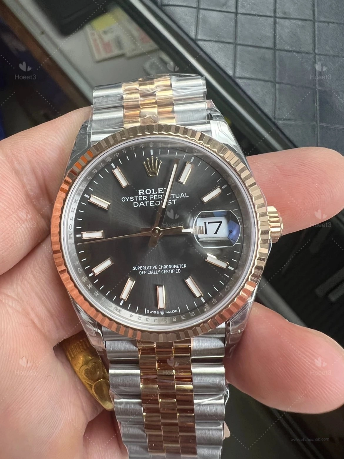 VS Factory Rolex Datejust 36 Ref 126231 Two-Tone Rose Gold Black Dial Super Clone