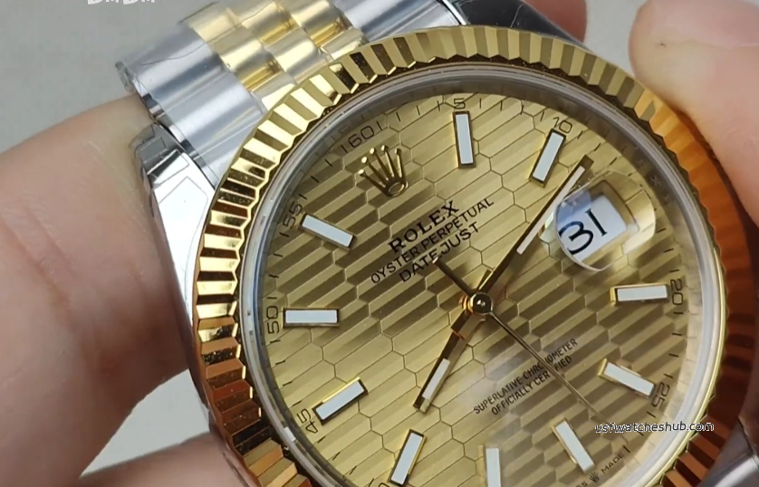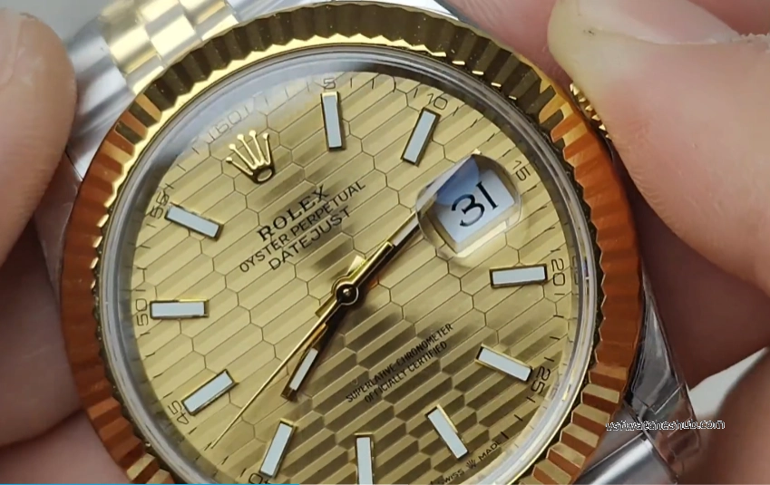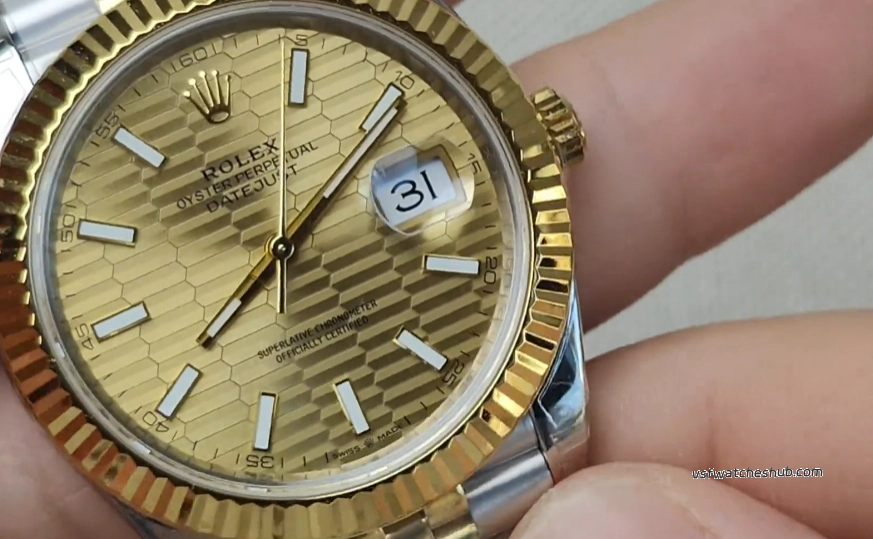 Many buyers worry that a gold-tone fluted bezel may lose brightness or look cheap in person, but that is not the case here. The bezel still has strong visual presence, and the edges are not overly harsh or rough. Instead, the finishing looks smooth and controlled, which gives the watch a more refined look on the wrist.