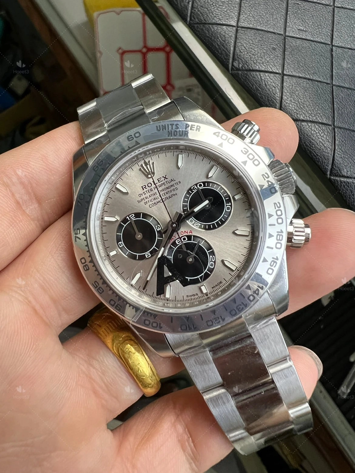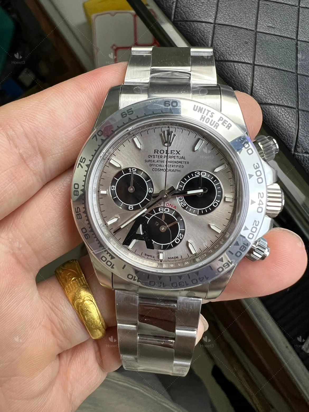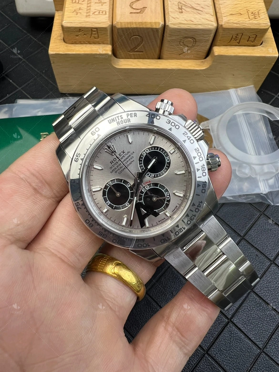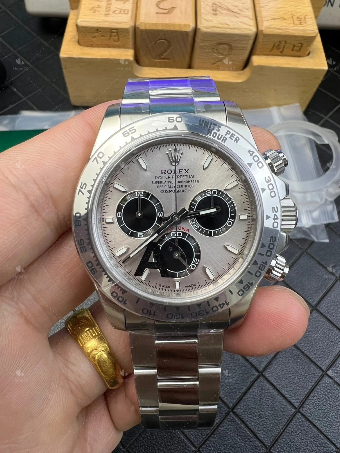 I ordered the VSF Daytona 126509 from this site about two weeks ago and honestly didn’t expect it to feel this solid in hand. The weight surprised me straight away — it really gives that white-gold feel people talk about. The grey sunburst dial looks amazing in daylight and the sub-dials are clean and well aligned.