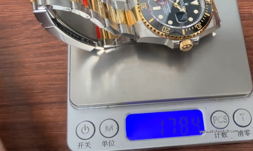 The newer weighted version comes in at around 178.5g, while the earlier non-weighted version was closer to 156g. That means the total weight has increased by roughly 20g, bringing the wearing experience much closer to what people expect from a genuine two-tone Submariner.