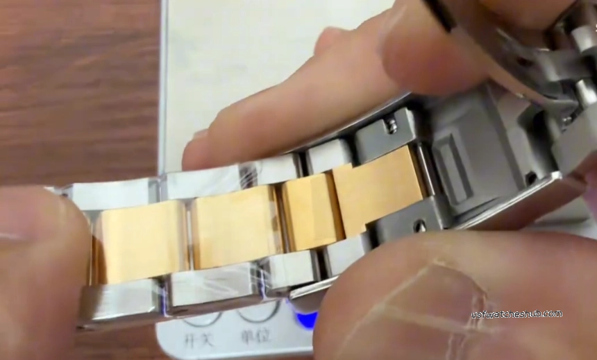 The center links remain gold-plated, so as with most plated two-tone replicas, some fading over long-term wear is still possible. That said, the visual presentation out of the box is strong, and the watch looks cohesive on the wrist.