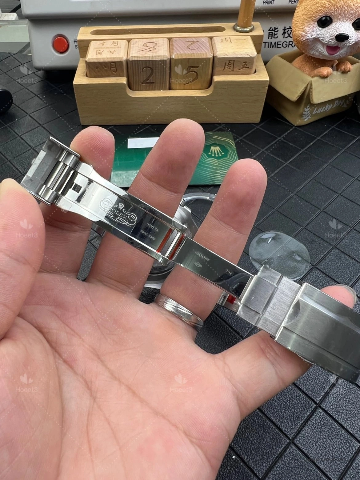 The bracelet follows the expected 904L-style steel construction, and the clasp details are also well handled. The coronet logo has good depth, the finishing is clean, and the engraving and internal details are neatly done. This matters because on a watch like this, the clasp is a part of the experience every time you wear it.
