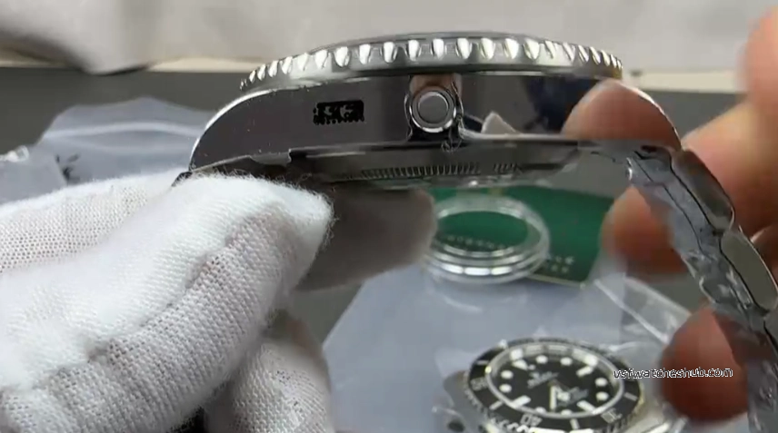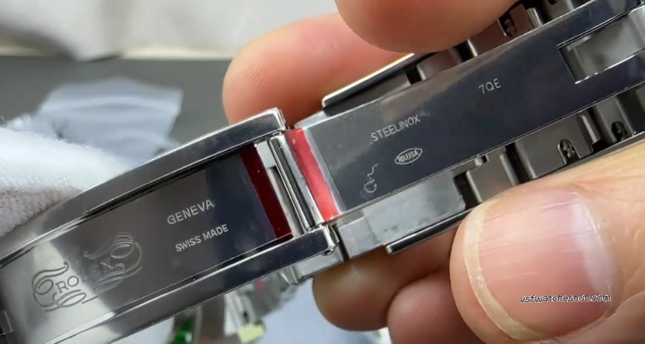 The helium escape valve on the side of the case is one of the signature visual features of the Sea-Dweller, and VS has reproduced that design element well from the outside. It gives the watch the correct profile and contributes to the model’s distinctive identity.