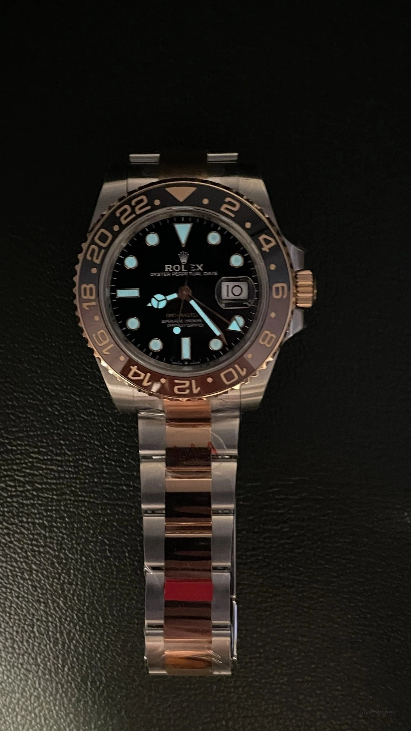 The layout is clean, the details are sharp, and the watch gives off a much more refined impression than a rushed or budget-focused build. The hands are neatly finished, the luminous fill appears even, and the date window is well aligned. The date font also looks properly proportioned, which matters more than many people expect on a GMT-Master II.