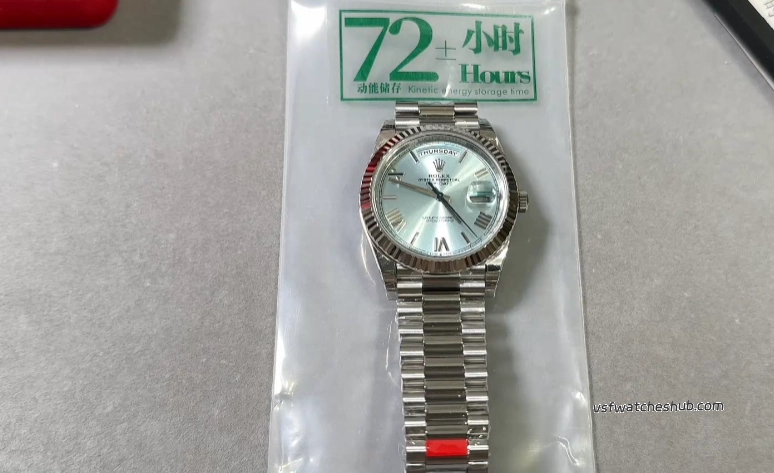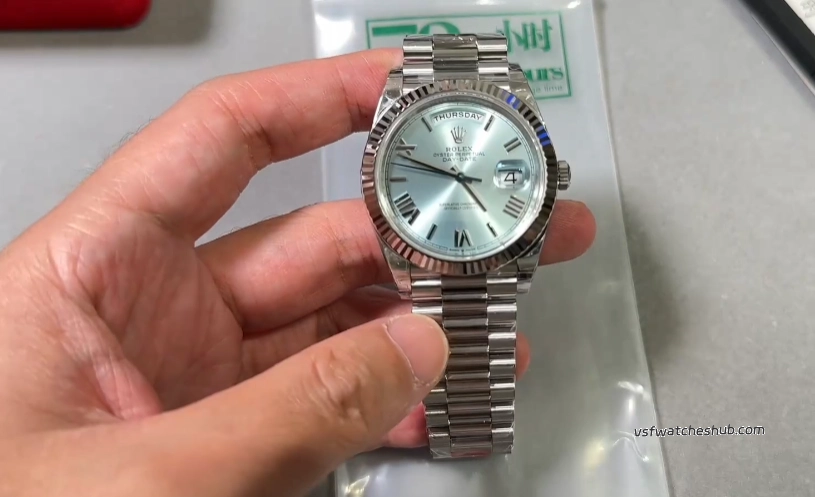 As a long-time VS Factory specialist at vsfwatcheshub, I recently completed a close inspection of the new Rolex Day-Date 40mm Ice Blue Dial ref. 228236. This model represents one of the most important releases in the current VS Day-Date lineup, especially because it is built around the latest integrated Dandong 3255 movement platform.