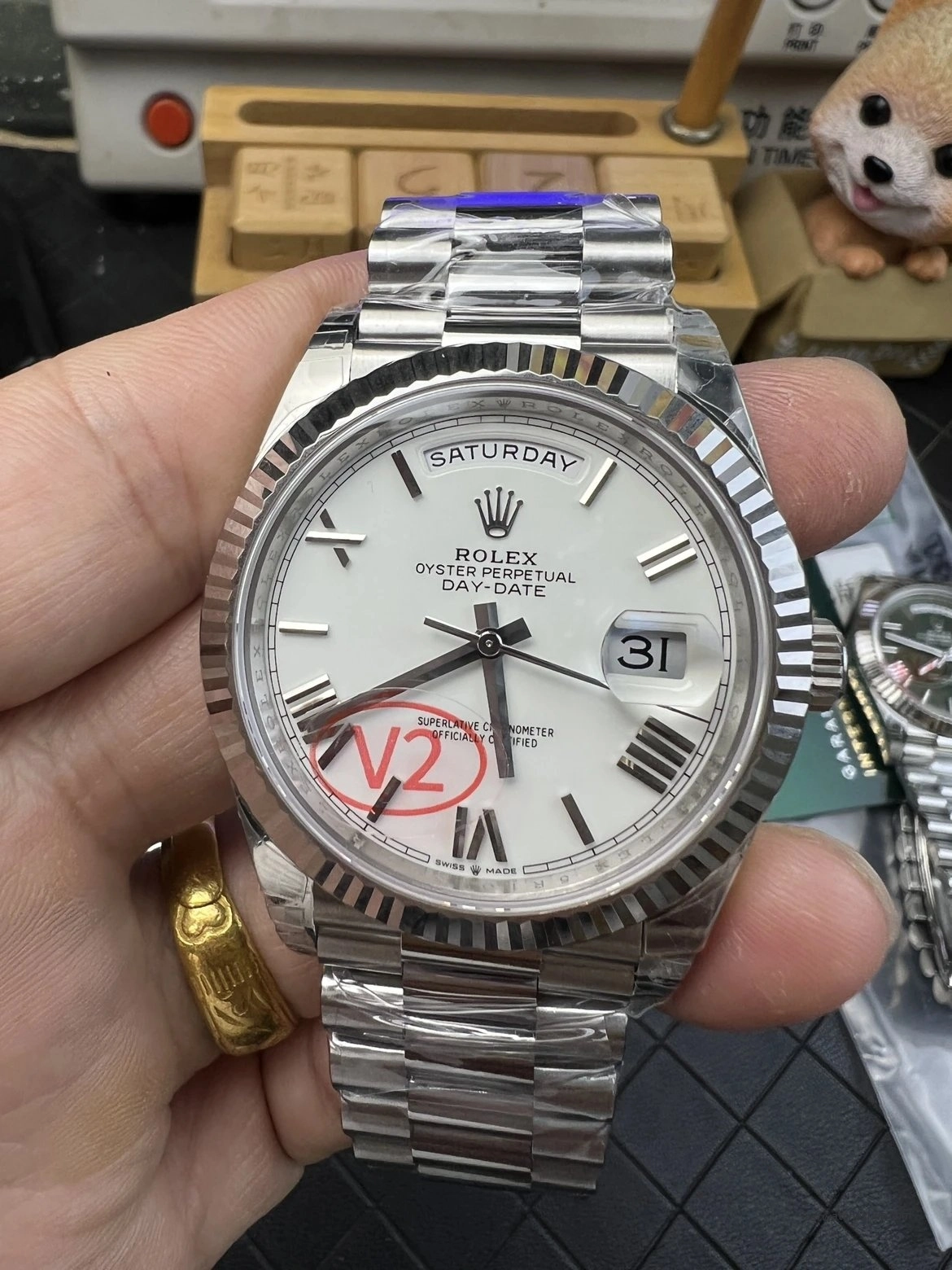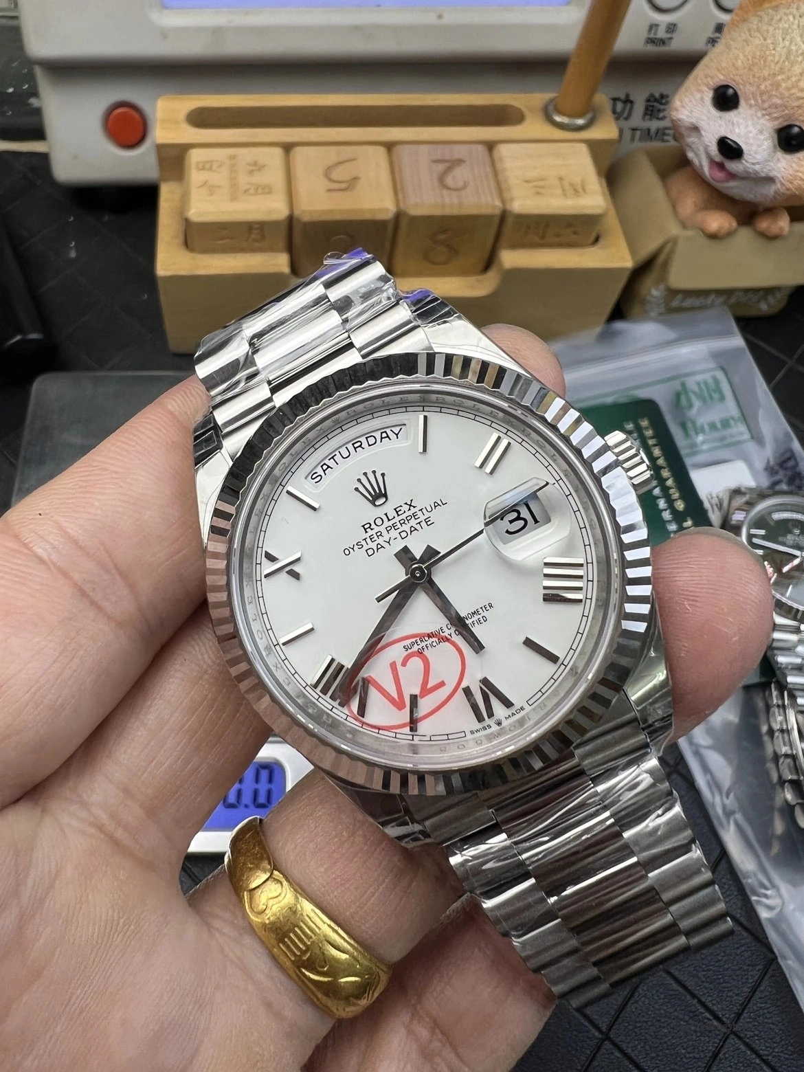 Based on our hands-on inspection, the VS Factory Day-Date 40 228239 V2 weighted version currently represents one of the most complete Day-Date replica options available.