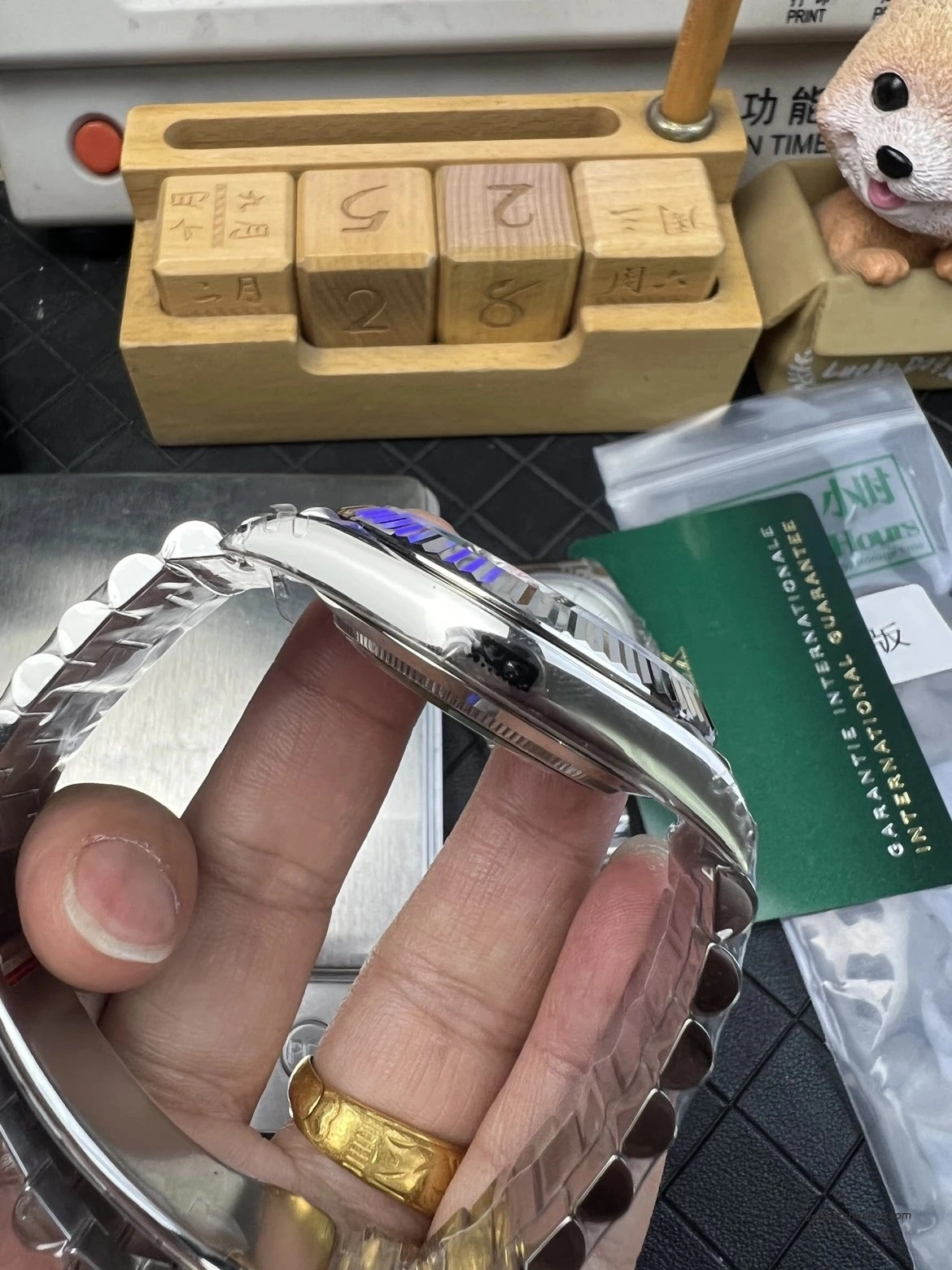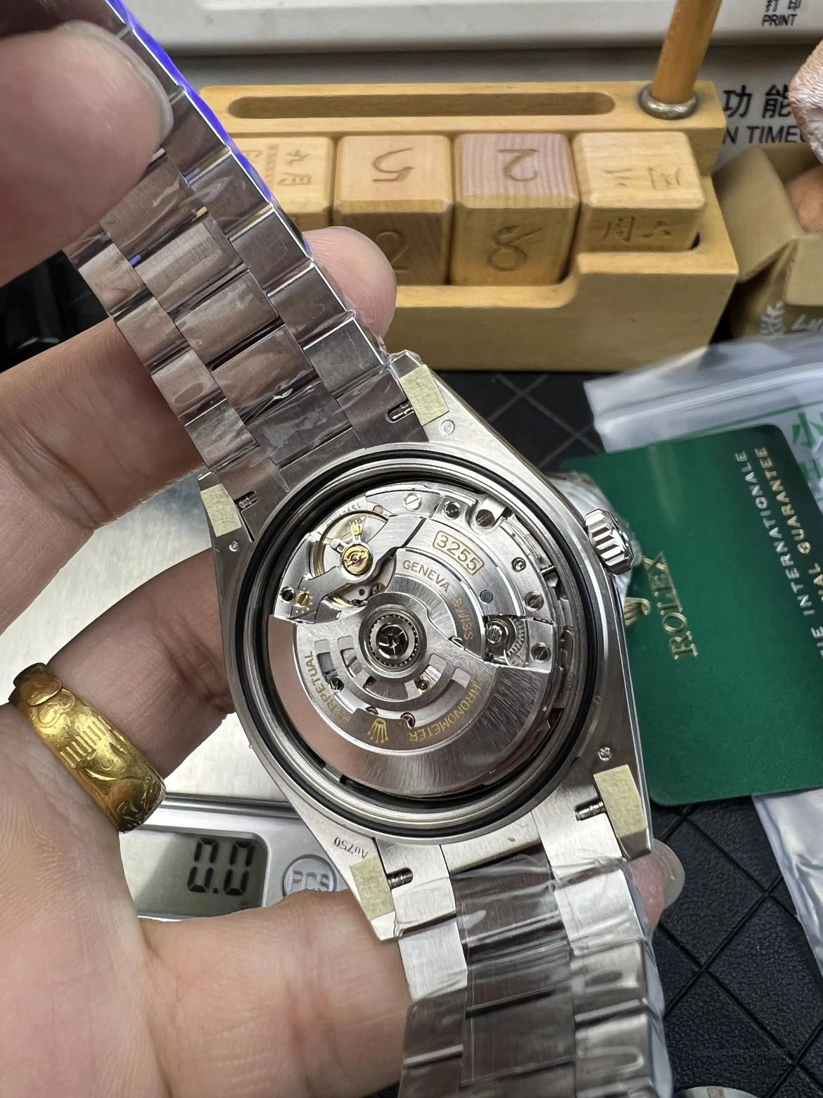 Although still slightly lighter than genuine (~20g difference), the wrist presence is already very convincing and comfortable.