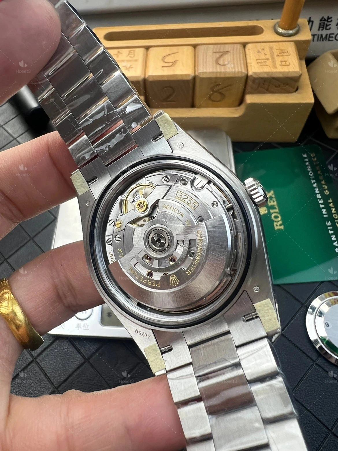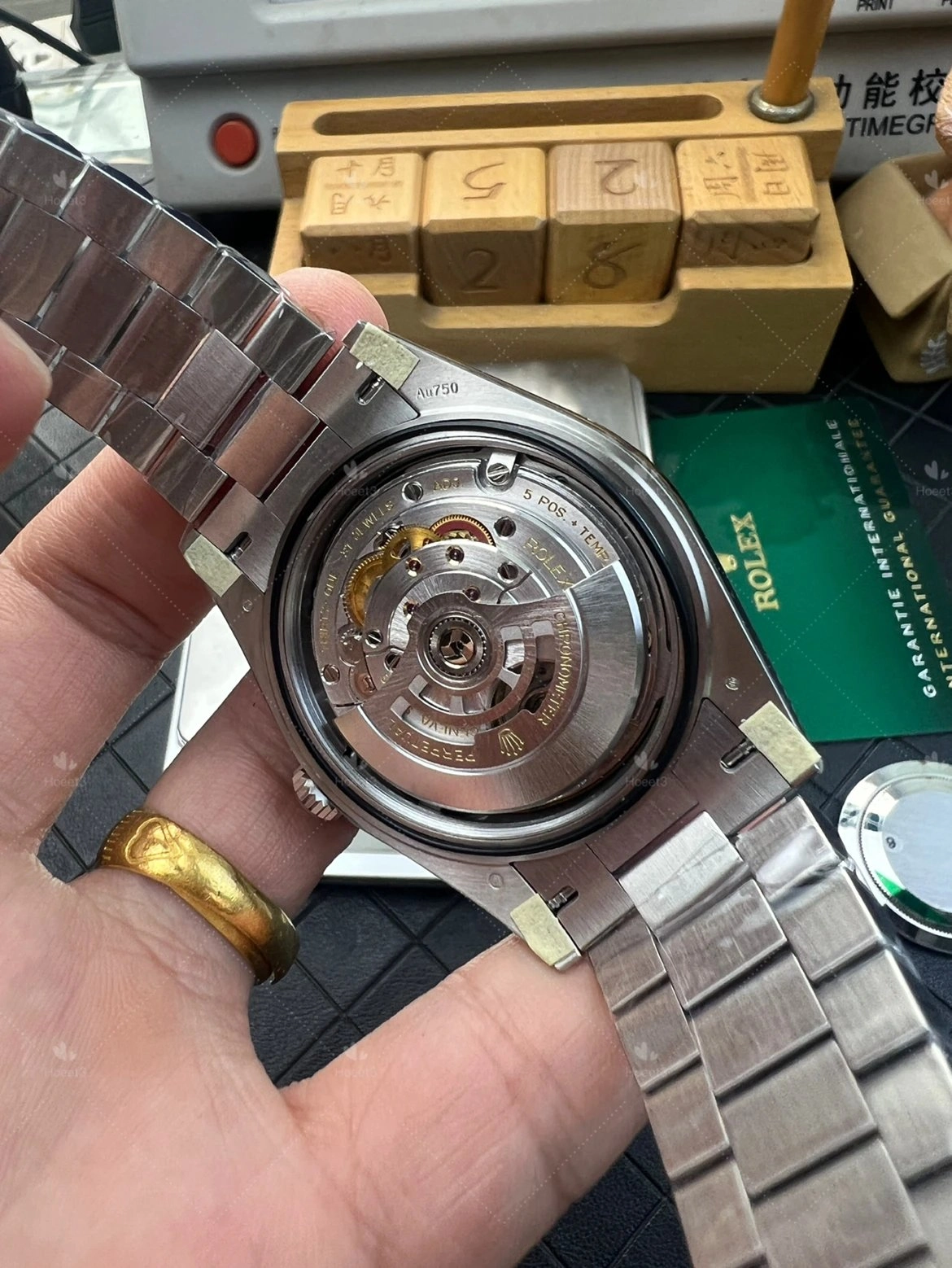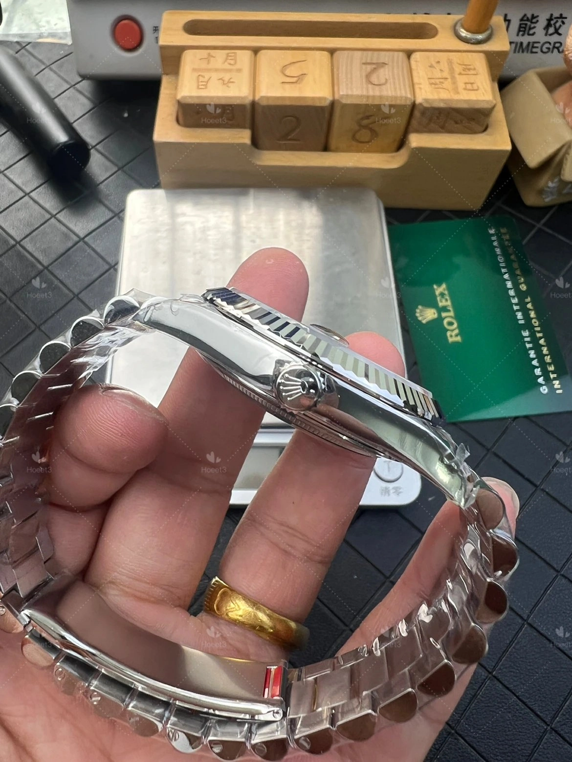 VS Factory's Day-Date 228239 blue roman dial is, detail for detail, the highest tier rep of this reference currently out. The blue sunburst dial, the fluted bezel finishing, how the day/date functions feel, and especially that exclusive Dandong 3255 — it all comes together really well. Weight is the only area where there's still a gap versus gen.